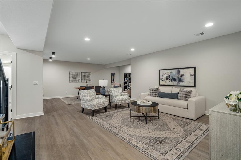 Discover the "Sicilian II" from Pauli Homes — a contemporary take on the ever-popular "Riviera" floor plan. It preserves the style and functionality you love while fitting into a more compact, intelligently designed footprint. The bright, open main level spans 1,826 square feet and is built for effortless daily living and effortless entertaining. It features a generous great room that flows naturally into a stylish kitchen anchored by a large island — ideal for meal prep, casual dining, or hosting friends. Abundant windows surround the dining area, bathing the space in natural light. The luxurious primary suite offers a true retreat, complete with a spa-like bathroom featuring a freestanding tub, dual quartz vanities, and a spacious walk-in shower. Laundry is conveniently accessible from both the primary closet and the main hallway. Downstairs, the finished lower level delivers an impressive 1,294 additional square feet of versatile living space, including a recreation room, a walk-up wet bar, a flexible bonus room, two bedrooms, a full bathroom, and abundant storage options. Come see this gorgeous home in Olathe's newest maintenance provided community! Maintenance includes: lawn, trimming, mulch, sprinkler system & snow removal.