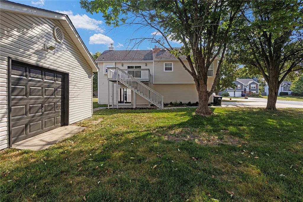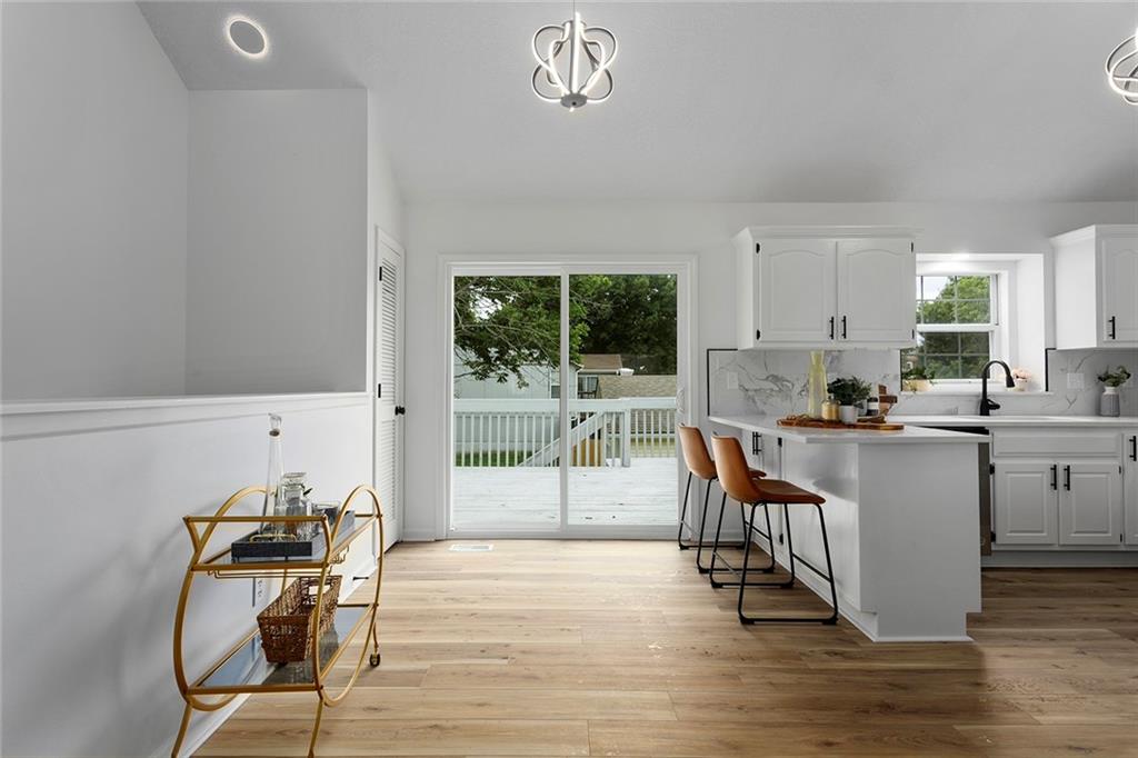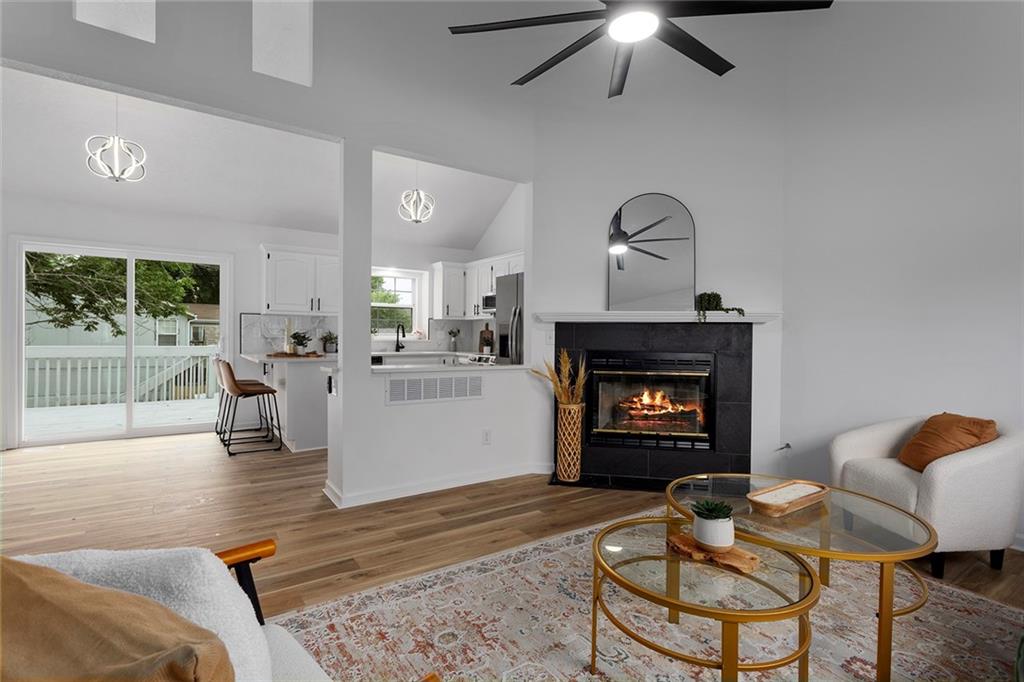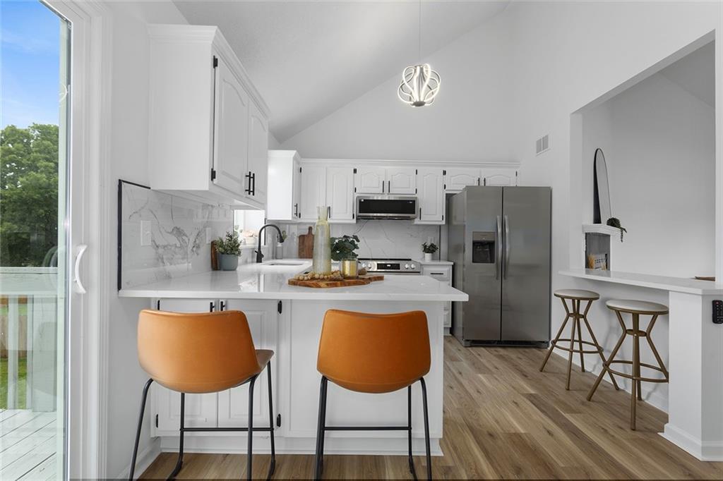 Step into this beautifully renovated 3-bedroom, 3-bathroom home where modern updates meet functional charm. The main living room features soaring vaulted ceilings and an abundance of natural light, creating an airy and inviting atmosphere. The updated kitchen is a dream, complete with new appliances, sleek quartz countertops, two breakfast bar areas perfect for barstools, and a convenient reach-in pantry. The spacious primary suite is a true retreat with its own vaulted ceiling and cozy fireplace—ideal for unwinding at the end of the day. One of the additional bedrooms is a kid’s dream, complete with a ladder leading to a bonus loft area—ideal for a playroom, reading nook, or hideaway. The finished lower level offers a second family room and a full bathroom, making it a perfect space for guests, a 4th bedroom, or a private retreat. Outdoor living is just as impressive, with a deck off the main level and a covered patio accessible from the walkout basement—great for entertaining or relaxing in any season. The outbuilding includes a full-size garage door and offers endless potential: use it as a third garage bay, a workshop, man cave, or she shed. Don’t miss your chance to own this unique, move-in-ready home with flexible space.