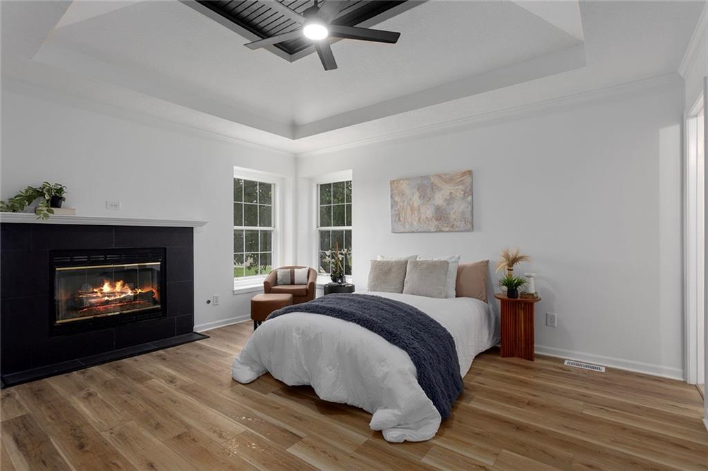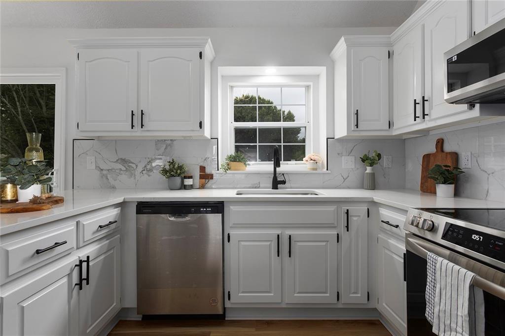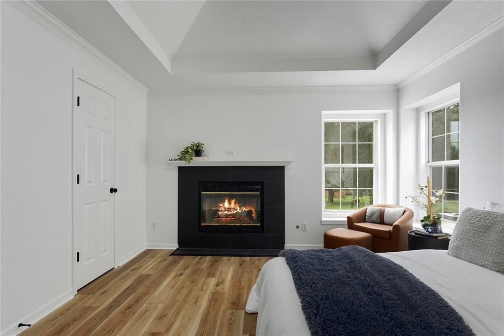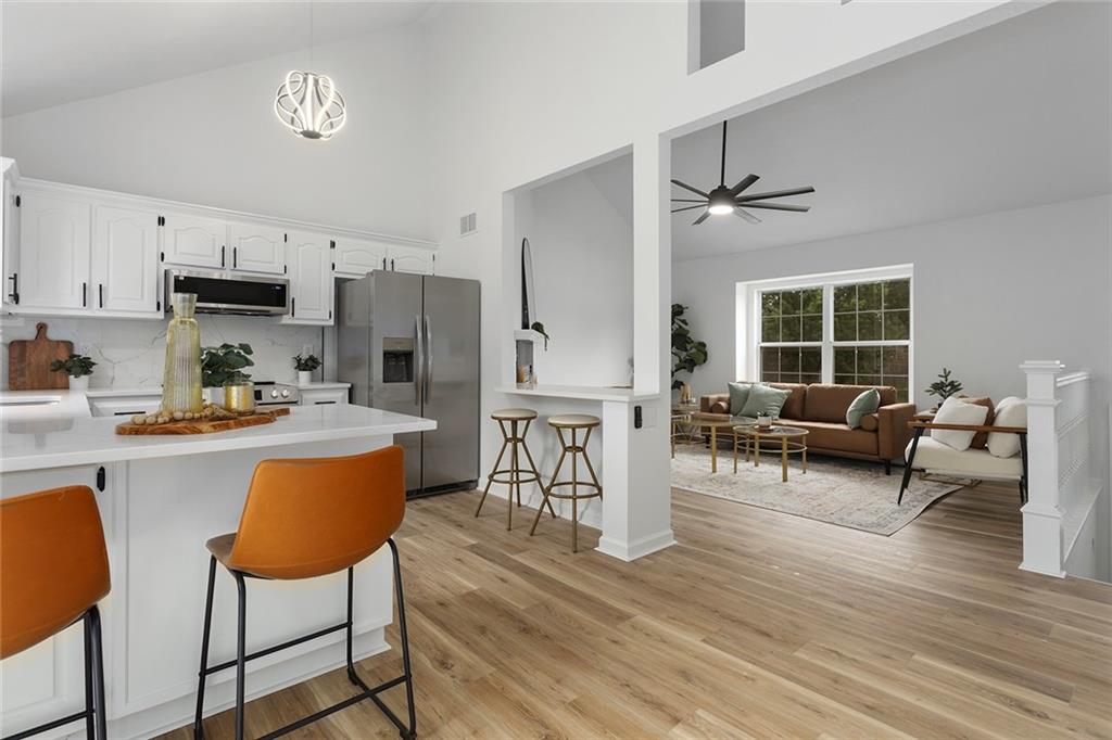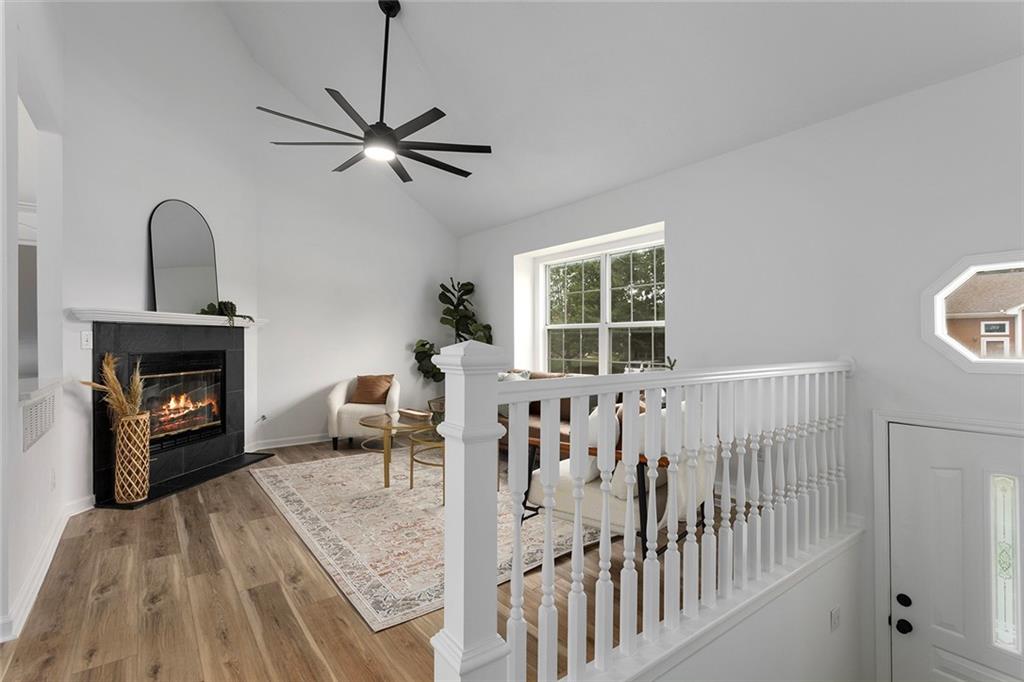 Step into this beautifully renovated 3-bedroom, 3-bathroom home where modern updates meet functional charm. The main living room features soaring vaulted ceilings and an abundance of natural light, creating an airy and inviting atmosphere. The updated kitchen is a dream, complete with new appliances, sleek quartz countertops, two breakfast bar areas perfect for barstools, and a convenient reach-in pantry. The spacious primary suite is a true retreat with its own vaulted ceiling and cozy fireplace—ideal for unwinding at the end of the day. One of the additional bedrooms is a kid’s dream, complete with a ladder leading to a bonus loft area—ideal for a playroom, reading nook, or hideaway. The finished lower level offers a second family room and a full bathroom, making it a perfect space for guests, a 4th bedroom, or a private retreat. Outdoor living is just as impressive, with a deck off the main level and a covered patio accessible from the walkout basement—great for entertaining or relaxing in any season. The outbuilding includes a full-size garage door and offers endless potential: use it as a third garage bay, a workshop, man cave, or she shed. Don’t miss your chance to own this unique, move-in-ready home with flexible space.