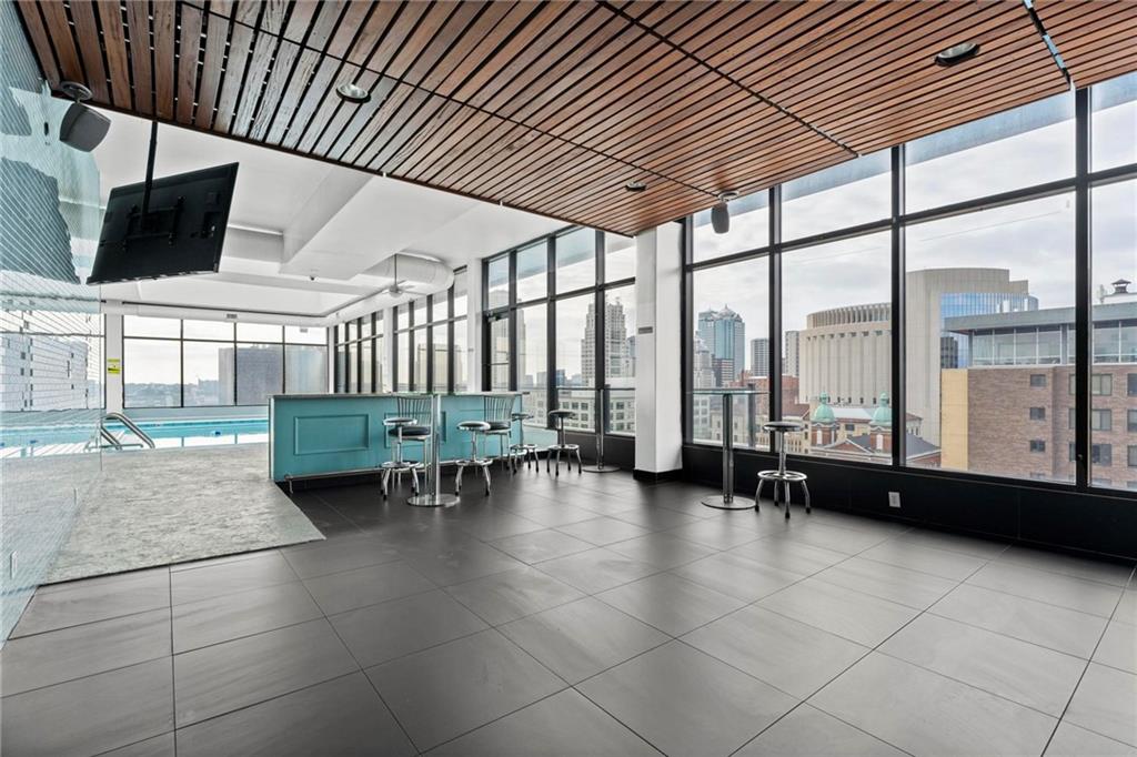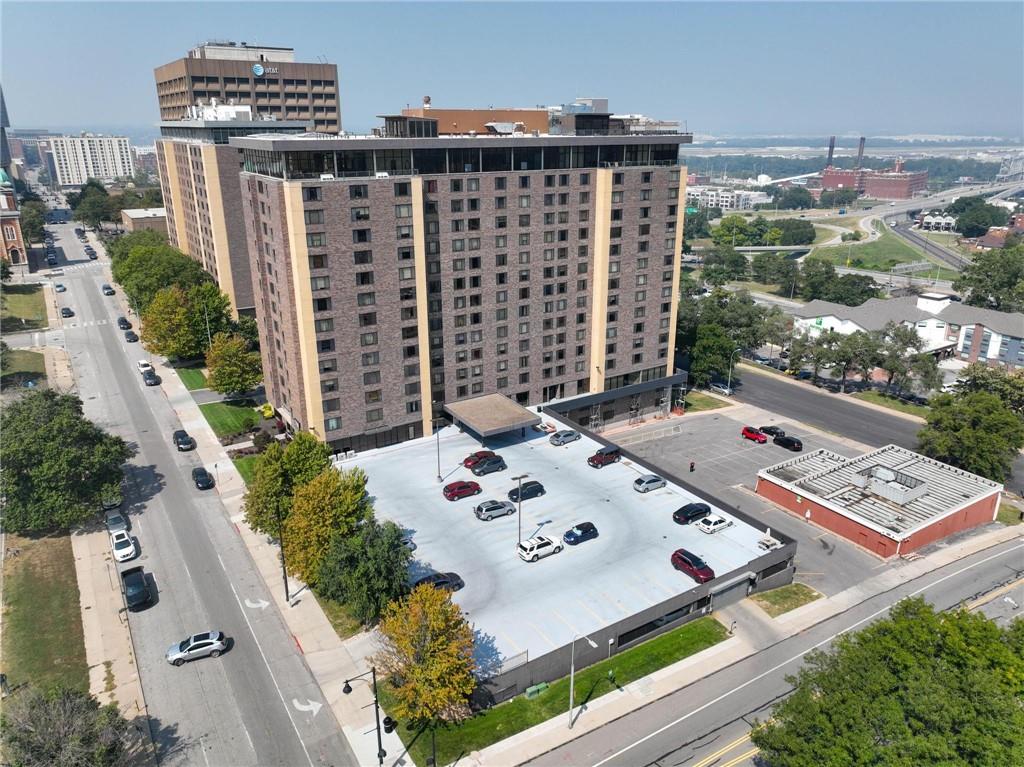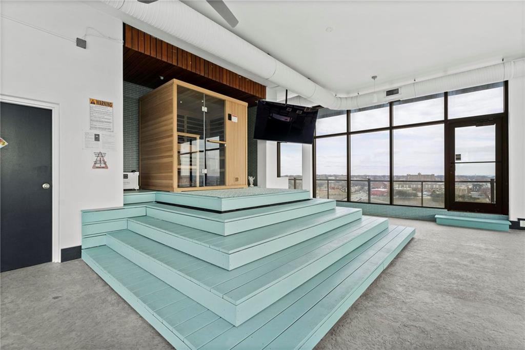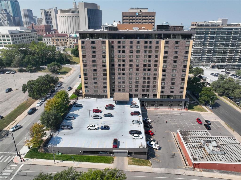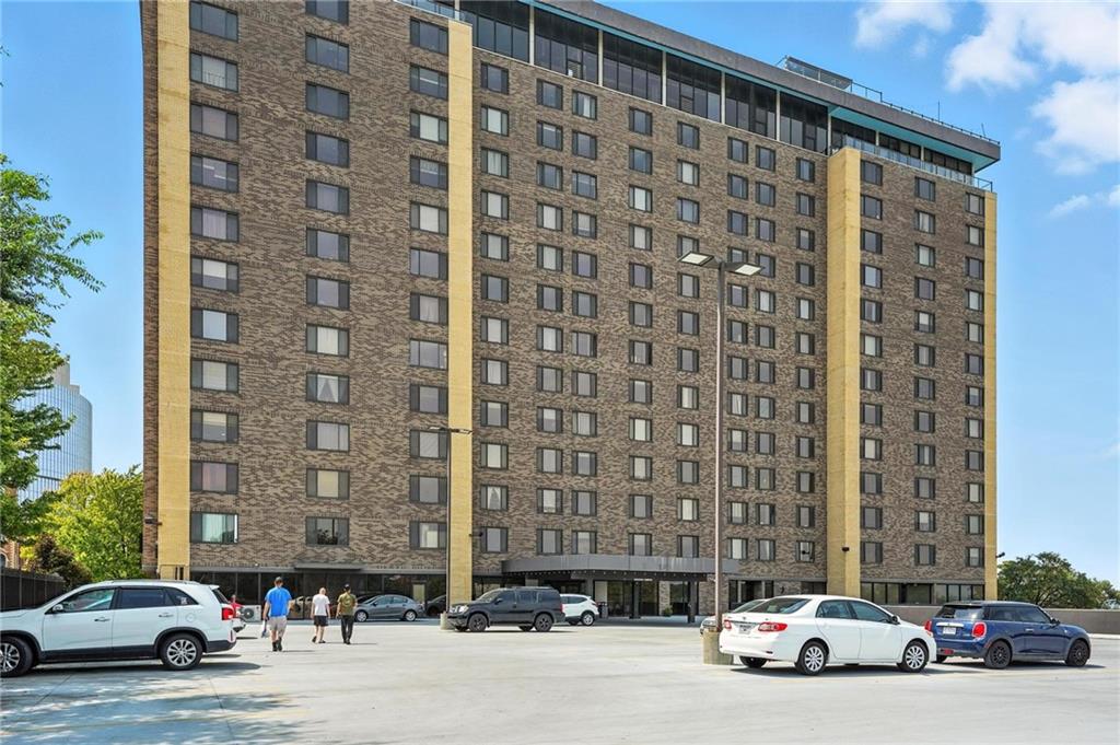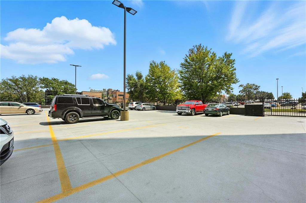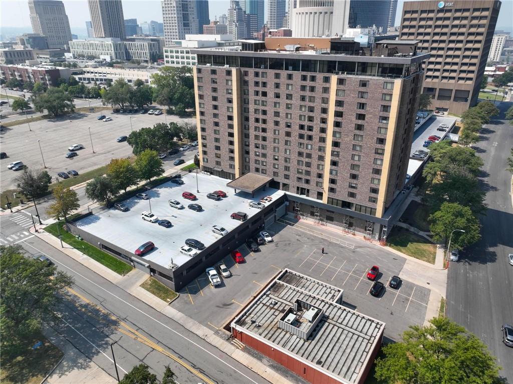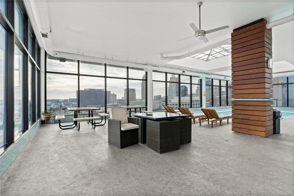 Newly rennovated space at the Manhattan with brand new paint job and flooring. Washer and dryer in hall closet. Gas range with stainless appliances. View that looks west. LARGE space with a studio feel but more of a one bedroom layout. Easily could fit two humans and or pets. Manhattan offers all the luxouries of high end living with 24-hour concierge, full fitness center, (high end), theater room, additional private storage, party room, on site HOA manager, security/concierge at front door, moving elevator and loading dock, roof top pool with new sauna, observation decks for outdoor space, pet relief station, and a SECURED parking space. Utilities are also included in the Manhattan. Tax abated until 2029. Google Fiber building. Easy highway access with convenient coffee shop on 1st floor. Walk to River Market and Power and Light. Previous inspection listed in supplements.