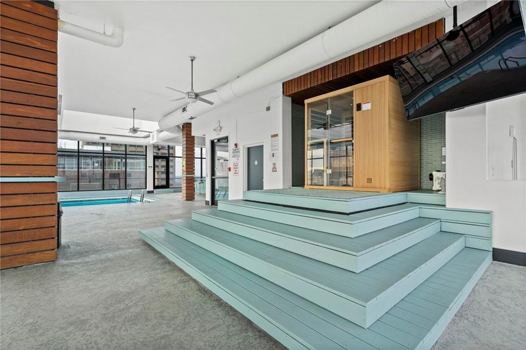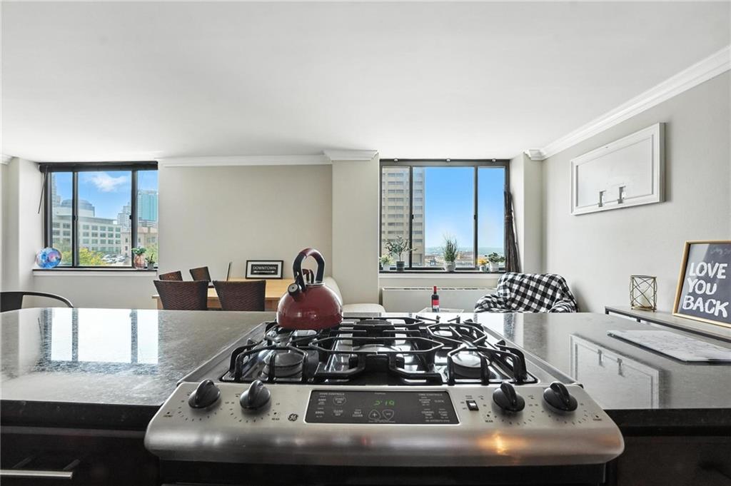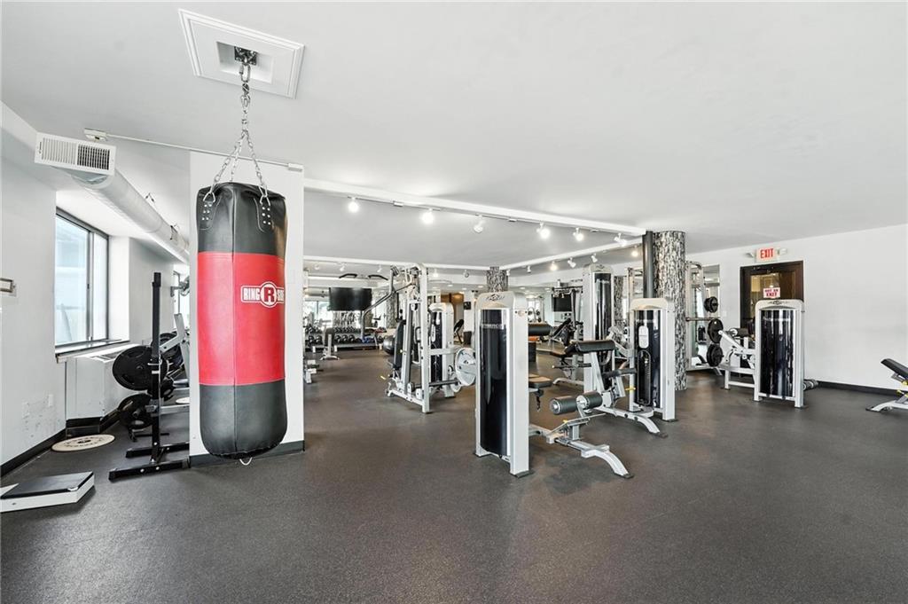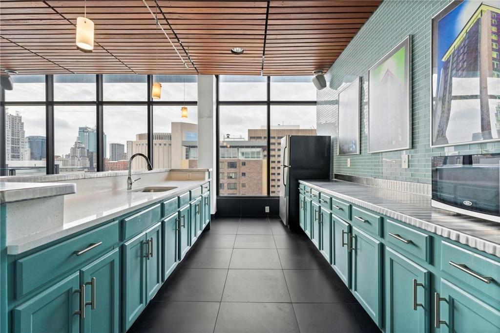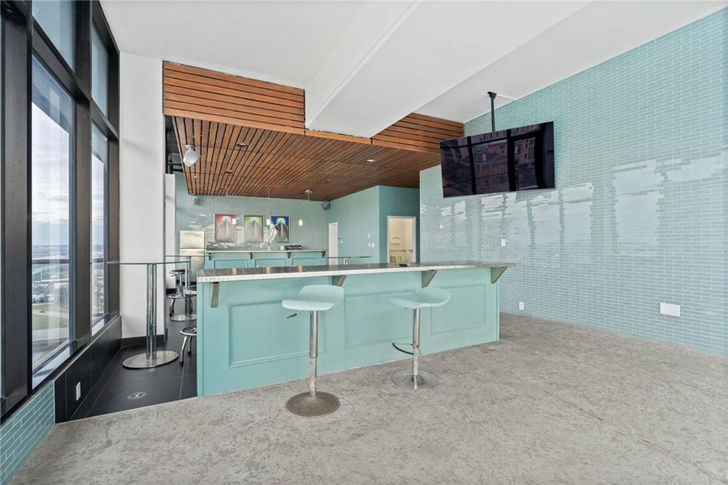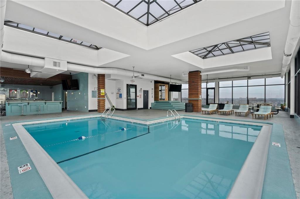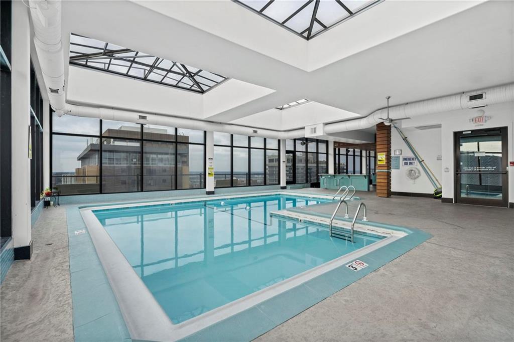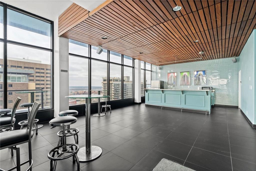 Newly rennovated space at the Manhattan with brand new paint job and flooring. Washer and dryer in hall closet. Gas range with stainless appliances. View that looks west. LARGE space with a studio feel but more of a one bedroom layout. Easily could fit two humans and or pets. Manhattan offers all the luxouries of high end living with 24-hour concierge, full fitness center, (high end), theater room, additional private storage, party room, on site HOA manager, security/concierge at front door, moving elevator and loading dock, roof top pool with new sauna, observation decks for outdoor space, pet relief station, and a SECURED parking space. Utilities are also included in the Manhattan. Tax abated until 2029. Google Fiber building. Easy highway access with convenient coffee shop on 1st floor. Walk to River Market and Power and Light. Previous inspection listed in supplements.