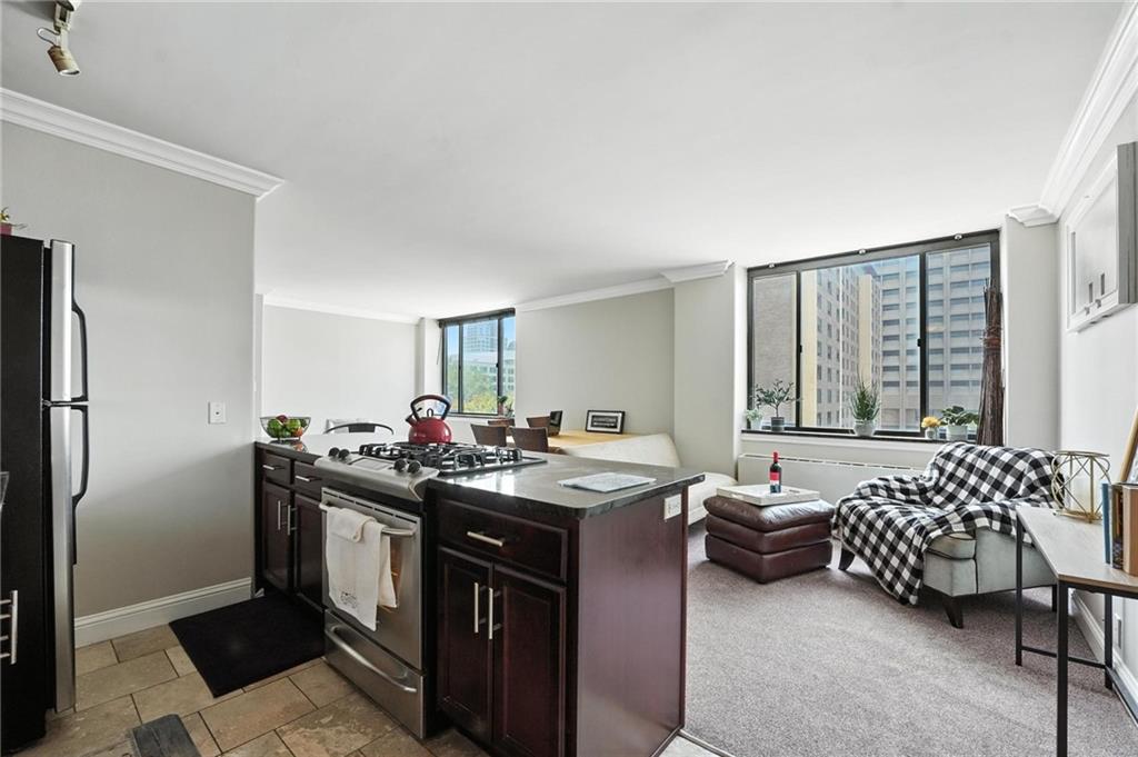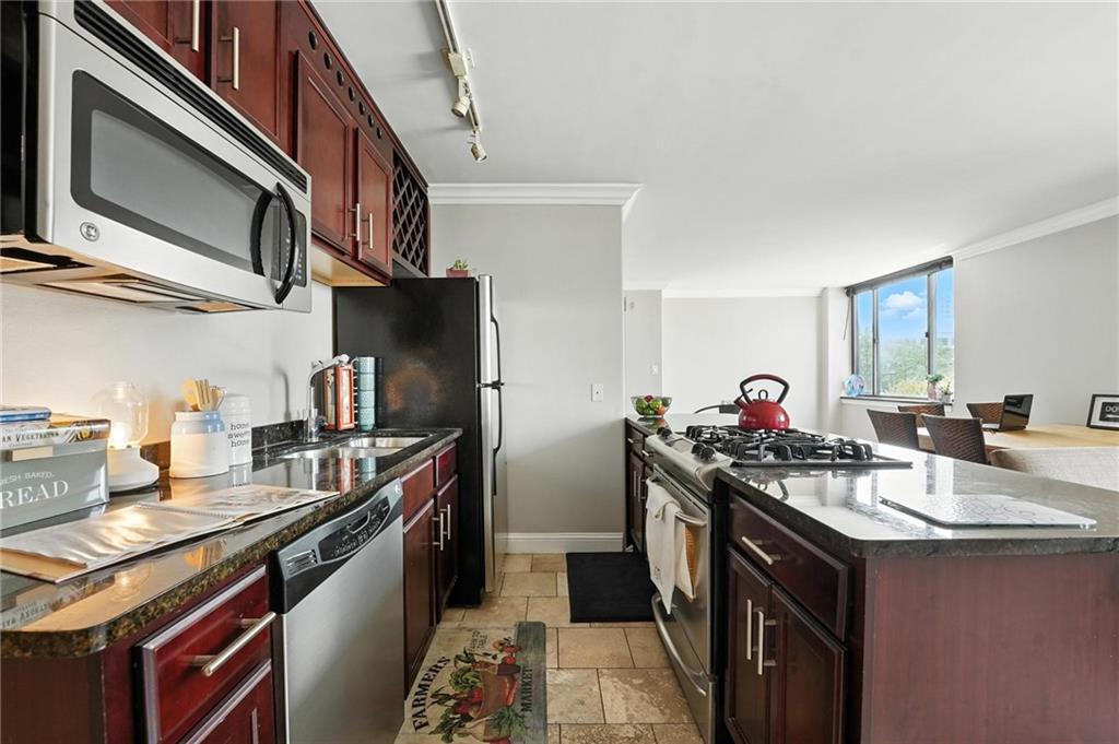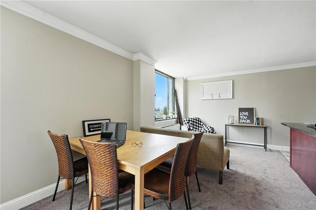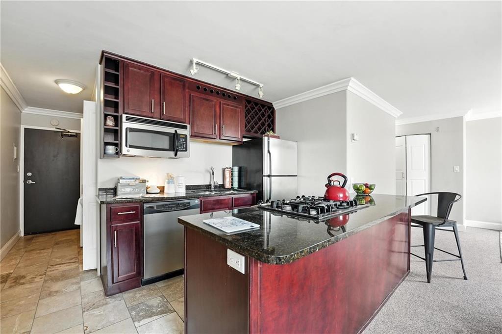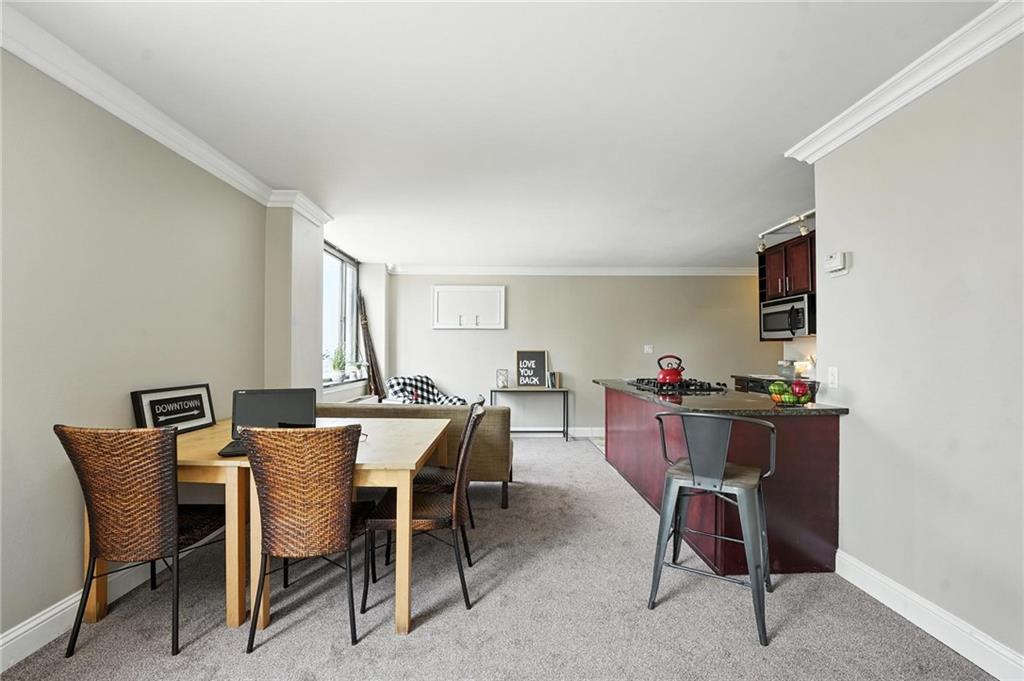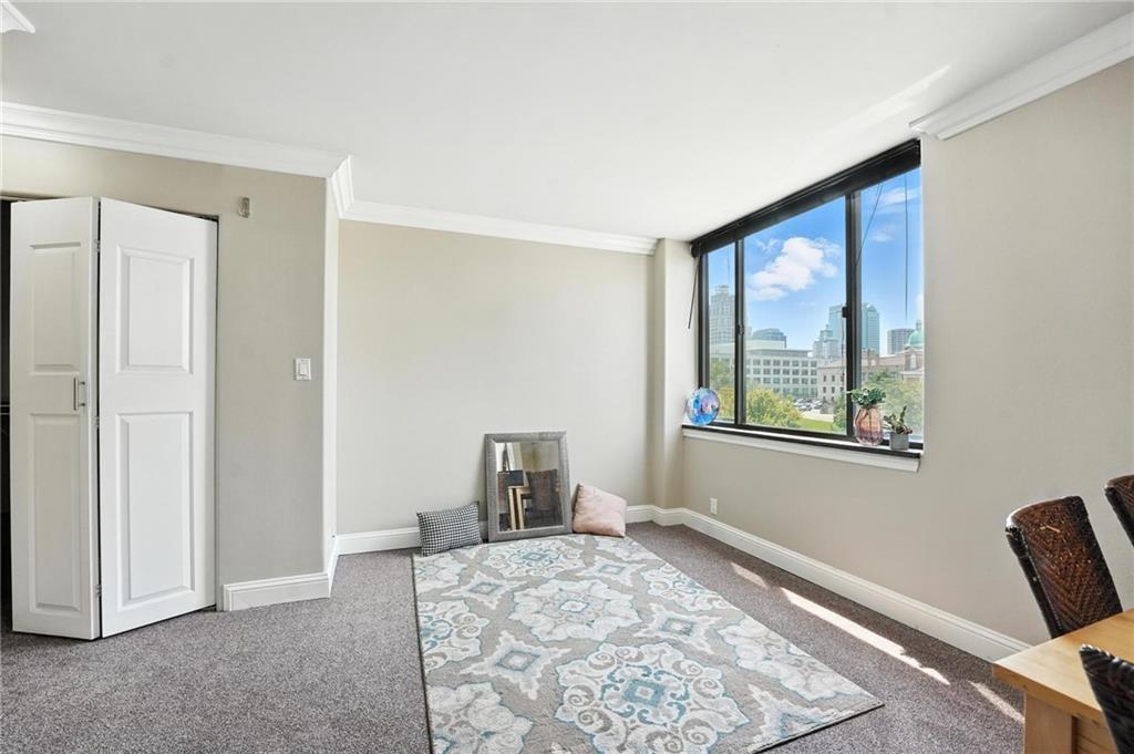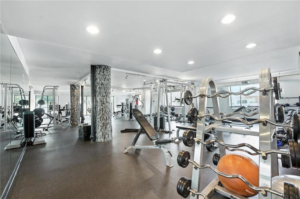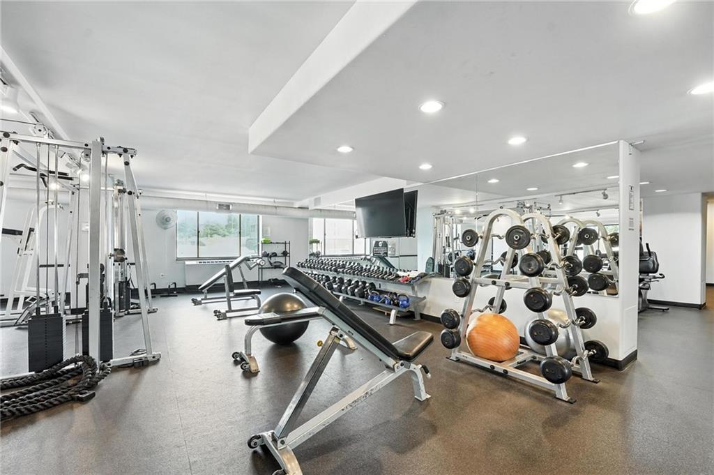 Newly rennovated space at the Manhattan with brand new paint job and flooring. Washer and dryer in hall closet. Gas range with stainless appliances. View that looks west. LARGE space with a studio feel but more of a one bedroom layout. Easily could fit two humans and or pets. Manhattan offers all the luxouries of high end living with 24-hour concierge, full fitness center, (high end), theater room, additional private storage, party room, on site HOA manager, security/concierge at front door, moving elevator and loading dock, roof top pool with new sauna, observation decks for outdoor space, pet relief station, and a SECURED parking space. Utilities are also included in the Manhattan. Tax abated until 2029. Google Fiber building. Easy highway access with convenient coffee shop on 1st floor. Walk to River Market and Power and Light. Previous inspection listed in supplements.