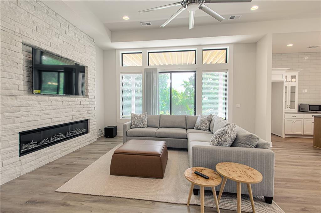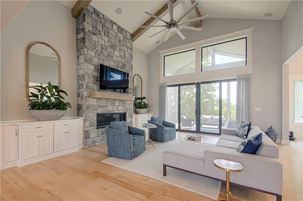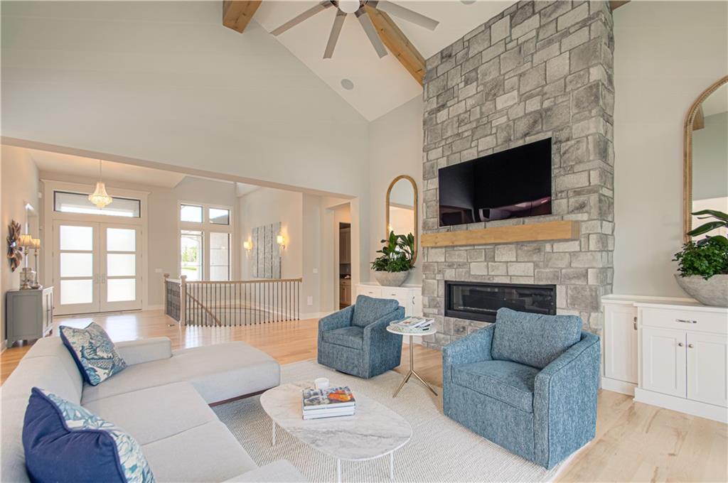 This stunning, like-new residence, built in 2021 by Dusty Rhodes, offers a perfect blend of modern design and comfortable living. Experience the exceptional natural light that fills every corner of this home, thanks to strategically placed, expansive windows that invite sunshine indoors throughout the day. The main floor boasts an inviting open layout, ideal for both everyday living and entertaining. The spacious gourmet kitchen, with high-end appliances and finishes, flows seamlessly into comfortable living areas. Descend to the versatile walk-out basement down a picture perfect curved staircase, which offers a second family room with stone fireplace, two additional bedrooms with their own private en suites and sliding door that provides direct access to the outdoors. Outside, you'll appreciate the convenience of the three-car garage, providing ample space for vehicles and storage. The property includes a fabulous screened in porch to enjoy the cool breeze, abundant sunshine and green space . This home combines the sought-after features of a modern build with the functionality and desirability of extra space and outdoor access. Don't miss the opportunity to make this bright and spacious home yours! Floor plans are online