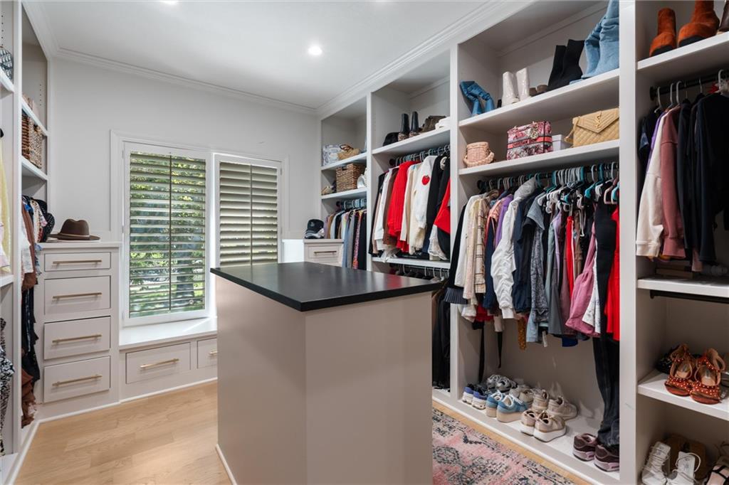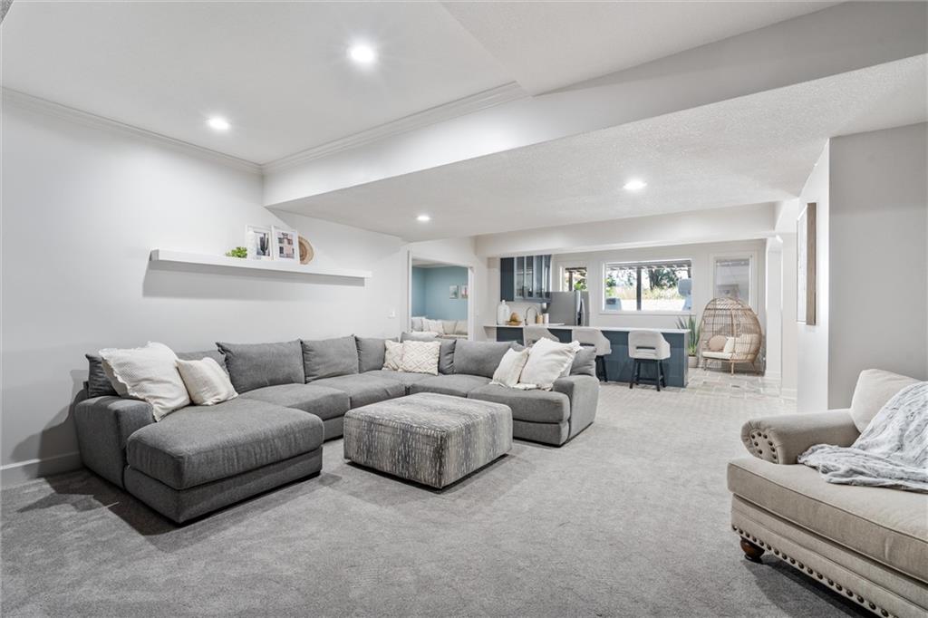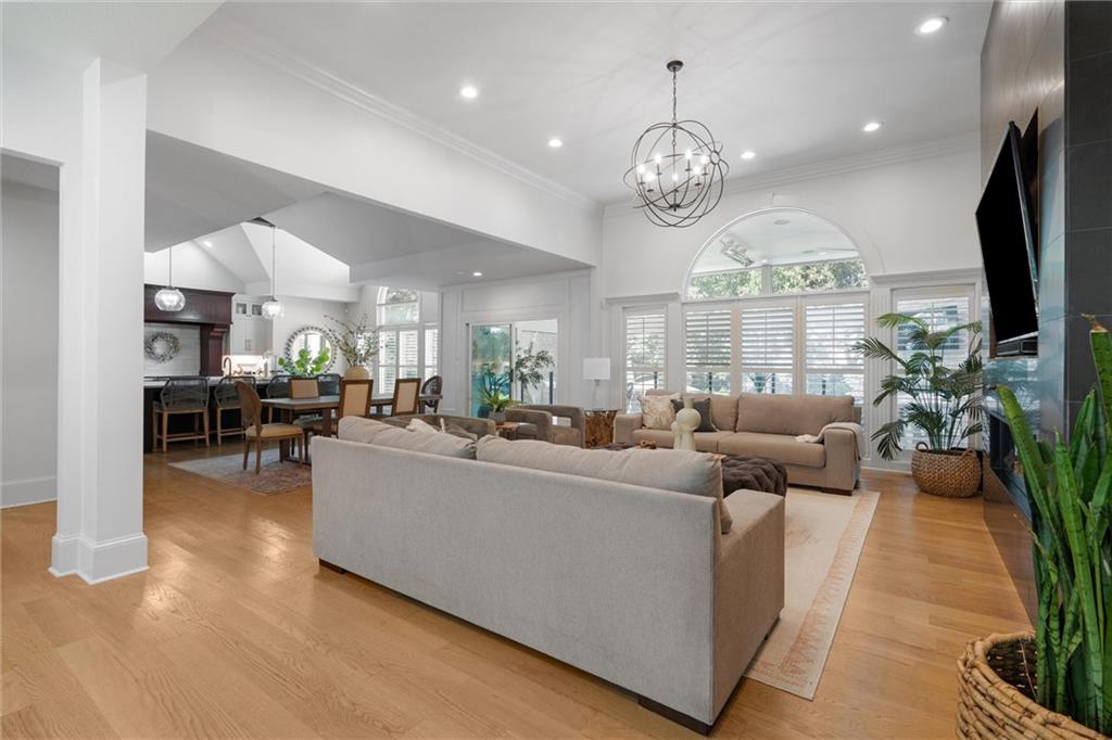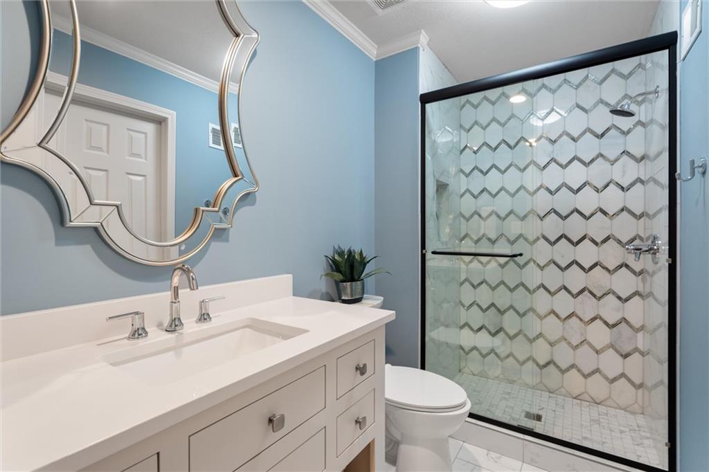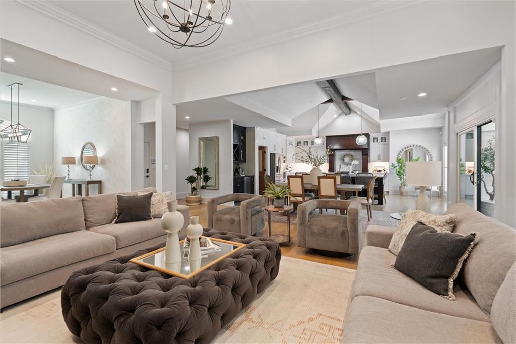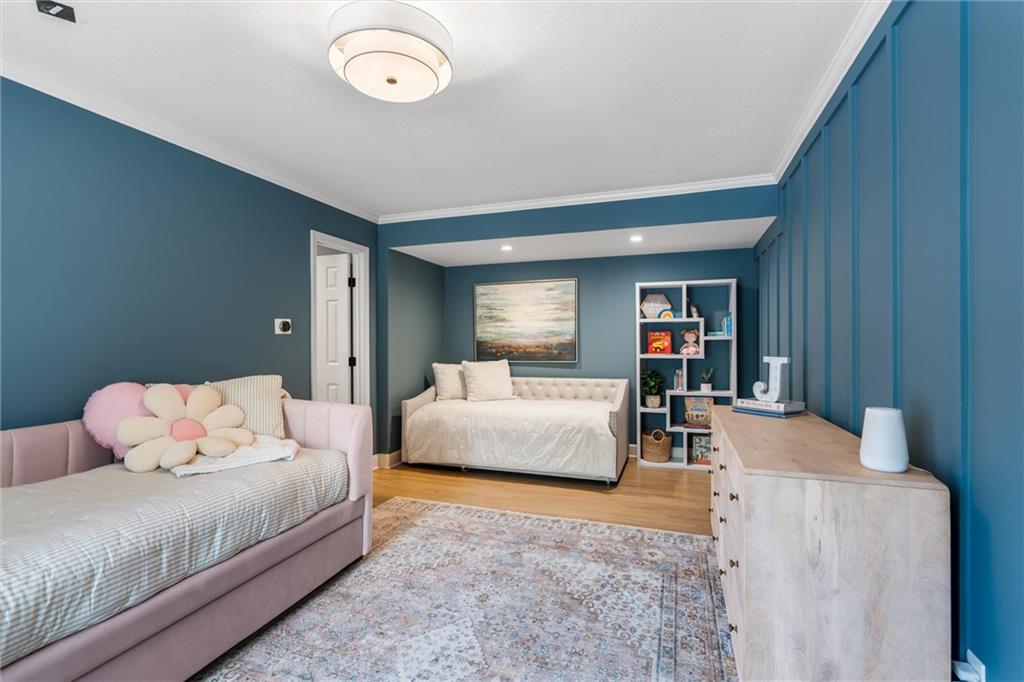 Welcome to this exceptional completely renovated 1.5-story estate nestled on a private double lot with 1.25-acres in the coveted Whitehorse neighborhood. Meticulously renovated with no detail spared, this 4-bedroom, 4.5-bath home blends elegance with modern functionality and a stunning salt water, heated gunite pool. From the entry you’re greeted by an expansive open floor plan with hardwood floors and designer finishes throughout. The main level features a stunning gourmet kitchen with massive island, custom cabinets, walk-in pantry with built-ins, and an impressive wet bar—ideal for both everyday living and entertaining. The living room, flows into the screened-in back patio, complete with a fireplace and ceiling heaters for year-round enjoyment. This serene space overlooks the gorgeous pool with tranquil waterfall features, remote cover, and a shallow lounging area—perfect for soaking up the sun or letting kids splash and play. The surrounding landscaping adds to the private, lush atmosphere, making the entire backyard feel like a five-star escape. The main-level primary suite is a retreat of its own, offering a soaking tub, huge custom walk-in closet with built-ins, and laundry area for convenience. Office with glass French doors is tucked away off the entry for a functional yet quiet space to work from. Upstairs, you’ll find two spacious bedrooms, each with en suite bathrooms and ample closet space. The walk-out lower level is equally impressive—featuring a second full kitchen, expansive living area, fourth en suite bedroom, and a versatile bonus room perfect for a theater or playroom. A massive fitness room with floor-to-ceiling mirrors and custom built-in cabinets completes the space, making it a wellness lover’s dream, and just steps away from the walkout leading to your backyard oasis. Discover unmatched comfort, design, and privacy conveniently located minutes from restaurants, shoppings, Blue Valley Schools, and everything South Leawood has to offer!