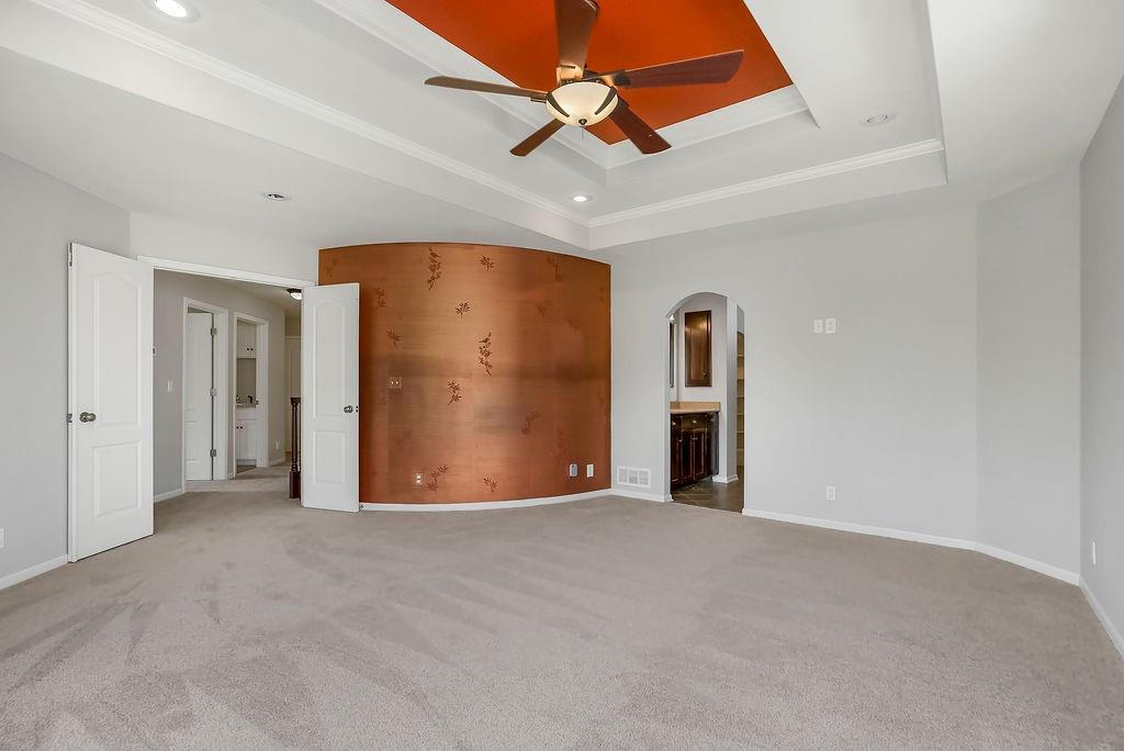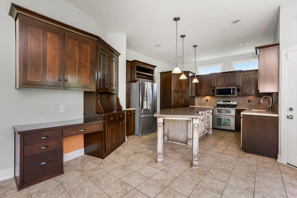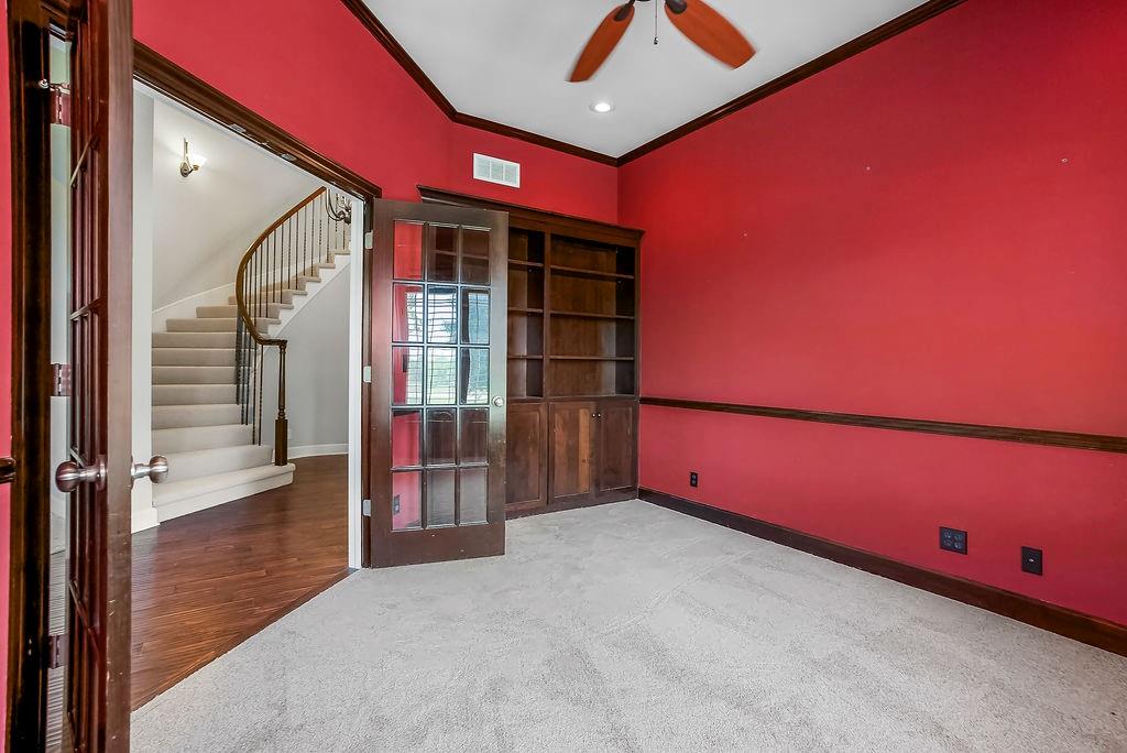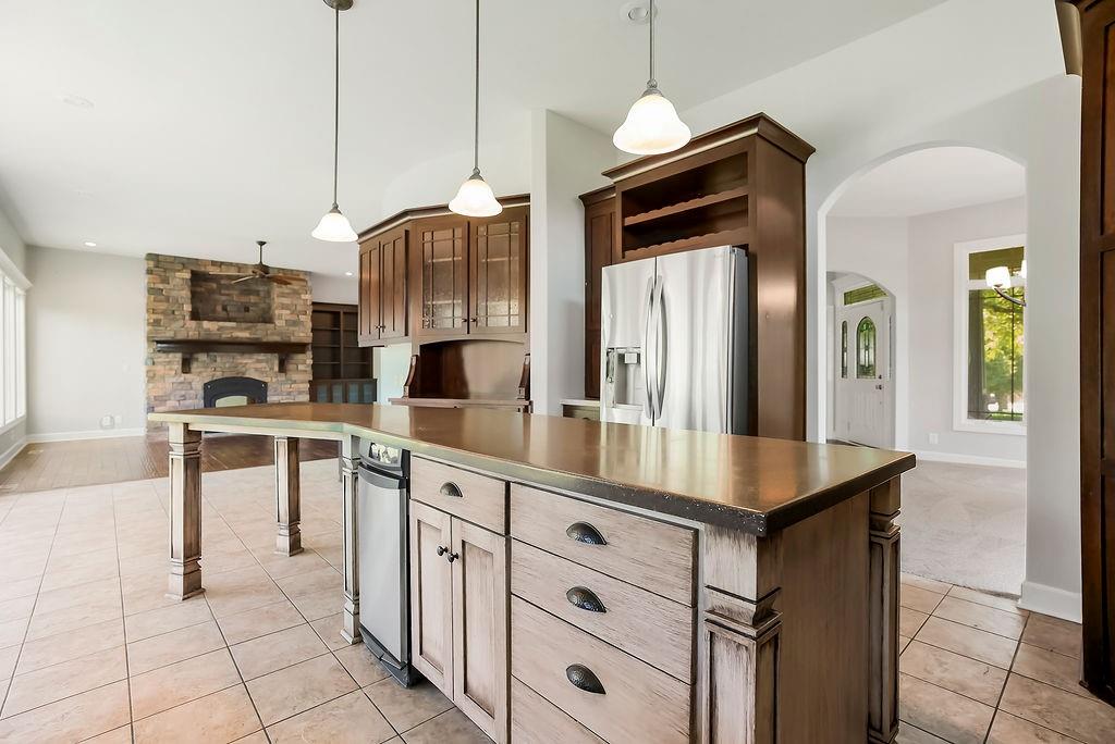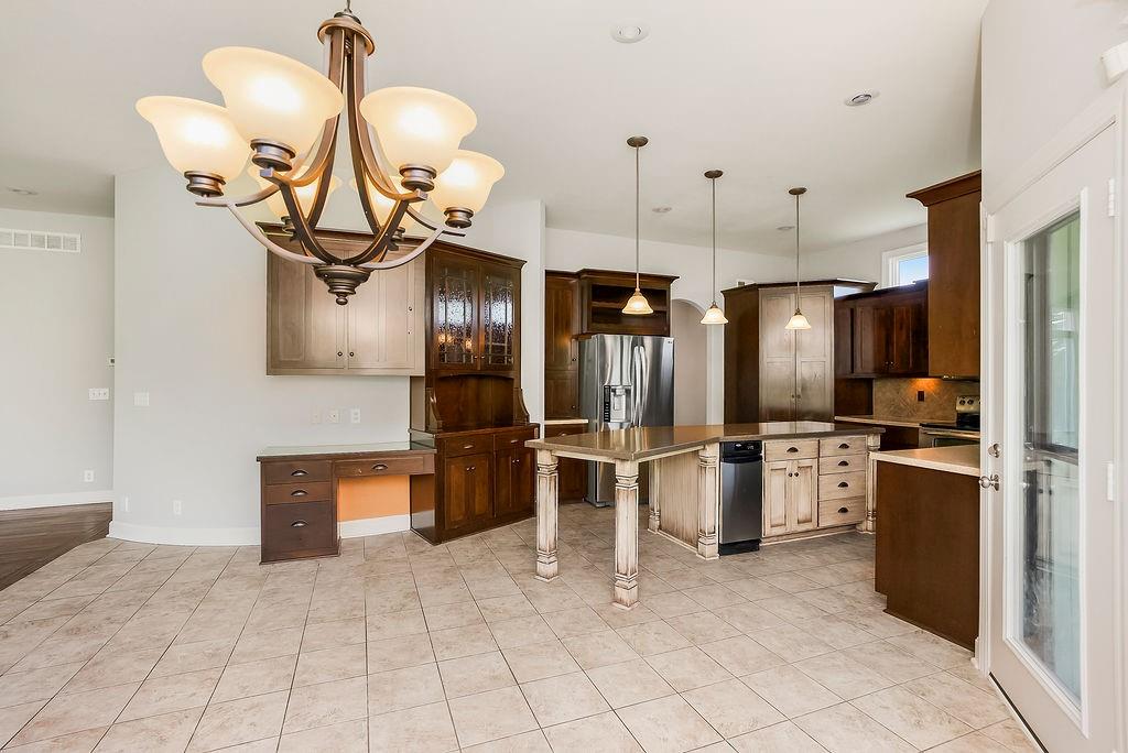 CUSTOM BUILT HOME on 2.53 Acres with a small pond– Discover Spacious, Elegant, and Thoughtfully Designed luxury in this custom-built estate home nestled on a large Estate lot just 15 minutes south of Olathe. With 5 bedrooms plus bonus non conforming basement bedroom/theater room, 5 baths, and exceptional craftsmanship throughout, this home offers a perfect blend of comfort, functionality, and timeless elegance. With the fresh paint and brand new carpet you'll be welcomed by a vaulted entry and arched staircase. Stunning custom built-ins that enhance the home's character throughout. The main level features a formal dining room, private office, and a spacious great room with a wood-burning fireplace—all seamlessly connected to the gourmet kitchen and breakfast room. Step outside to a private covered patio, perfect for entertaining or enjoying the peaceful surroundings and meticulous landscape from your private wooded backyard with a pond. The primary suite features a private deck overlooking the backyard, ensuite bath with double vanities, oversized tub, separate shower, and his-and-hers walk-in closets. The upper level also includes a convenient upstairs laundry and generously sized 3 bedrooms. The full finished basement is ready for entertainment with a Theater room/bonus room, 5th bedroom, Safe Room, and plumbing/electric installed for your dream custom wet bar area. Additional highlights include a full suspended 3-car garage floor for maximum storage or perfect to finish for a home gym, golf simulator, or added Sq footage. Newer roof (2019), dual-zone heating, and an oversized capacity hot water heater. Located near Lake Miola, this home offers access to 200 acres of boating, skiing, swimming, and fishing, along with 755 acres of scenic trails, camping, and recreation. Experience the perfect combination of serene privacy and modern convenience in this stunning estate.