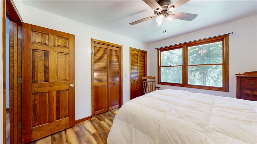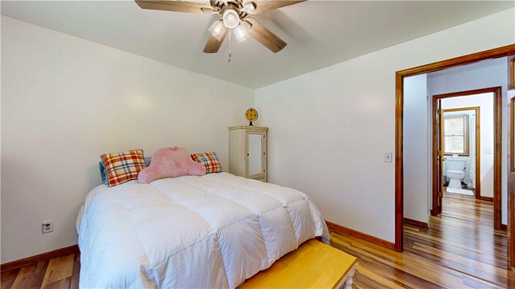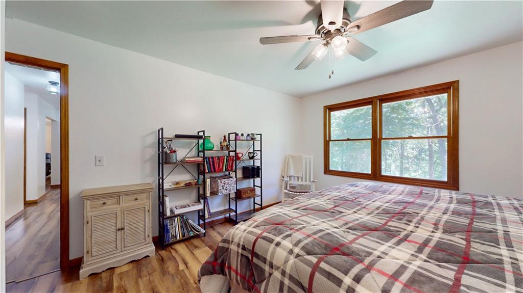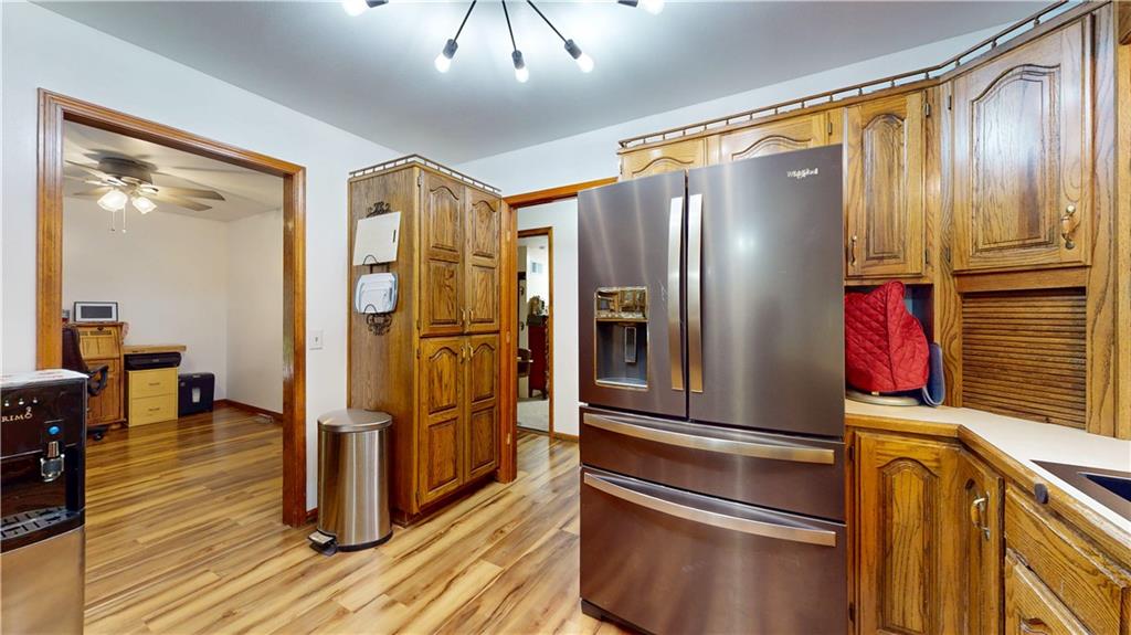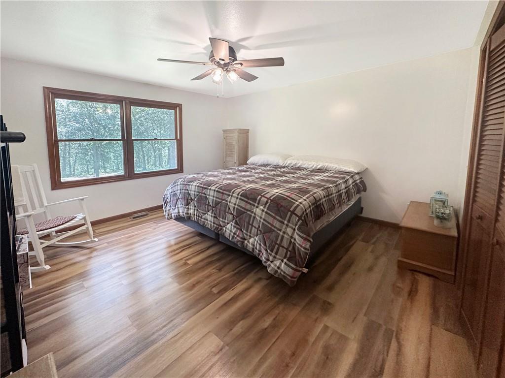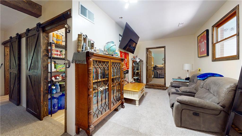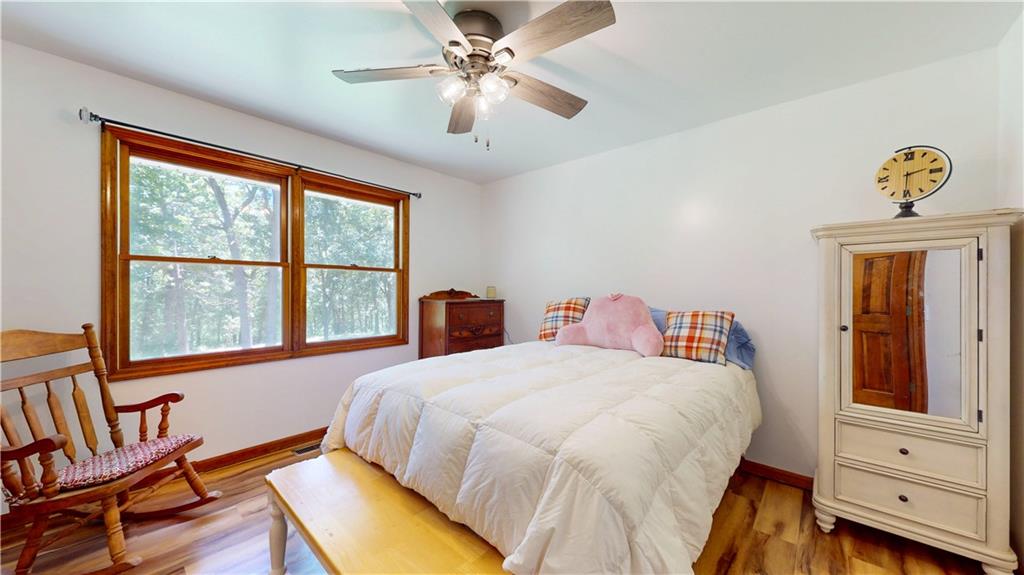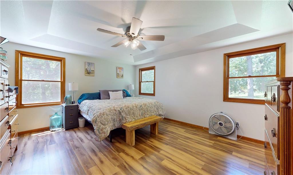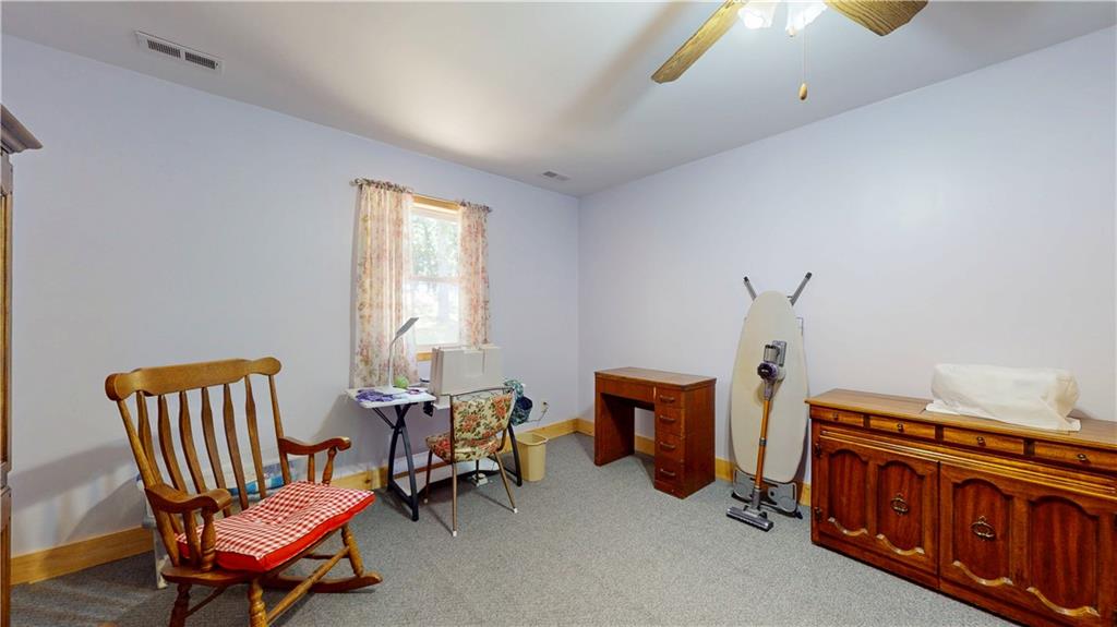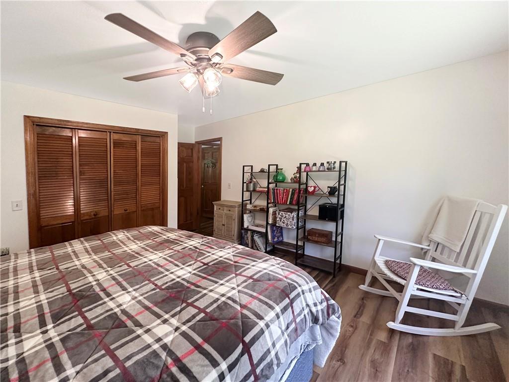 Nestled on a 22.99-acre lot with lush timber and wildlife, this ranch-style home offers privacy and convenience, minutes from downtown Warsaw, Lake of the Ozarks, and Truman Lake. It features dual living quarters on one floor, ideal for multi-generational living or guests. The original layout includes a cozy living room, 4 bedrooms, and 2.5 bathrooms. The large eat-in kitchen has ample cabinetry and a dining area with a bay window. A recent remodel added two bedrooms, a full bathroom, a family room, and a laundry room. The addition also includes a "Man Cave," walk-in pantry, and office/media room, with access to the crawl space, water heater, and water softener. Energy efficiency is highlighted with ground source heating and cooling in the original section and separate heating and AC in the remodeled attic. The home has a new roof and septic system for peace of mind. In total, the home offers 6 bedrooms, 3.5 bathrooms, 2 kitchens, 3 living areas, a pantry, and 2 dining areas. The detached garage/shop measures 24' x 36', with heat, and 220 service. The property also includes a chicken house and pen, and a rabbit house, perfect for nature enthusiasts and animal lovers.