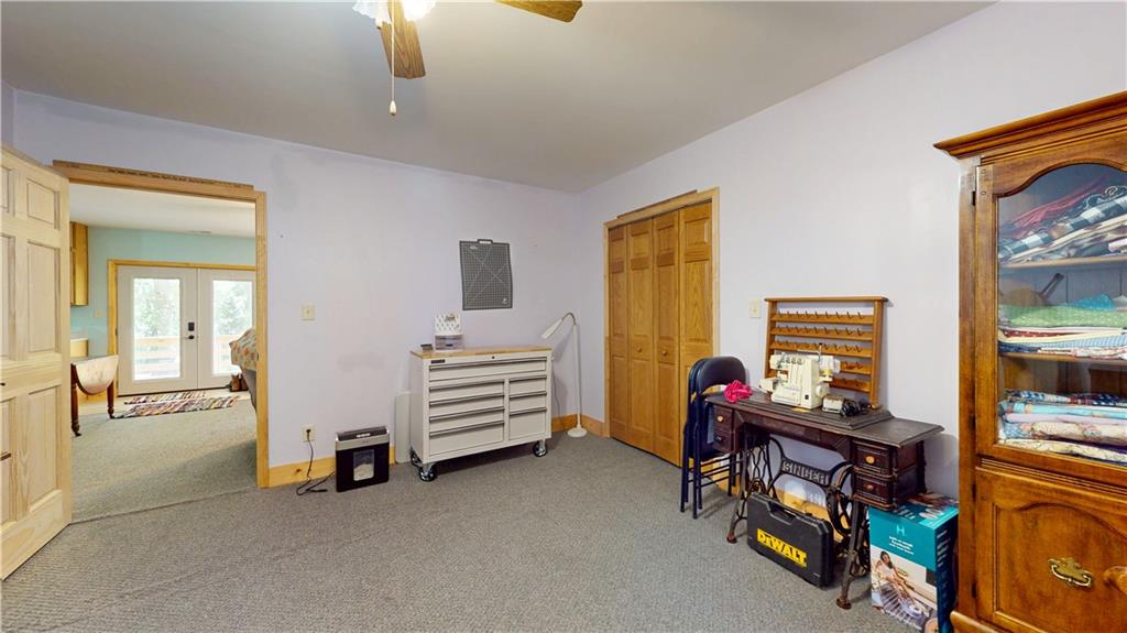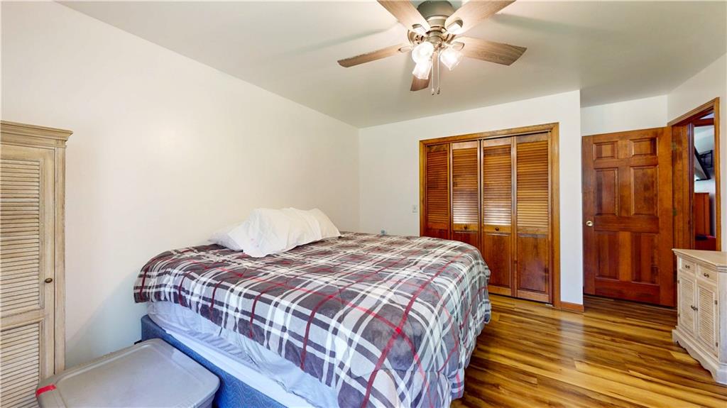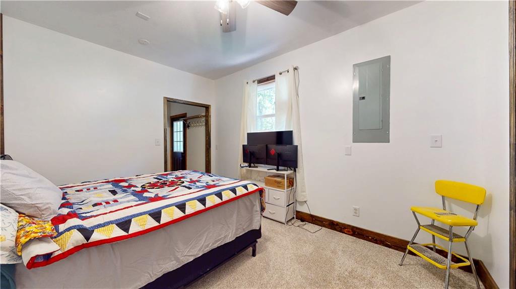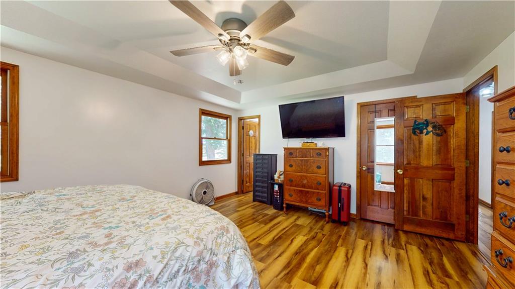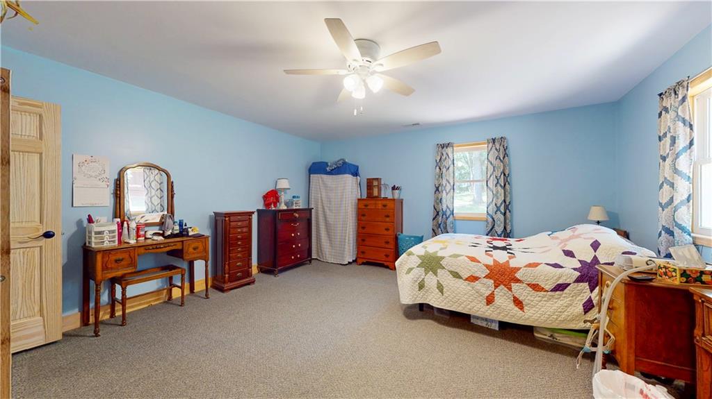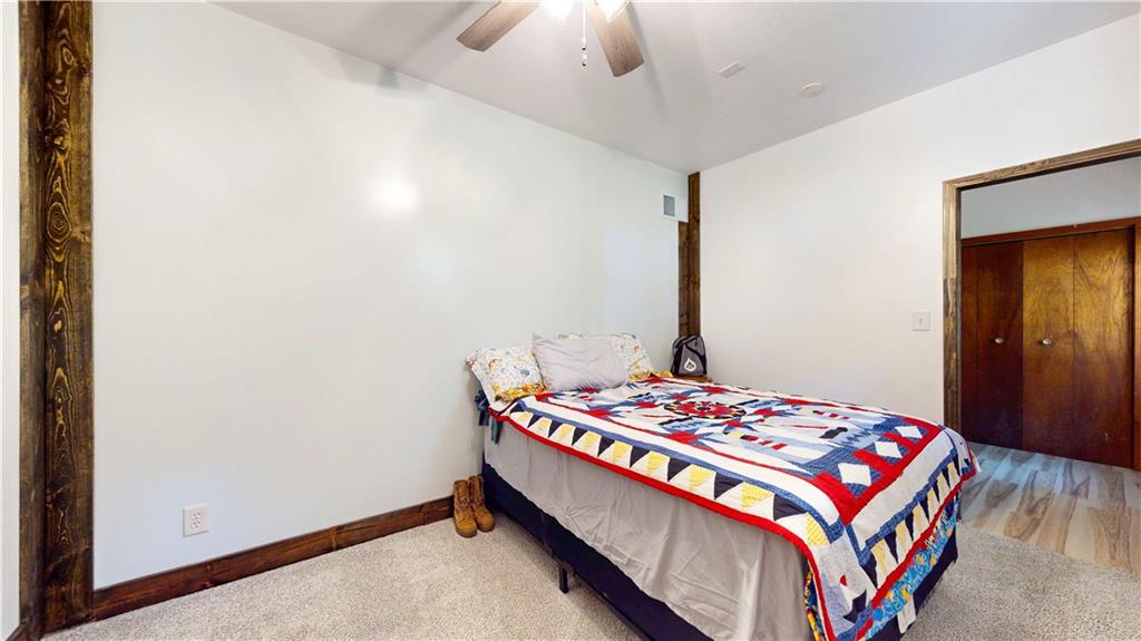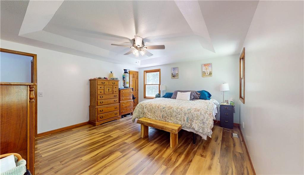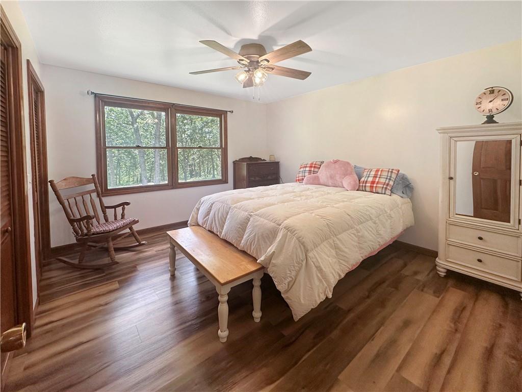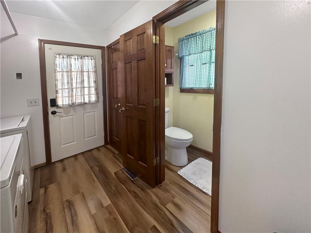 Nestled on a 22.99-acre lot with lush timber and wildlife, this ranch-style home offers privacy and convenience, minutes from downtown Warsaw, Lake of the Ozarks, and Truman Lake. It features dual living quarters on one floor, ideal for multi-generational living or guests. The original layout includes a cozy living room, 4 bedrooms, and 2.5 bathrooms. The large eat-in kitchen has ample cabinetry and a dining area with a bay window. A recent remodel added two bedrooms, a full bathroom, a family room, and a laundry room. The addition also includes a "Man Cave," walk-in pantry, and office/media room, with access to the crawl space, water heater, and water softener. Energy efficiency is highlighted with ground source heating and cooling in the original section and separate heating and AC in the remodeled attic. The home has a new roof and septic system for peace of mind. In total, the home offers 6 bedrooms, 3.5 bathrooms, 2 kitchens, 3 living areas, a pantry, and 2 dining areas. The detached garage/shop measures 24' x 36', with heat, and 220 service. The property also includes a chicken house and pen, and a rabbit house, perfect for nature enthusiasts and animal lovers.