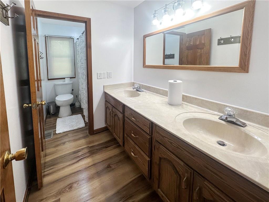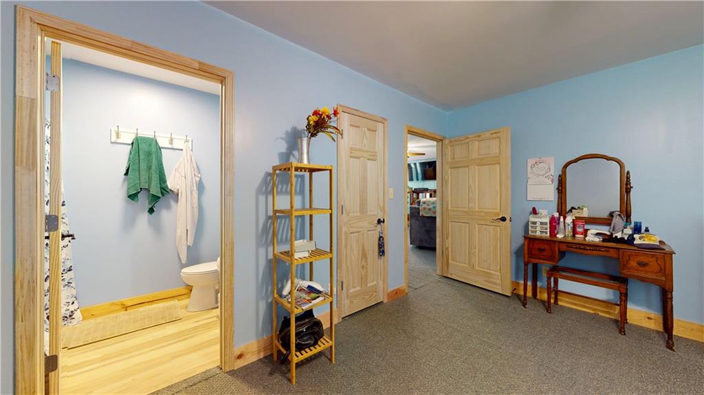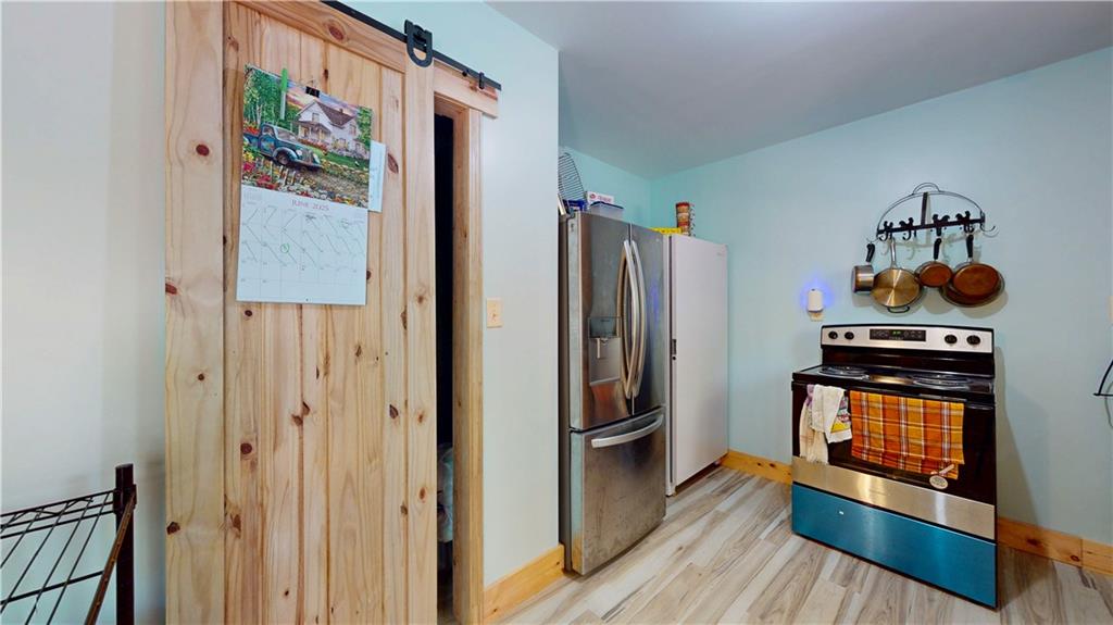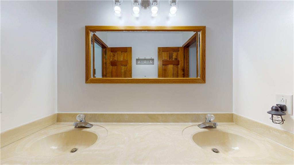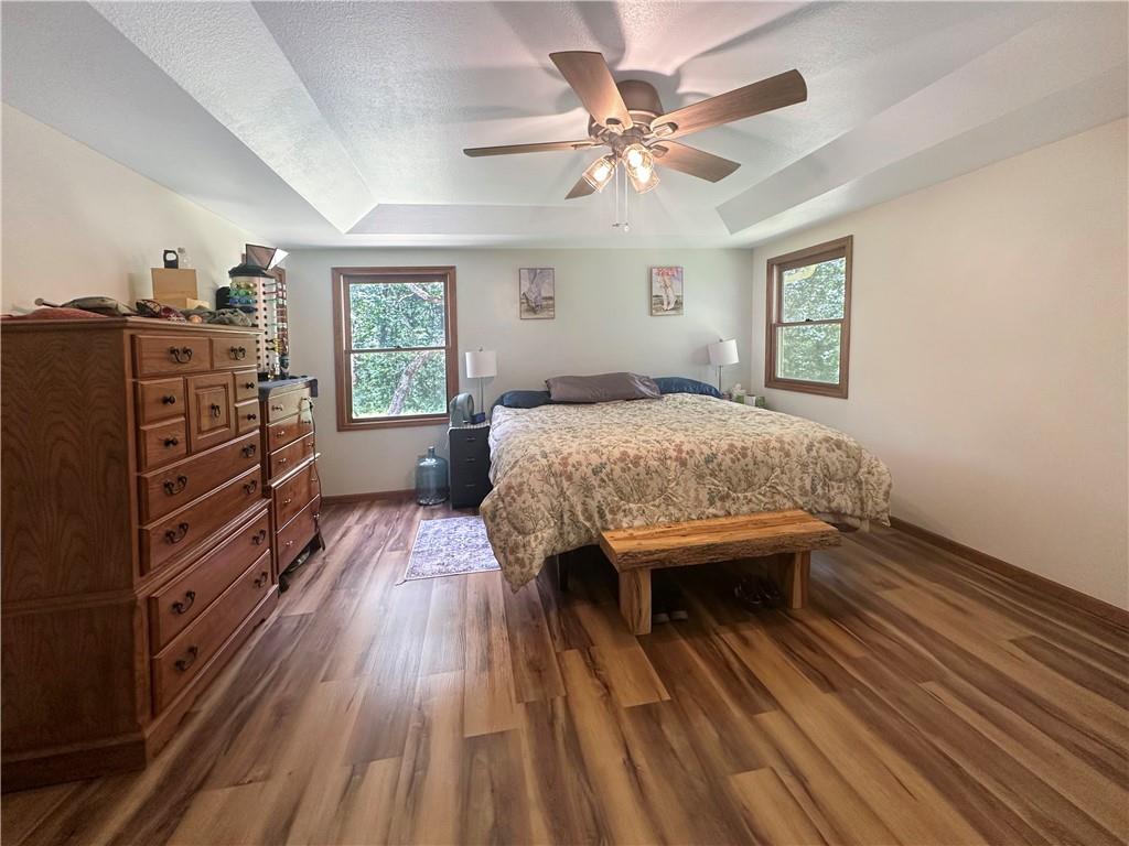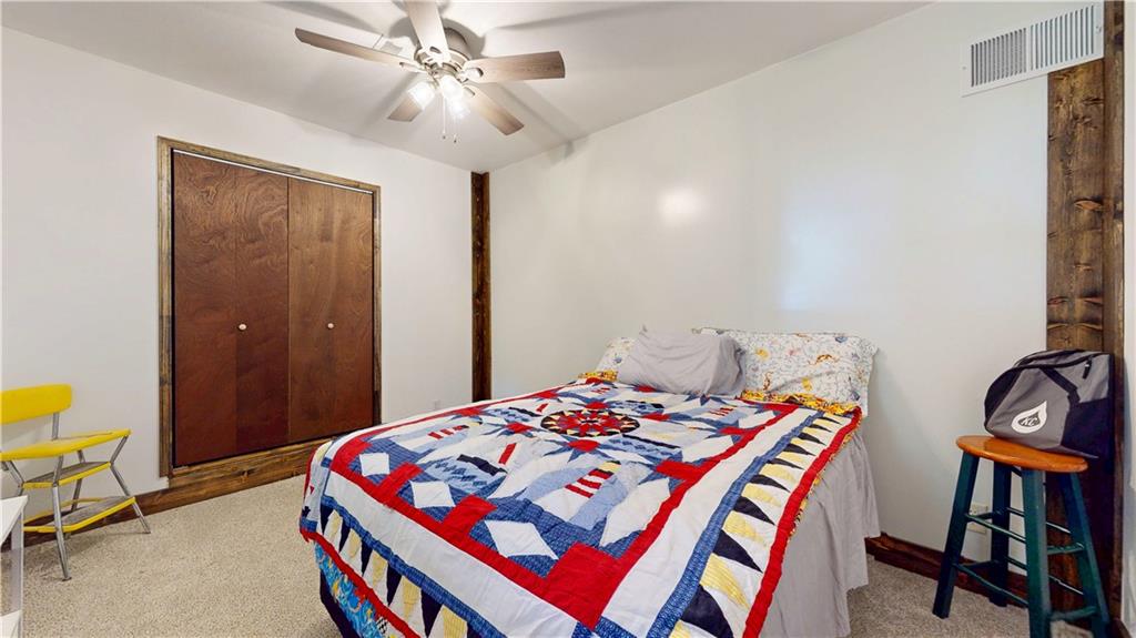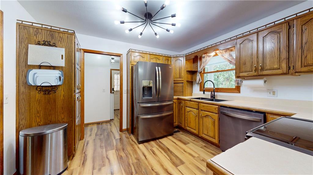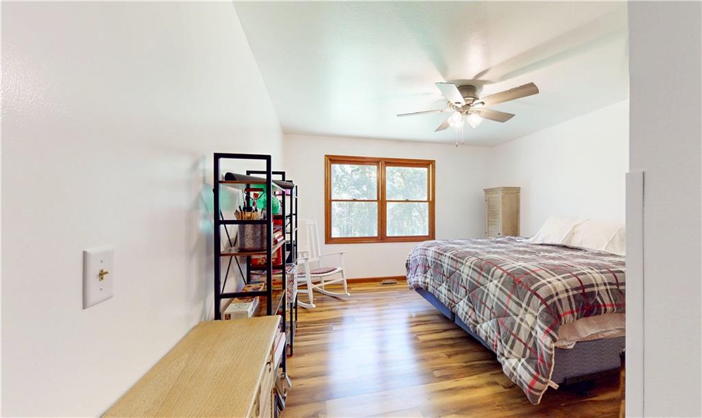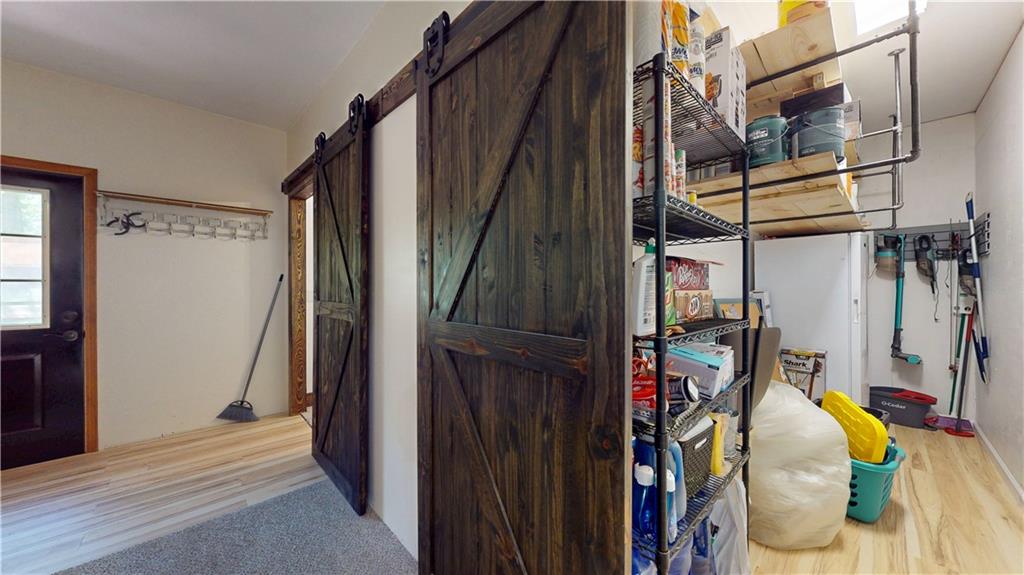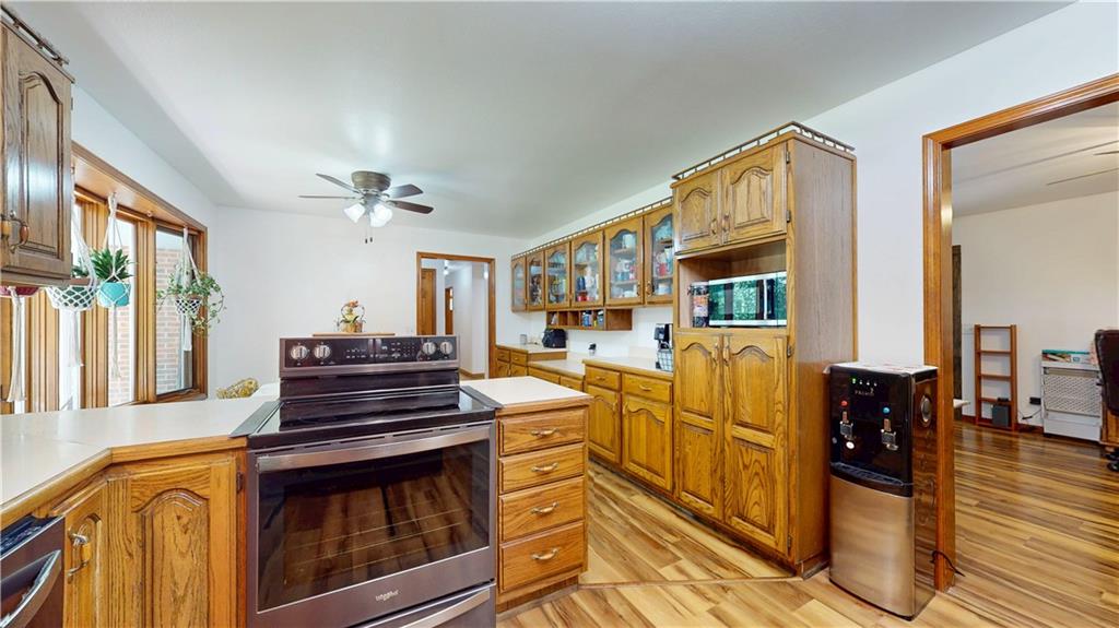 Nestled on a 22.99-acre lot with lush timber and wildlife, this ranch-style home offers privacy and convenience, minutes from downtown Warsaw, Lake of the Ozarks, and Truman Lake. It features dual living quarters on one floor, ideal for multi-generational living or guests. The original layout includes a cozy living room, 4 bedrooms, and 2.5 bathrooms. The large eat-in kitchen has ample cabinetry and a dining area with a bay window. A recent remodel added two bedrooms, a full bathroom, a family room, and a laundry room. The addition also includes a "Man Cave," walk-in pantry, and office/media room, with access to the crawl space, water heater, and water softener. Energy efficiency is highlighted with ground source heating and cooling in the original section and separate heating and AC in the remodeled attic. The home has a new roof and septic system for peace of mind. In total, the home offers 6 bedrooms, 3.5 bathrooms, 2 kitchens, 3 living areas, a pantry, and 2 dining areas. The detached garage/shop measures 24' x 36', with heat, and 220 service. The property also includes a chicken house and pen, and a rabbit house, perfect for nature enthusiasts and animal lovers.