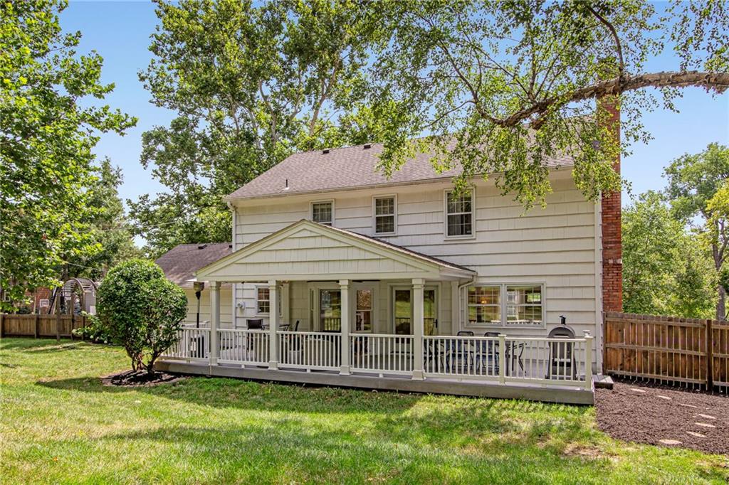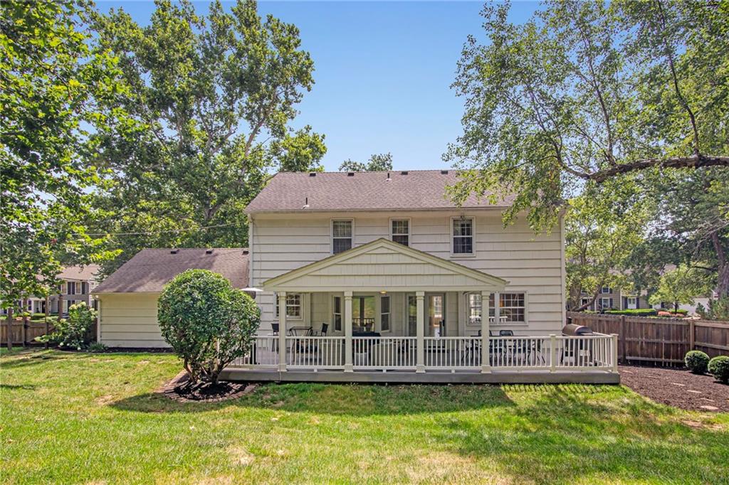 You will not find another yard like this! Nestled in the highly sought after Colony West neighborhood, this fully renovated 2-story colonial boasts an open concept first floor layout and a fully fenced park-like private back yard. The updated kitchen is a show-stopper, with abundant natural light, custom cabinetry, large island, quartz countertops, stainless steel appliances, and gas cook top. Without a doubt you will be drawn outside to the home's spacious covered porch- a perfect spot to entertain, watch a game, or relax and take in the beauty of your surroundings. The primary suite features a newly updated bathroom with built-in cabinetry and added closet space. The lower level offers a perfect space to hang out and home gym. This is a house that truly feels like home, not only for its lovely features but for the strength of community the neighborhood offers with its long-standing traditions of 4th of July parades, Halloween parties and Christmas eve Luminaries. Shawnee Mission School District, Cure of Ars Parish, and convenient access to I-435, shopping areas and many city parks only add to this amazing home! Do not miss out on this opportunity!