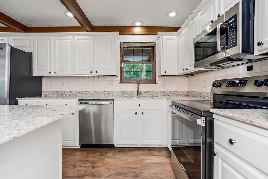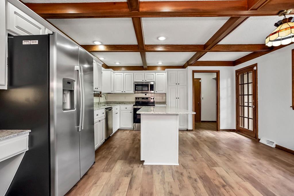 TRUE RANCH, Main Floor Laundry, SOLAR!!! New granite countertops, soft close cabinets in the kitchen, new stainless appliances, sink, fixtures and disposal. Freshly painted, new luxury vinyl plank flooring throughout, offering both durability and elegance. Natural light flows through the French doors in the living room. The Craftsman dental molding and trim offers character in the living room with built in bookcases that surround the cozy gas fireplace. The primary suites has a new shower right down to the plumbing, a large walk-in closet. Downstairs is a fully finished walk out with new LVP flooring. One non-conforming bedroom, bathroom and an additional room for a home office, gaming, gym, dark room, or you choose. Check out the expansive Trex deck that overlooks the backyard, perfect for outdoor gatherings, gardening, or simply soaking up the sunshine. This home blends indoor comfort with outdoor space and you feel like your in a tree house. You will also enjoy the benefits of low utility bills with the Solar upgrades for going green! No more high price monthly power bills! This home sits on a cul de sac off Mic-o-say and 19th street in Cherokee Estates in Blue Springs. HVAC 2017, The hot tub can stay or go, your choice. NEW ROOF is COMING!!! Architectural roofing system to be installed by closing.