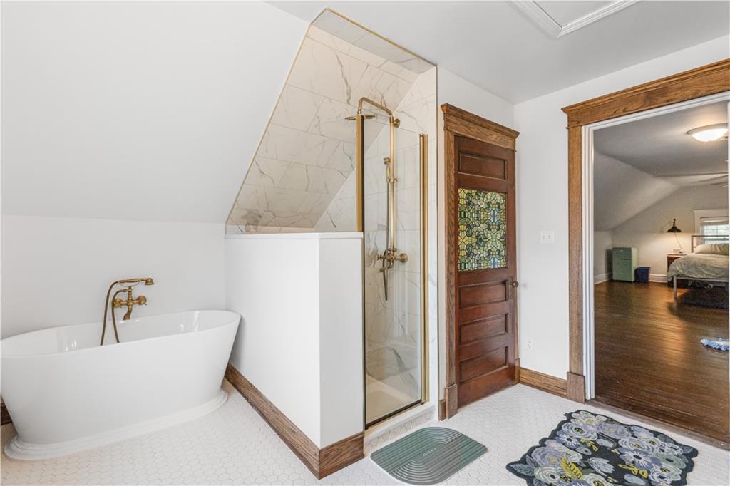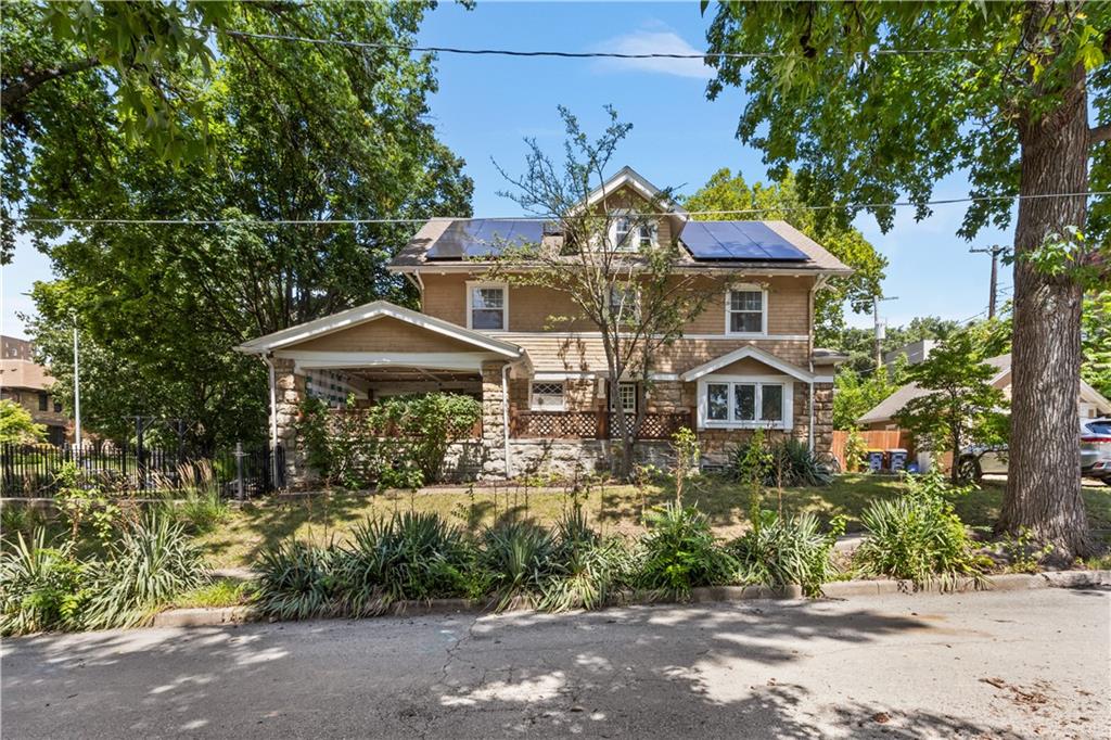 Welcome home to this gorgeous stone & cedar Craftsman located in sought after Hyde Park. Don't miss this generous iron gated lot and the enormous covered wrap around front patio, which is perfect for relaxing or entertaining. This turn of the century beauty boasts well maintained original trim work as well as current updates. All three stories include gleaming hardwoods, a beautiful kitchen overlooking the spacious dining and family rooms, three generous sized bedrooms and updated bathroom on the second level (the fifth bedroom is non-conforming) and a huge primary on the third floor with an amazing bath. Outside you'll find an oversized driveway and garage as well as street parking. The new solar system will keep electric costs to a minimum. Walk to so many new restraunts or the street car line.