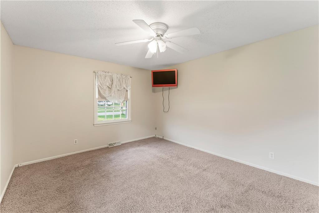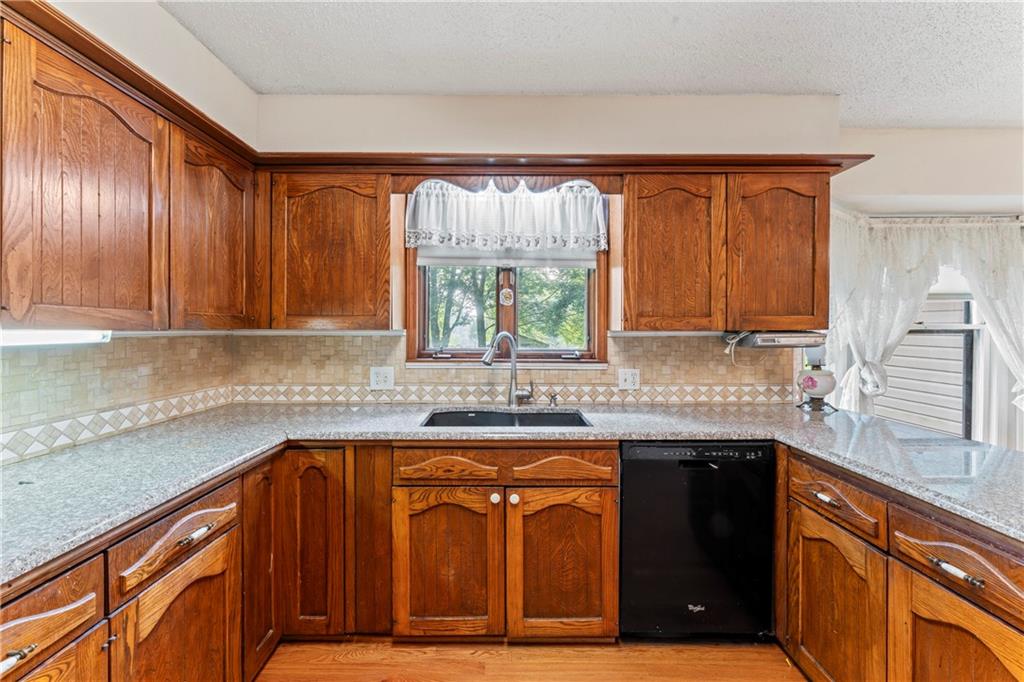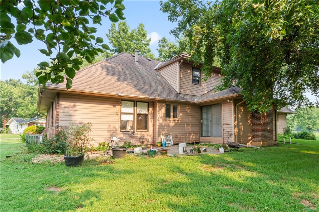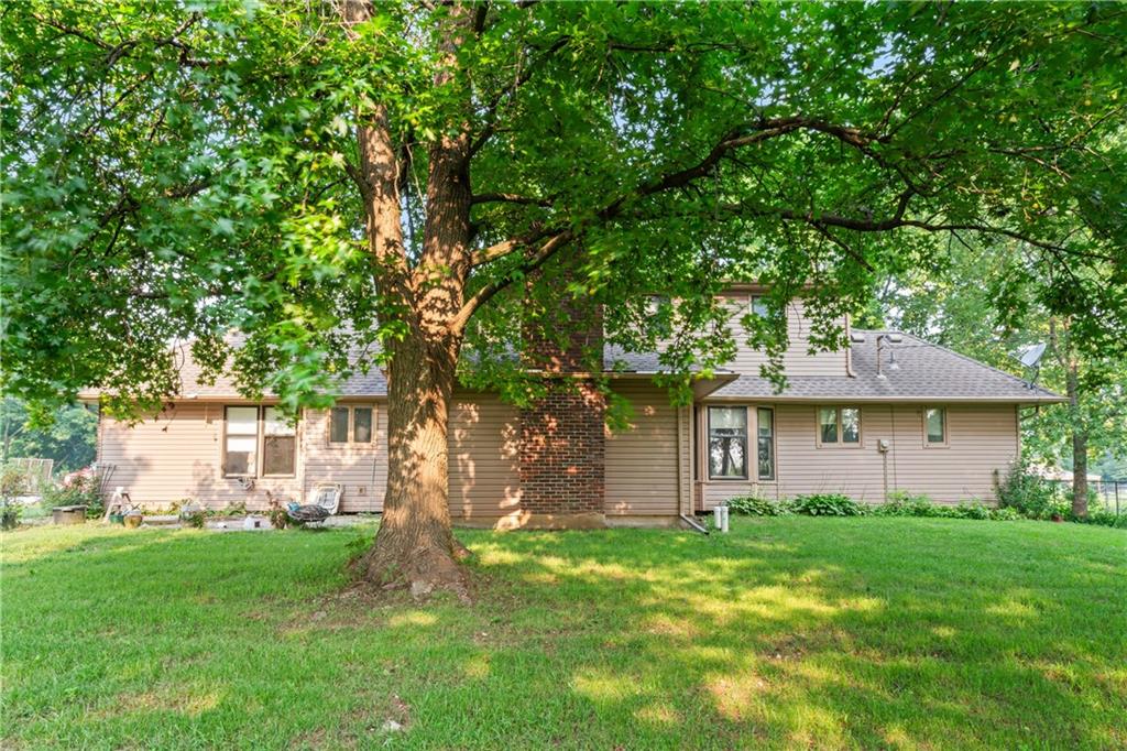 Tucked at the end of a quiet dead-end street, this 4-bedroom, 3.5-bath home offers space, privacy, and solid potential. With a brick front and side exterior, plus vinyl siding on the back and north, the home sits on a generous lot surrounded by mature trees and features a partially fenced yard and a cozy patio—perfect for relaxing or entertaining outdoors. Inside, you'll find wood floors throughout much of the main level, a striking stone fireplace in the living room, and granite countertops in the kitchen. The layout includes laundry conveniently located in the main-level primary suite. An attached 2-car garage adds everyday ease, while the full unfinished basement delivers plenty of storage and room to grow. This home is being sold as-is, offering the chance to make it your own while enjoying the benefits of a well-established neighborhood and a peaceful setting. A smart opportunity for buyers looking to build equity over time.