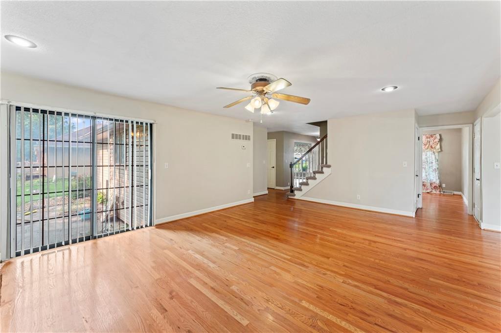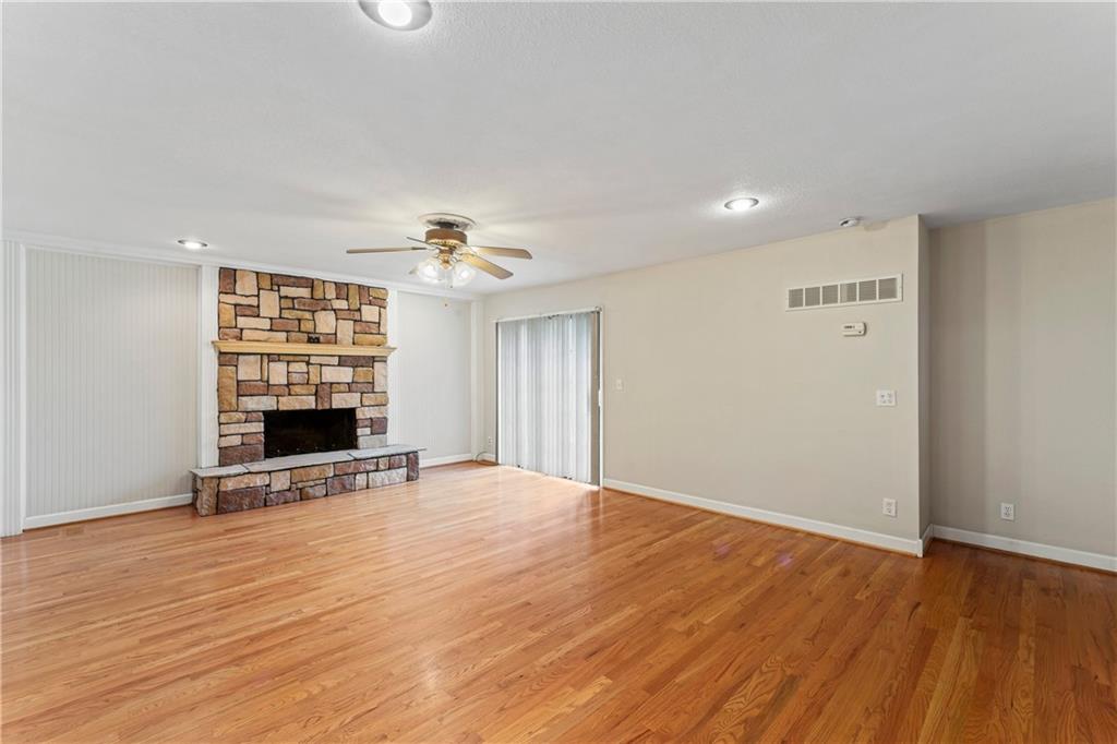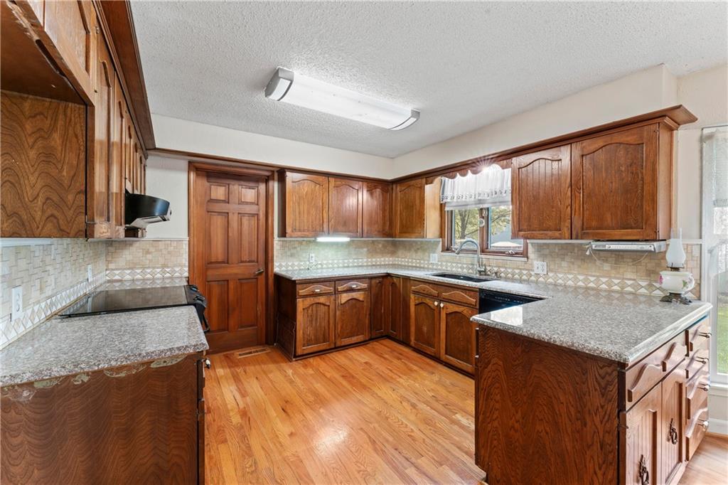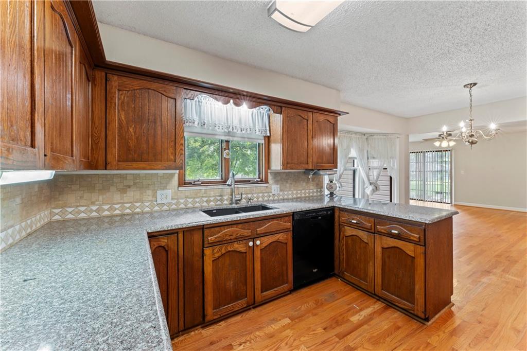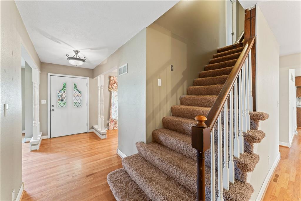 Tucked at the end of a quiet dead-end street, this 4-bedroom, 3.5-bath home offers space, privacy, and solid potential. With a brick front and side exterior, plus vinyl siding on the back and north, the home sits on a generous lot surrounded by mature trees and features a partially fenced yard and a cozy patio—perfect for relaxing or entertaining outdoors. Inside, you'll find wood floors throughout much of the main level, a striking stone fireplace in the living room, and granite countertops in the kitchen. The layout includes laundry conveniently located in the main-level primary suite. An attached 2-car garage adds everyday ease, while the full unfinished basement delivers plenty of storage and room to grow. This home is being sold as-is, offering the chance to make it your own while enjoying the benefits of a well-established neighborhood and a peaceful setting. A smart opportunity for buyers looking to build equity over time.