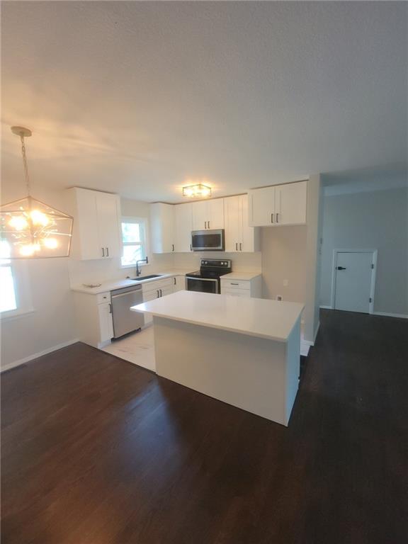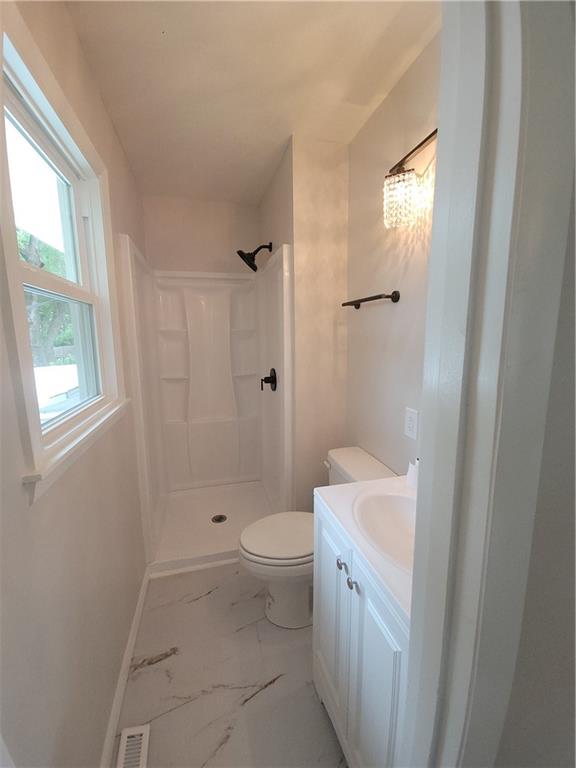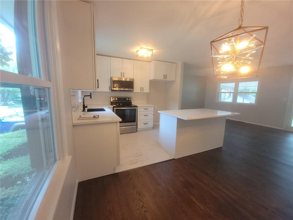 This charming 3-bedroom, 2-bath home boasts refinished hardwood floors throughout the living room, hall and all of the bedrooms. The kitchen and dining room are beautifully updated with new cabinets, quartz countertops, and modern lighting. The hallway bathroom features a soaking tub with a tile surround, a new vanity, a linen cabinet, and great lighting. The primary suite offers a new shower insert, new vanity, and matching lighting to the hallway bath. The privacy-fenced backyard and covered patio provide the perfect space for grilling and relaxing. An oversized 2-car garage and backyard shed offer plenty of room for parking and storage. Additionally, with new egress windows, the basement is ready to be finished for extra living space. New windows and an updated HVAC system complete the list of essential upgrades. The driveway was recently repaired and sealed. Great first-time home buyer home or a perfect rental! Possible lease to own option.
