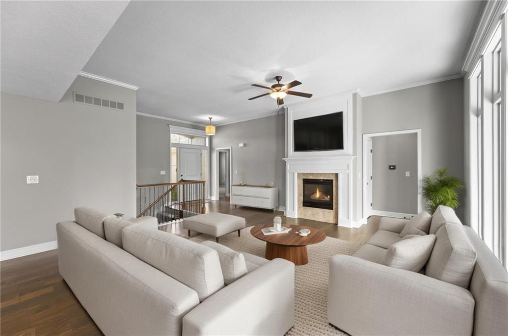 Welcome to this beautifully designed 4-bedroom, 3-bathroom home that blends comfort, style, and functionality. The heart of the house is a bright and open kitchen and living area, filled with natural light and centered around a cozy fireplace—perfect for relaxing or entertaining year-round. Enjoy the flexibility of a dedicated home office and a private gym area, making it easy to balance work and wellness without leaving the house. The expansive basement features a large recreation room, ideal for game nights, movie marathons, or creating a custom entertainment space to suit your lifestyle. With generous bedrooms, modern bathrooms, and thoughtful spaces throughout, this home offers the perfect balance of everyday comfort and exceptional versatility. Enjoy the community swimming pool or relax in the shade of mature trees in the beautiful back yard. Schedule your showing today!