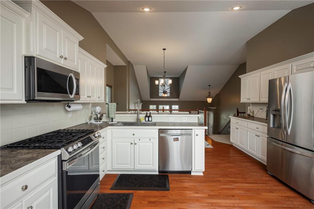 Welcome to this spacious 4-bedroom, 3-bathroom Front-to-Back Split in the desirable Lakepointe neighborhood. Built in 2003 and featuring a 3-car garage and brand new roof in 2024, this home is move-in ready with all appliances included—even the washer and dryer! Step inside to a warm and inviting family room with gleaming hardwood floors, gas fireplace, and abundant natural light thanks to the open floor plan. The kitchen features hardwood flooring, a walk-in pantry, stainless steel appliances, gas range, and ample cabinet and counter space, perfect for everyday cooking and entertaining. The primary suite offers a walk-in closet and a spacious en suite bath with a double vanity, separate shower, and soaking tub. Enjoy direct access to the back deck from either the kitchen or the primary bedroom. Downstairs, you’ll find a cozy second living area with a fireplace insert and walk-out access to the fenced backyard, along with the third bathroom, fourth bedroom (ideal for guests or a home office), unfinished storage space, and a subbasement with an egress window for additional possibilities. Conveniently located within walking distance to trails and just minutes from I-435, this home checks all the boxes for comfort, functionality, and location.