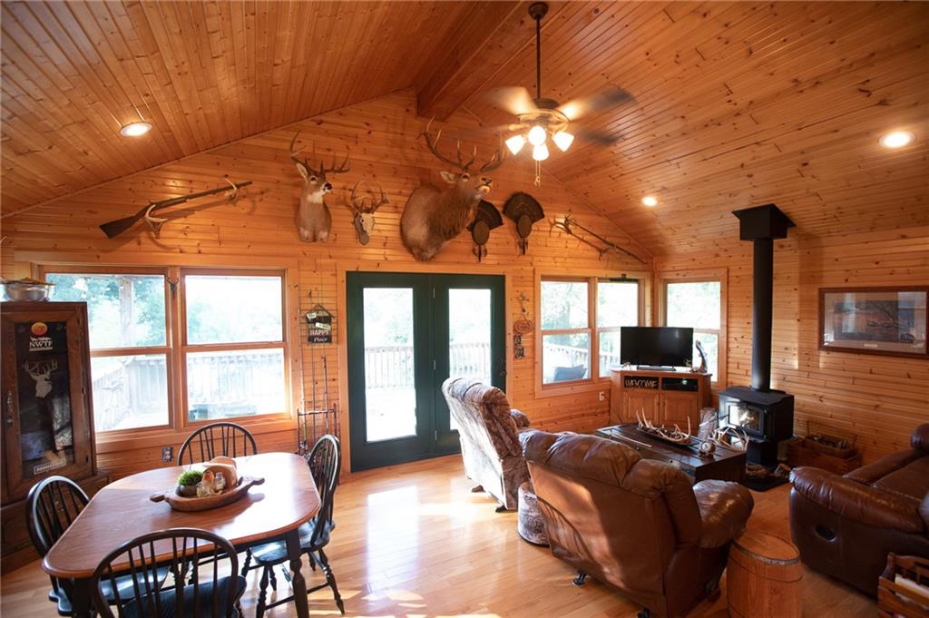 Welcome to this stunning 220 +/- acre farm nestled in the heart of Polk County, Missouri, just south of the beautiful Pomme de Terre Lake. This exceptional property offers the perfect blend of privacy, recreation, and functionality, featuring a secluded, fully furnished cabin tucked away among mature oak and hickory hardwoods. With rolling terrain and panoramic views, the land is as picturesque as it is productive, making it ideal for both outdoor enthusiasts and those seeking a peaceful retreat. The property boasts a well-established trail system, making it easy to explore every corner of the landscape, whether for hunting, ATV riding, or checking trail cams. Stinking Creek meanders through the acreage, adding both charm and natural water resources, along with a scenic pond complete with a dock for fishing and relaxation. Wildlife abounds, with excellent deer and turkey hunting opportunities right out your back door. Two well-waterers support both cattle and local wildlife, and native plus cool-season grasses offer strong grazing potential. A small barn, tractor, and implements are included in the sale, making this a turnkey setup for your recreational desire, livestock, or hobby farming. Whether you're looking for a hunting getaway, a working farm, or a serene hideaway near the lake, this property delivers it all.