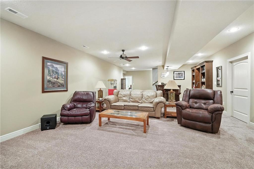 PRICE IMPROVEMENT! Welcome to this stunning Lee's Summit residence, where luxury & functionality meet. This 5-Br, 4-Ba home has over 4,000 sq ft of meticulously designed living space. 2 of the 5 Bedrms have en suites. A soaring ceiling & a wall of windows line the Living Rm.The Spacious Liv Rm is 1 of 2 Living Areas & showcases a gas fireplace with a floor-to-ceiling stone wall. The gourmet kitchen is a chef's dream, complete w/ beautiful stained cabinetry, gleaming granite countertops, and top-of-the-line appliances including 2 ovens, 1 of which is a convection oven. A massive walk-in pantry w/ a convenient service door to the garage & a built-in mini drink cooler ensure you'll have all the storage & amenities you need. A laundry room is conveniently located just off the kitchen with a second laundry room on the lower level. Escape to the huge master bedroom, a true sanctuary measuring 25 feet long, featuring a sophisticated coffered ceiling with a ceiling fan and a dedicated sitting area. The master bath is a spa-like retreat, finished w/ceramic tile flooring, a granite countertop with double vanity, a fully tiled shower with 2 shower heads plus a luxurious rain shower head, built-in linen closet & drawers, & a generous walk-in closet. The fully finished Lower Level expands your living & entertaining possibilities, offering a huge Rec Rm w/ wet bar complete with ice machine & mini fridge, 2 bedrooms, & 2 bathrooms. 3 of the 4 bathrooms in this home are equipped with bidets, adding a touch of modern convenience & luxury. A screened porch is off Kitchen. The oversized garage is a car enthusiast's dream, accommodating 4 cars with a large work area. The lawn has an inground irrigation system. This home truly offers an abundance of space & high-end features, making it the ideal setting for a growing family or for those who love to entertain in style. Discover the perfect blend of elegance, comfort, and practicality in this exceptional Lee's Summit property.