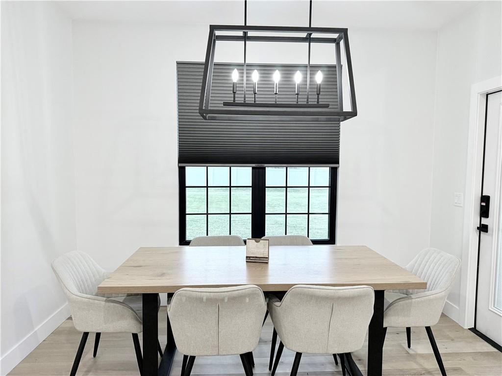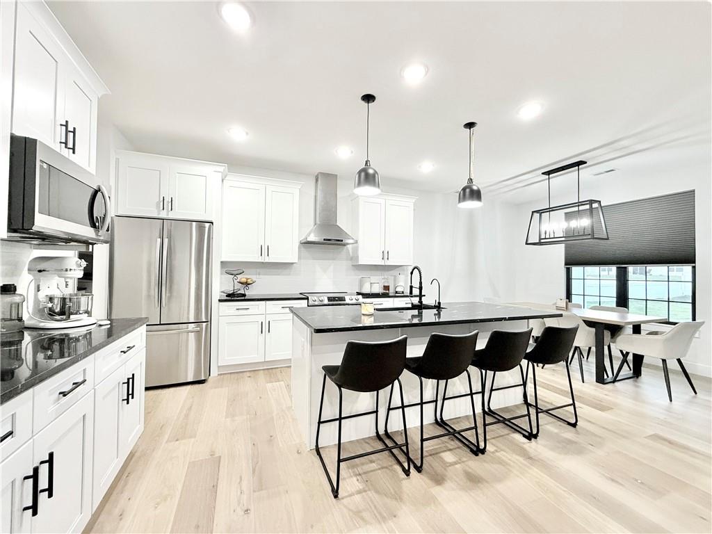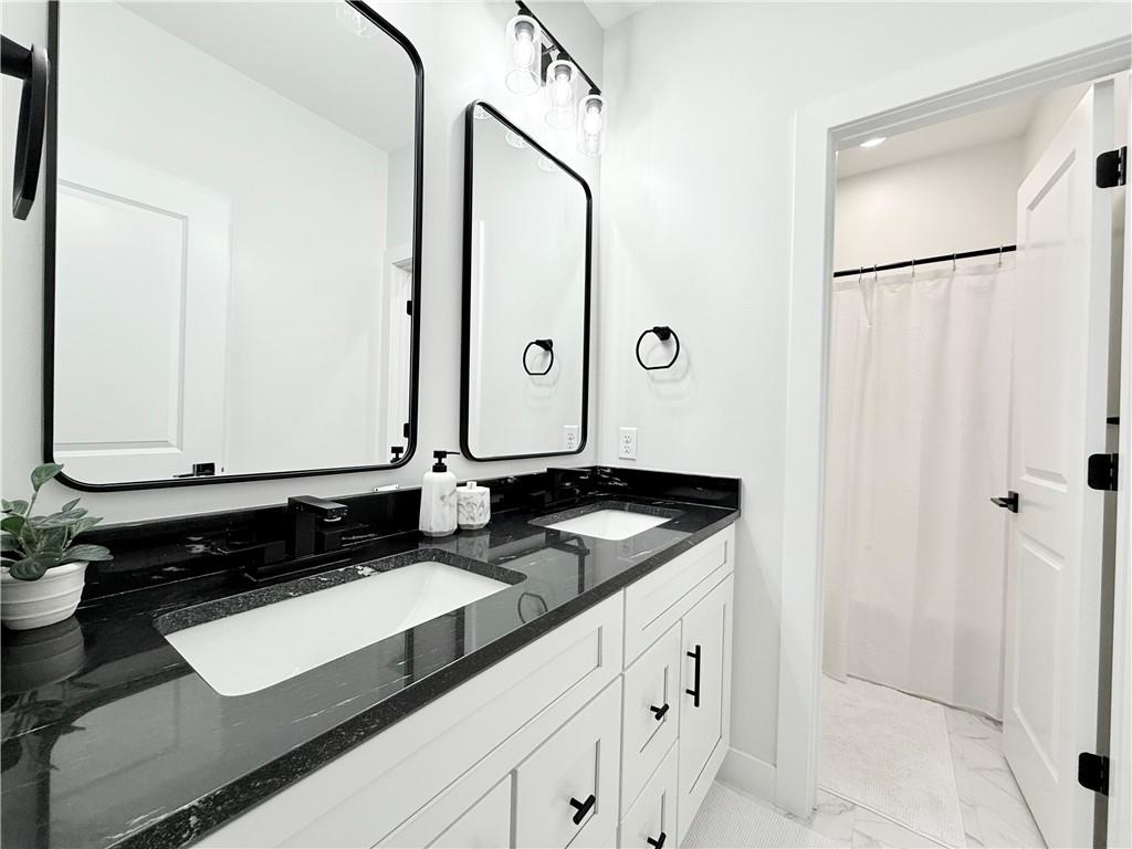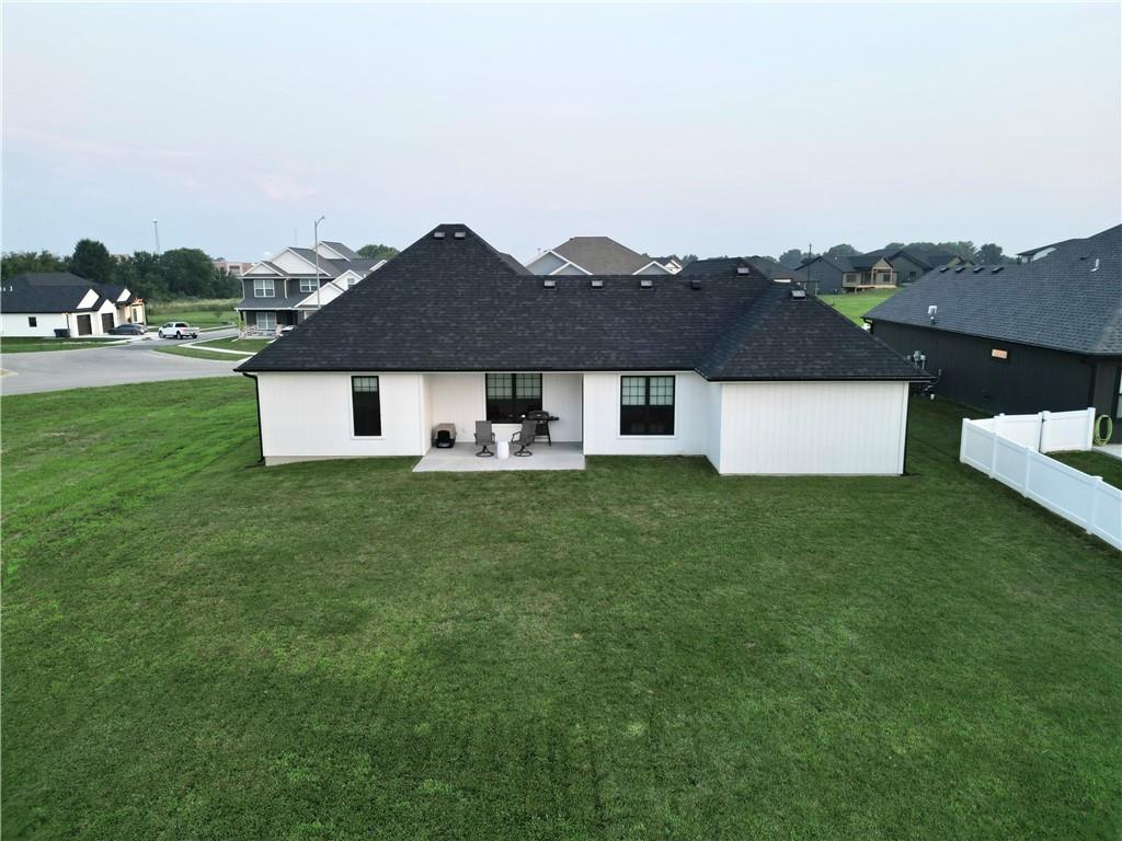 Welcome to this stunning 4-bedroom, 2-bathroom home with striking curb appeal, featuring a crisp white exterior, bold black accents, and warm wood details that create a timeless and modern aesthetic. Inside, you'll find a bright open-concept layout with vaulted ceilings, stylish lighting, and a beautiful fireplace that serves as the heart of the living area. The spacious living room flows seamlessly into a chef-inspired kitchen equipped with sleek black countertops, stainless steel appliances, a deep farmhouse sink, and ample cabinetry. A walk-in pantry with a window adds both charm and functionality. The home also includes a dedicated laundry room, thoughtfully positioned for everyday convenience. The luxurious owner's suite offers a spa-like retreat with a soaking tub, an oversized tiled shower, and a generous walk-in closet. Every detail of this home has been carefully considered to offer comfort, style, and functionality. Schedule your showing today and see all this beautiful home has to offer.