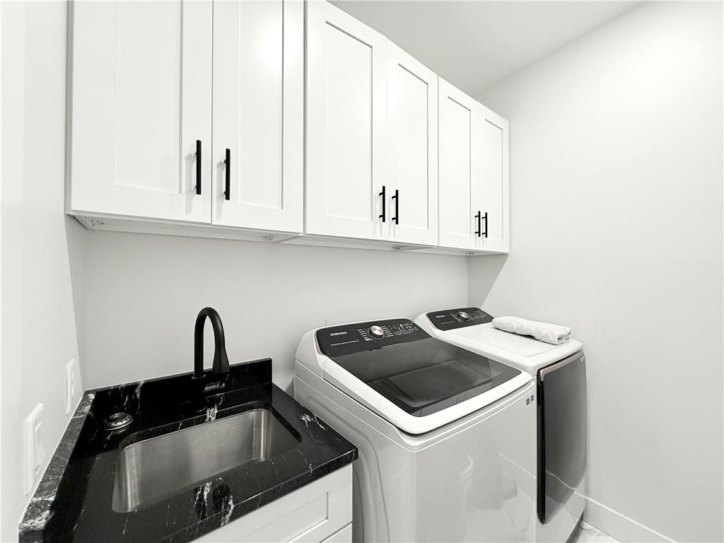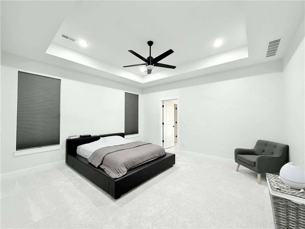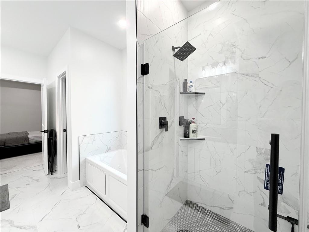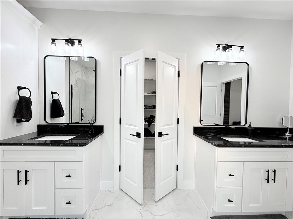 Welcome to this stunning 4-bedroom, 2-bathroom home with striking curb appeal, featuring a crisp white exterior, bold black accents, and warm wood details that create a timeless and modern aesthetic. Inside, you'll find a bright open-concept layout with vaulted ceilings, stylish lighting, and a beautiful fireplace that serves as the heart of the living area. The spacious living room flows seamlessly into a chef-inspired kitchen equipped with sleek black countertops, stainless steel appliances, a deep farmhouse sink, and ample cabinetry. A walk-in pantry with a window adds both charm and functionality. The home also includes a dedicated laundry room, thoughtfully positioned for everyday convenience. The luxurious owner's suite offers a spa-like retreat with a soaking tub, an oversized tiled shower, and a generous walk-in closet. Every detail of this home has been carefully considered to offer comfort, style, and functionality. Schedule your showing today and see all this beautiful home has to offer.