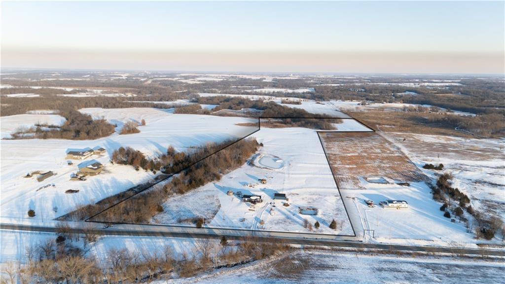 Back on the market, no fault of the sellers so here is your chance... Priced $60,000 below appraisal gets you instant equity with country living with Johnson County, MO lower taxes. 3 bedroom, 2 bath home on 20 acres, blacktop road, newer 24 x 30 foot shed (100 amp breaker panel) plus two converted grain bins--one into an entertainment space, second a barn setting. Home has vinyl floors, high ceiling and electric fireplace feature in main area. Metal roof/gutters/windows all replaced within 3 years. Tub walls are solid surface. Land includes two fenced in areas, approximately 1 acre each. Home is anchored on 30 x 50 slab with insulated crawl space. Concrete storm shelter just out the back door to keep you safe when Missouri weather takes a turn for the worse.