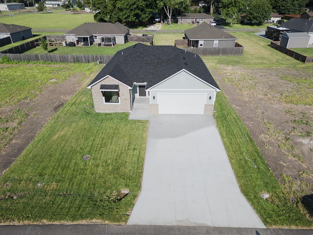 BRAND NEW 5 BEDROOM, 3 BATH HOME LOADED WITH UPGRADES AND STYLE! This beautifully built home offers an open, light-filled layout with vaulted ceilings, white oak hardwood floors, and upgraded Andersen windows throughout. The chef’s kitchen is a showstopper with quartz counters, a large island, pantry, and stainless appliances. The spacious master suite includes a walk-in closet and private bath with double vanities, quartz counters, and a large shower. The finished basement adds two more bedrooms, a full bath, a huge family room, and tons of storage. Built with a Silent I-Joist floor system and LP SmartLap siding, this home is as solid as it is stylish. Enjoy peaceful mornings on the covered back deck or explore nearby Lake Perry for weekend fun. The oversized 2-car garage gives you extra room for gear or projects. Convenient location with easy access to both Topeka and Lawrence makes this home the perfect blend of comfort and convenience!