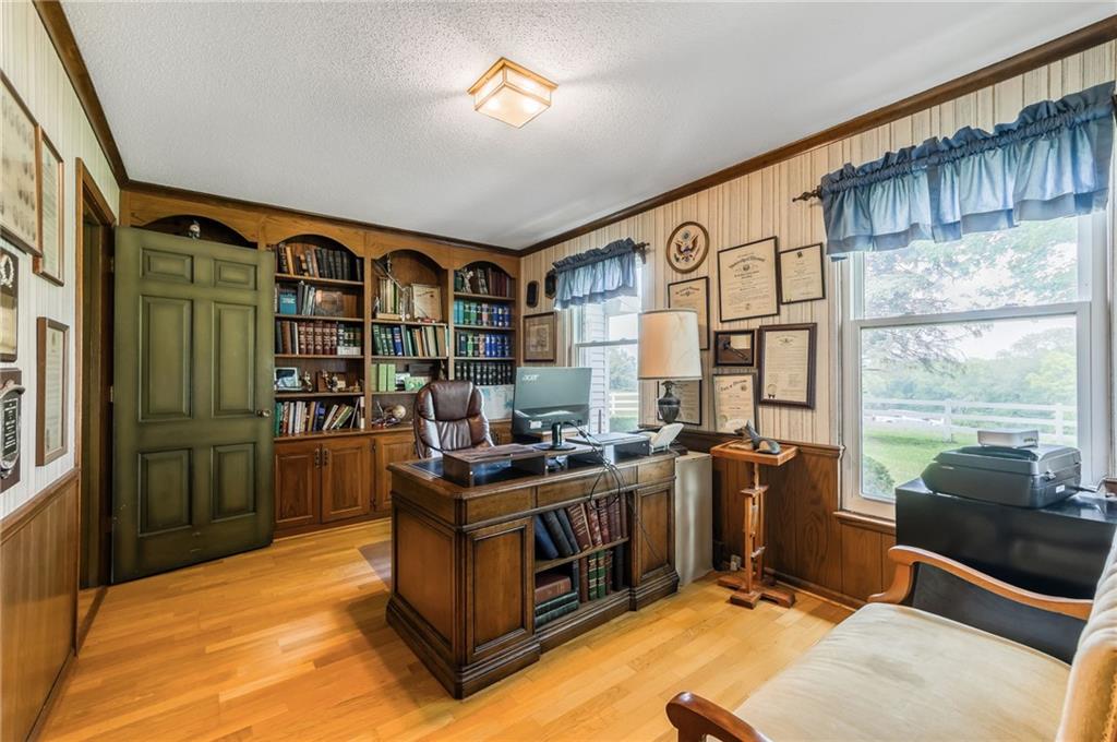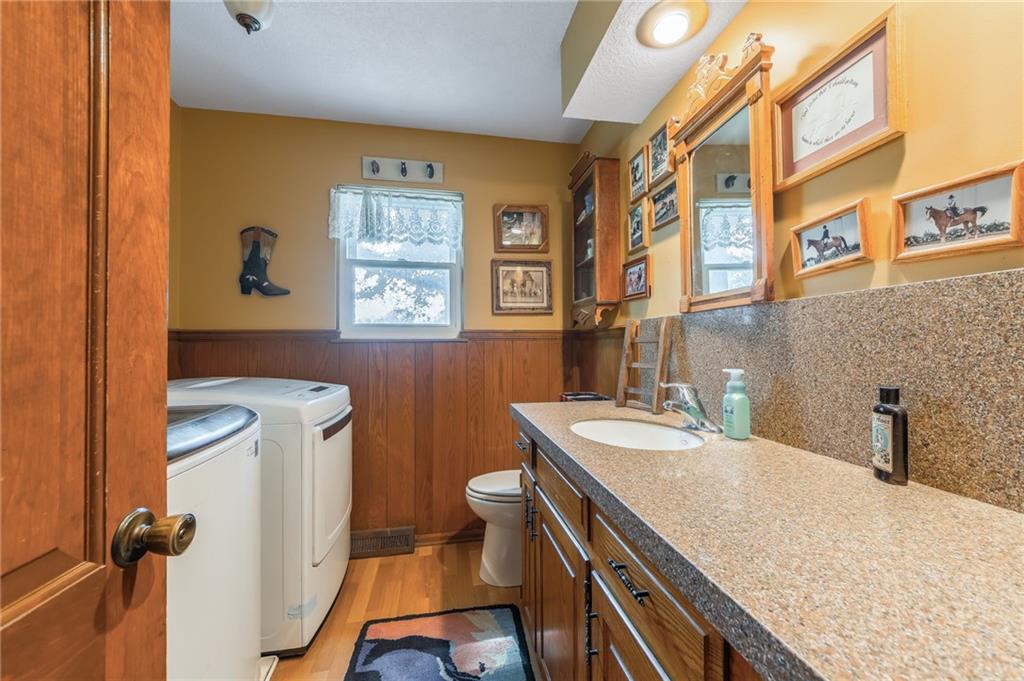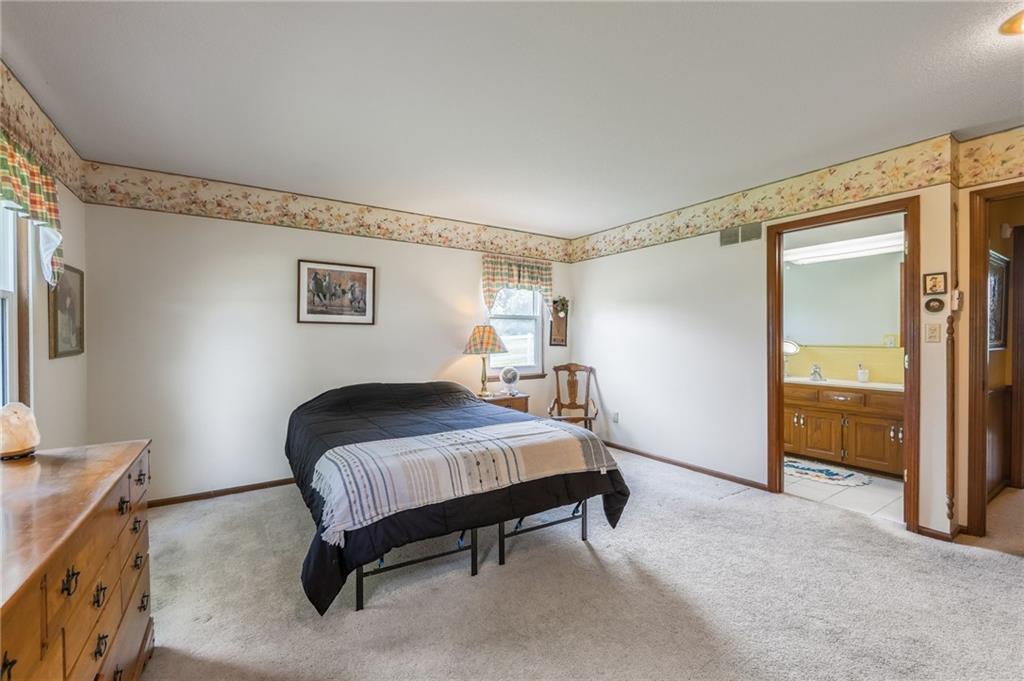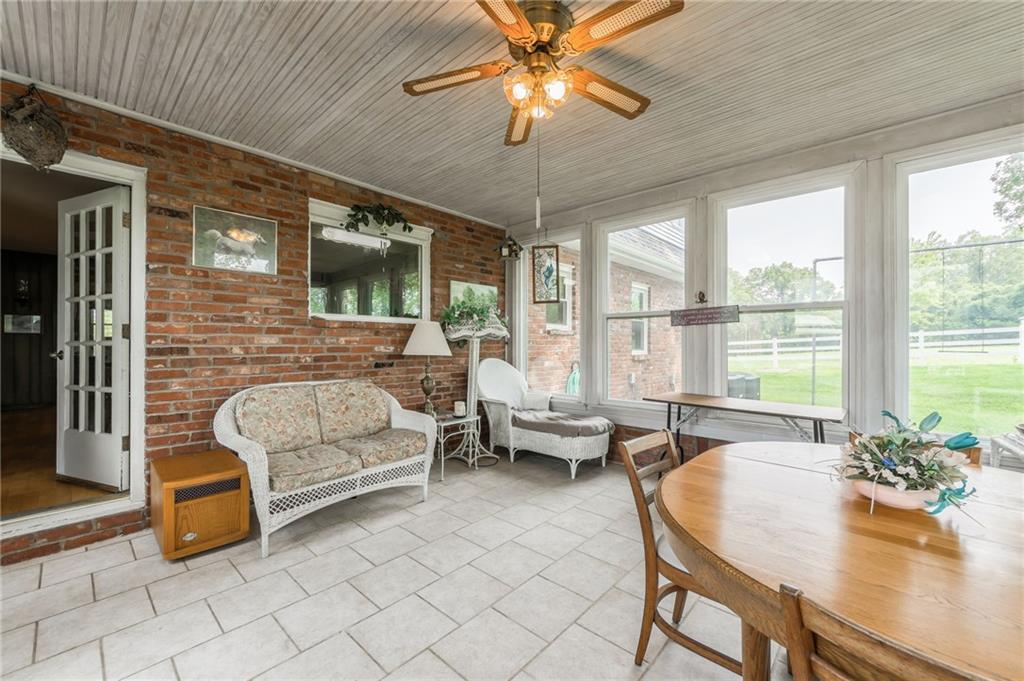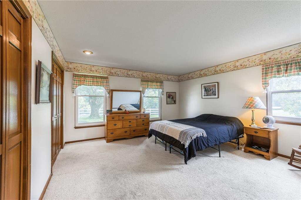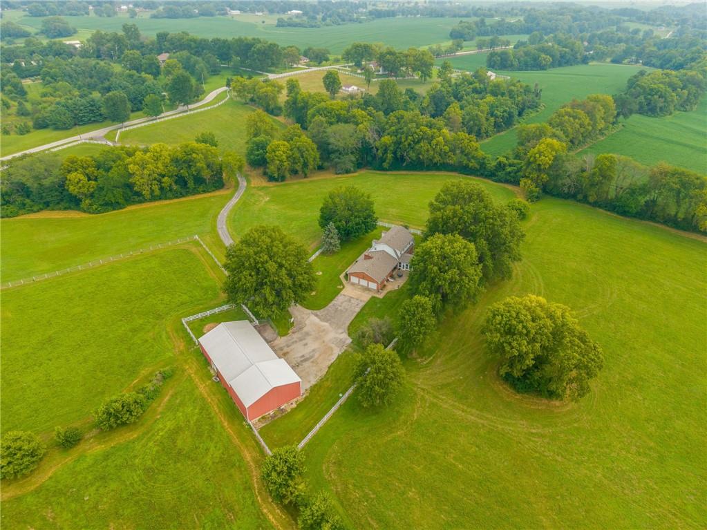 Welcome to a cherished family estate—built, lived in, and loved by the original owners for over 50 years. Nestled on 30 picturesque acres, this unique property offers privacy, beauty, and endless possibilities. As you approach via the long, curved asphalt driveway and pass through the gated entry, you'll instantly feel at home—you won’t want to leave. The spacious home features 6 bedrooms, 3 full baths, and 2 half baths, offering versatile living arrangements for families of all sizes. Main-level living includes a primary suite, an additional bedroom, laundry, office space, and a bright sunroom just off the kitchen—perfect for enjoying all four seasons. A large patio extends from the living room, ideal for entertaining or simply taking in the peaceful surroundings. Upstairs, you’ll find four generously sized bedrooms and two full bathrooms. The finished basement includes a wet bar, additional bathroom, and ample storage space. Enjoy fishing in your own fully stocked pond or simply watch the abundant wildlife from nearly every room in the house. The barn offers space for all your equipment—one side is newer and accommodates tractors, horse trailers, and more, while the original side once housed horses and cattle. A white vinyl fence lines the property frontage and encloses the area around the home, adding both beauty and function. While the home could benefit from some cosmetic updates, it’s solidly built and full of potential. Recently the home has recieved a new ROOF, new Windows and a new AC. This is a rare opportunity to own a truly special property—come see for yourself!