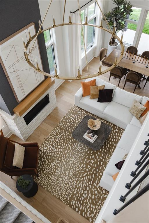 Modern & Convenient living in East Village of Leawood! Luxury Twin Villa Aspen plan, built by Oddo Construction, LLC. This stunning one and a half levels. Stunning 21-ft ceilings, a dramatic wall of windows, and beautiful high-end finishes create a bright, open, and elegant living space. The main level boasts a serene primary bedroom complete with flex room, perfect for work or relaxation. Upstairs, you'll find two additional bedrooms sharing a well deigned bath, offering comfort and privacy for family or guests. Designed with all the conveniences of Leawood, this villa show cases high end upgrades that cater to today's needs. This home is currently at sheetrock stage. Our office is open Monday - Saturday 11-5 and Sundays 12-5.