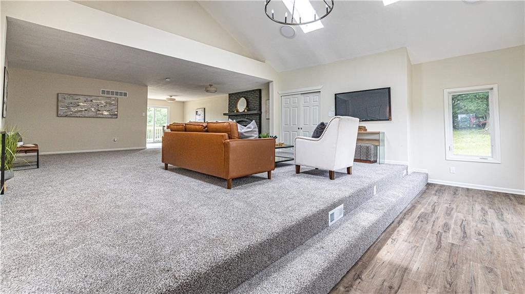 Completely renovated and move-in ready! This beautifully updated 3-bedroom, 3-bath home has been thoughtfully refreshed from top to bottom. Inside, you’ll find a brand-new kitchen with fresh cabinetry, updated bathrooms with modern vanities, stylish lighting, new flooring throughout, and fresh interior paint. Additional upgrades include two new garage doors, new interior doors, new sliding patio doors, a new deck, roof, and gutters—every detail has been carefully considered. The spacious primary suite offers plush carpeting, abundant natural light, and a modern light fixture for a touch of elegance. The private ensuite features fresh LVP flooring and a beautifully tiled walk-in shower, creating a peaceful retreat. Downstairs, the finished basement provides extra living space with brand-new LVP flooring, a cozy fireplace, and a full bathroom complete with matching LVP and a walk-in shower—ideal for guests or entertaining. Outside, enjoy the best of country living with a large 50x30 metal barn on a concrete slab and a serene, stocked pond perfect for quiet evenings or weekend fun. Raised Ranch on 2.76 acres.... what more could you asked for. Come view this beautiful, peaceful, country paradise!
