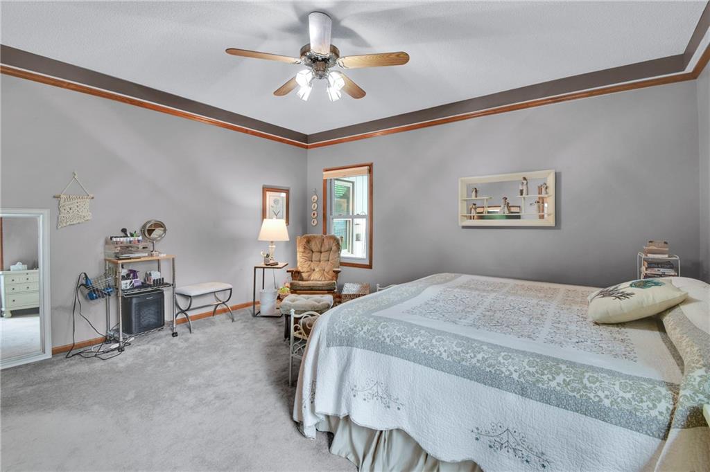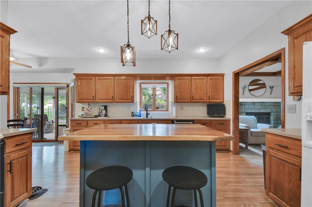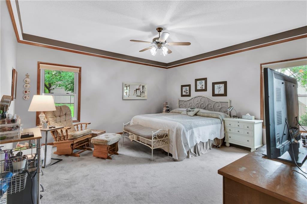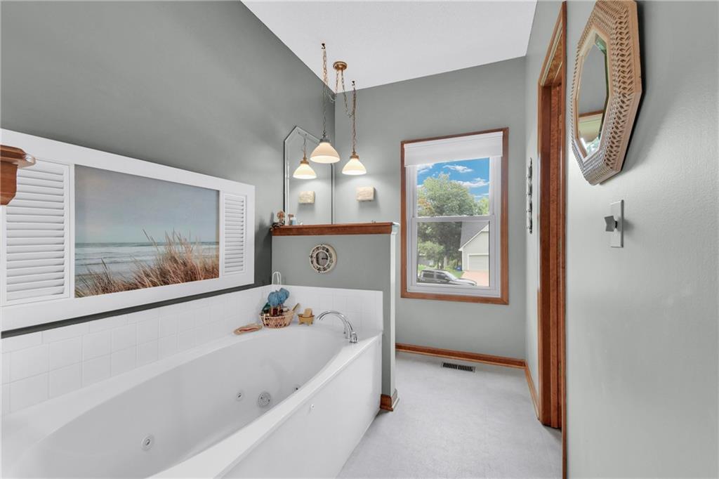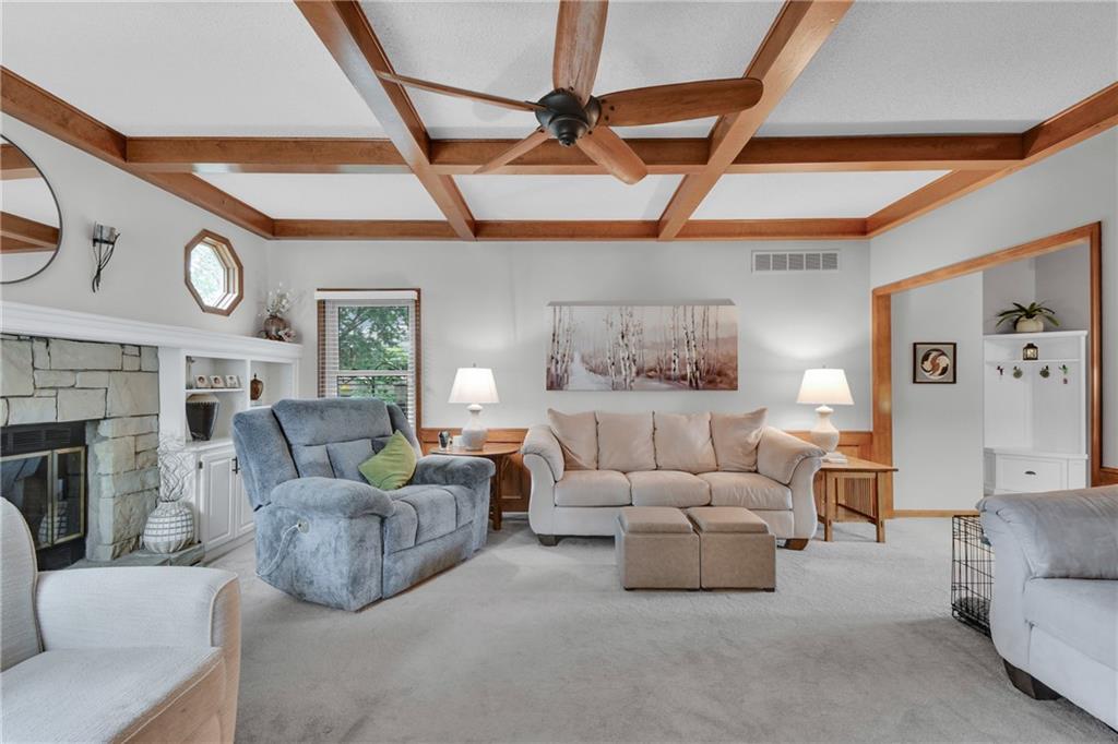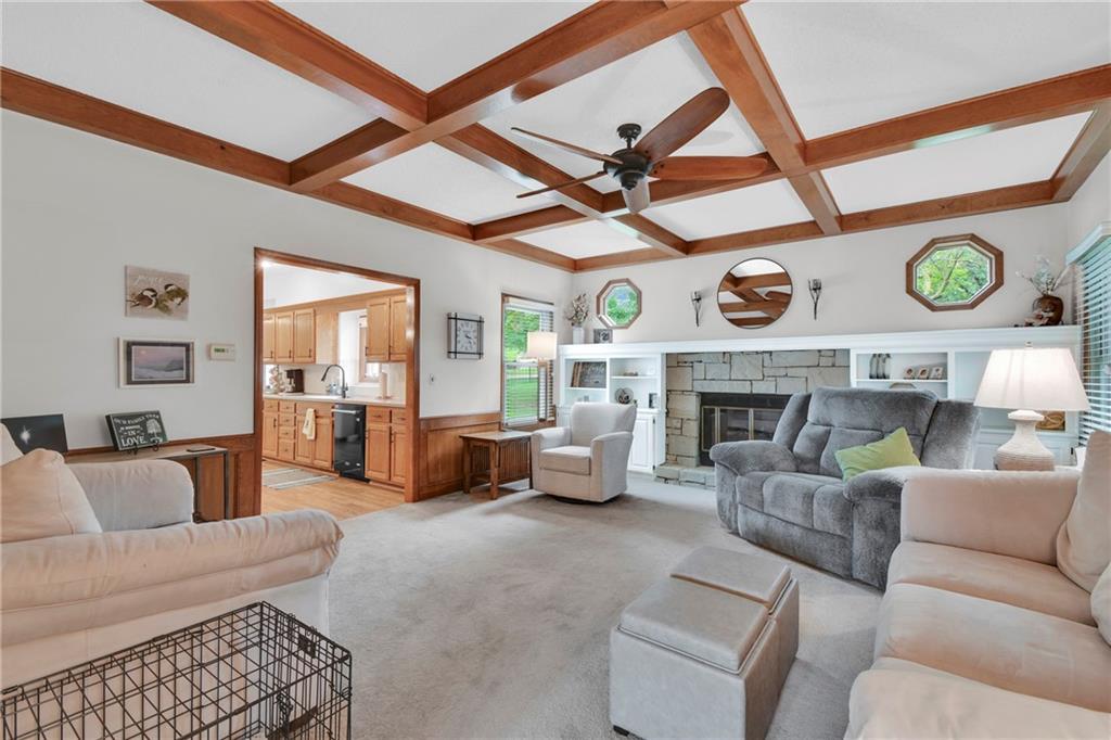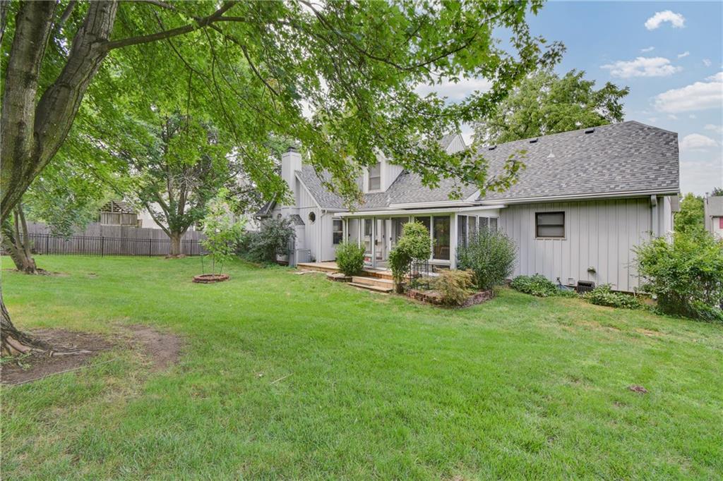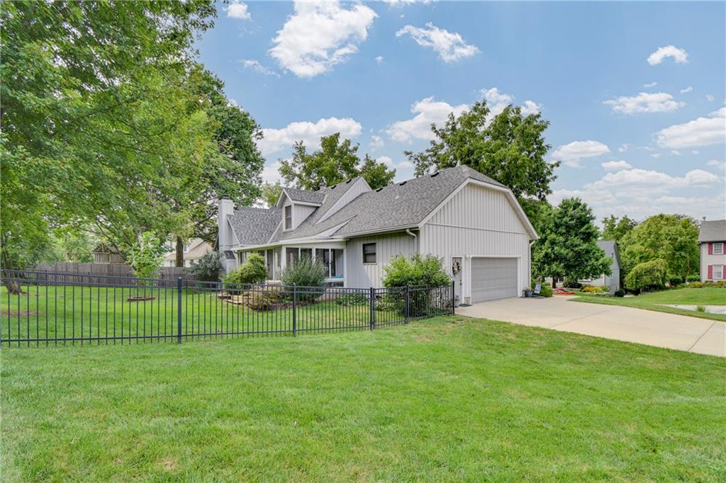 Charming 1.5-Story Home in Lee's Summit! Nestled in Remington Woods, this 1.5-story gem offers prime access to shopping, dining, schools, and conveniences. Blending comfort and style, it's perfect for families and entertaining. Enter an open, light-filled layout with a main-floor primary suite: en-suite bath featuring jetted tub, dual vanities, separate shower, and walk-in closet. The Great Room shines with coffered ceiling, built-ins, and fireplace. Flow into the Dining Room and Kitchen with ample cabinets and counters. Enjoy the sunroom off the breakfast nook, plus a large laundry with sink. Upstairs: two oversized bedrooms sharing a full bath. Finished basement adds a Rec Room, office with shelving, non-conforming 4th bedroom, full bath, and storage with garage access. Fenced yard with irrigation and vinyl siding for easy care. Timeless charm in a unbeatable spot! Buyer's Agent to verify all information including square footage, zoning, taxes & room sizes during the Inspection Period.