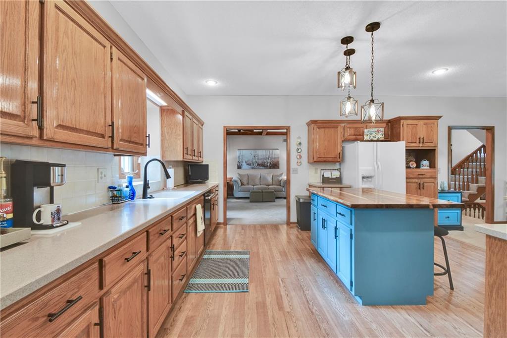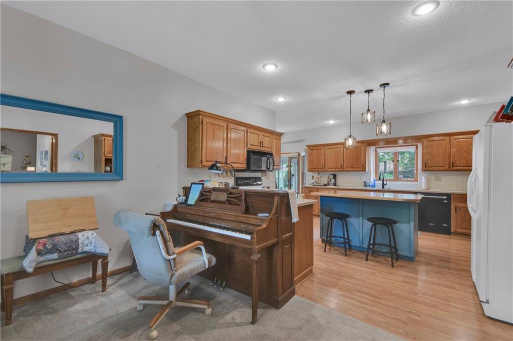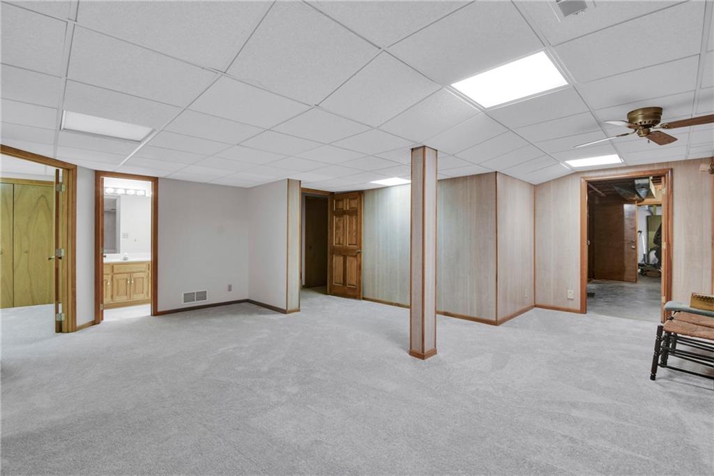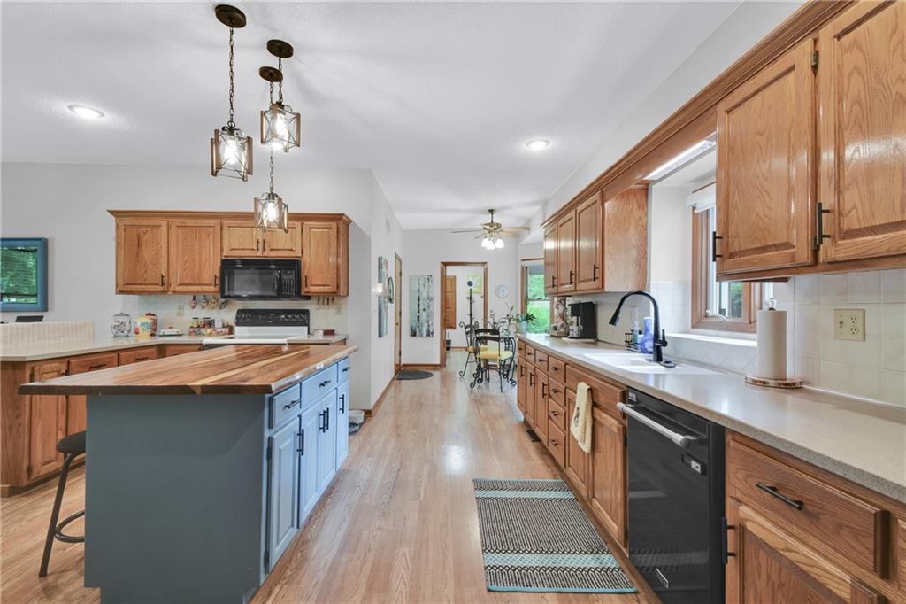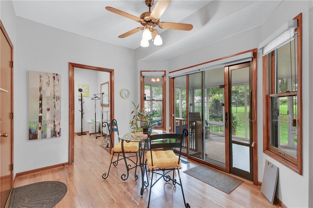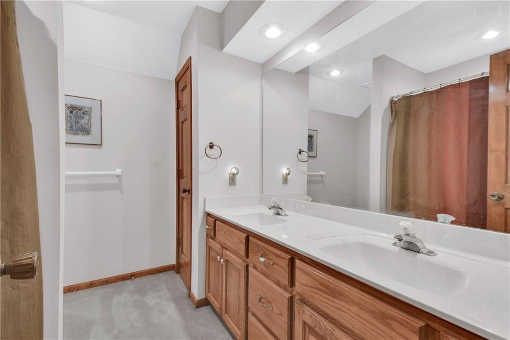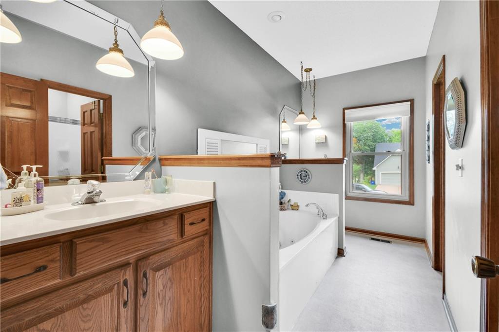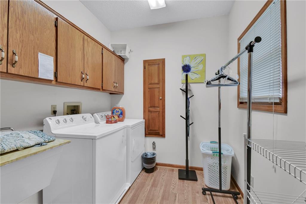 Charming 1.5-Story Home in Lee's Summit! Nestled in Remington Woods, this 1.5-story gem offers prime access to shopping, dining, schools, and conveniences. Blending comfort and style, it's perfect for families and entertaining. Enter an open, light-filled layout with a main-floor primary suite: en-suite bath featuring jetted tub, dual vanities, separate shower, and walk-in closet. The Great Room shines with coffered ceiling, built-ins, and fireplace. Flow into the Dining Room and Kitchen with ample cabinets and counters. Enjoy the sunroom off the breakfast nook, plus a large laundry with sink. Upstairs: two oversized bedrooms sharing a full bath. Finished basement adds a Rec Room, office with shelving, non-conforming 4th bedroom, full bath, and storage with garage access. Fenced yard with irrigation and vinyl siding for easy care. Timeless charm in a unbeatable spot! Buyer's Agent to verify all information including square footage, zoning, taxes & room sizes during the Inspection Period.