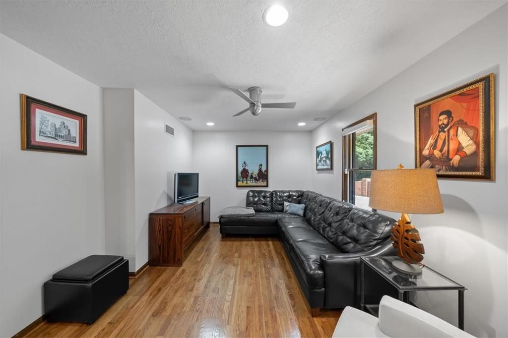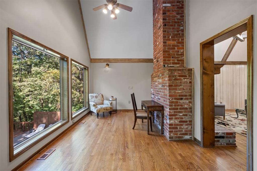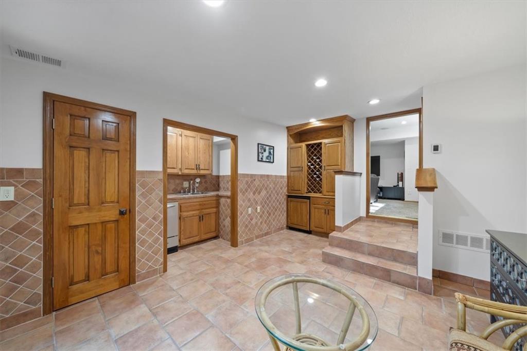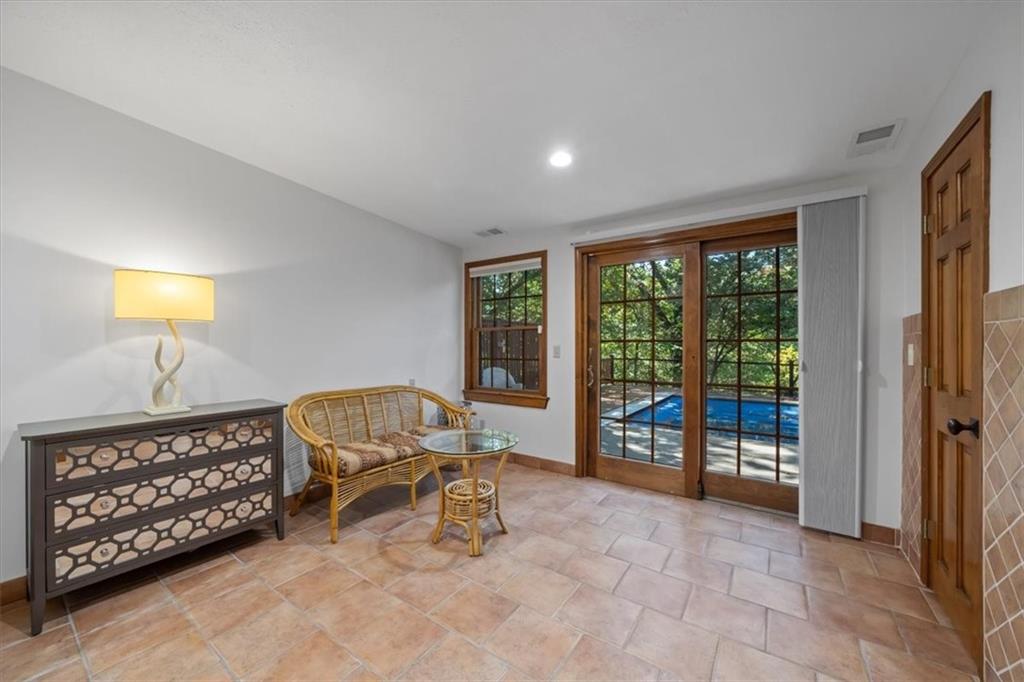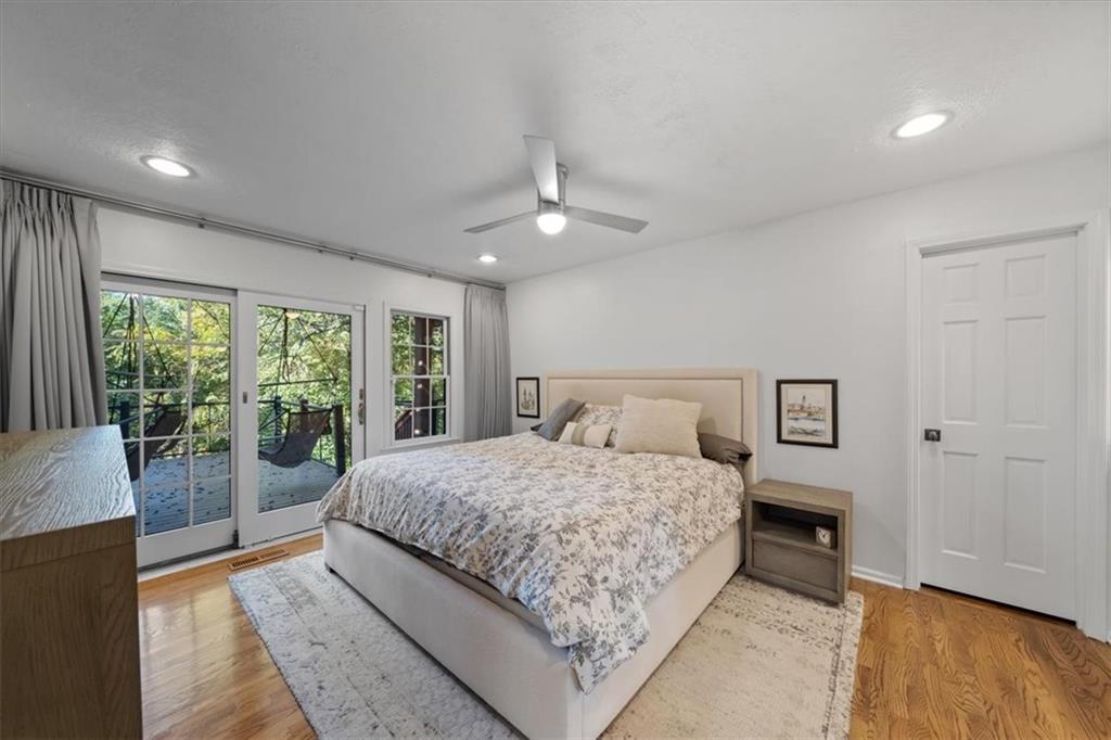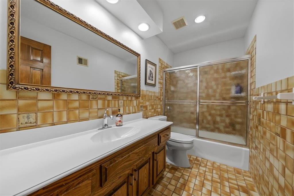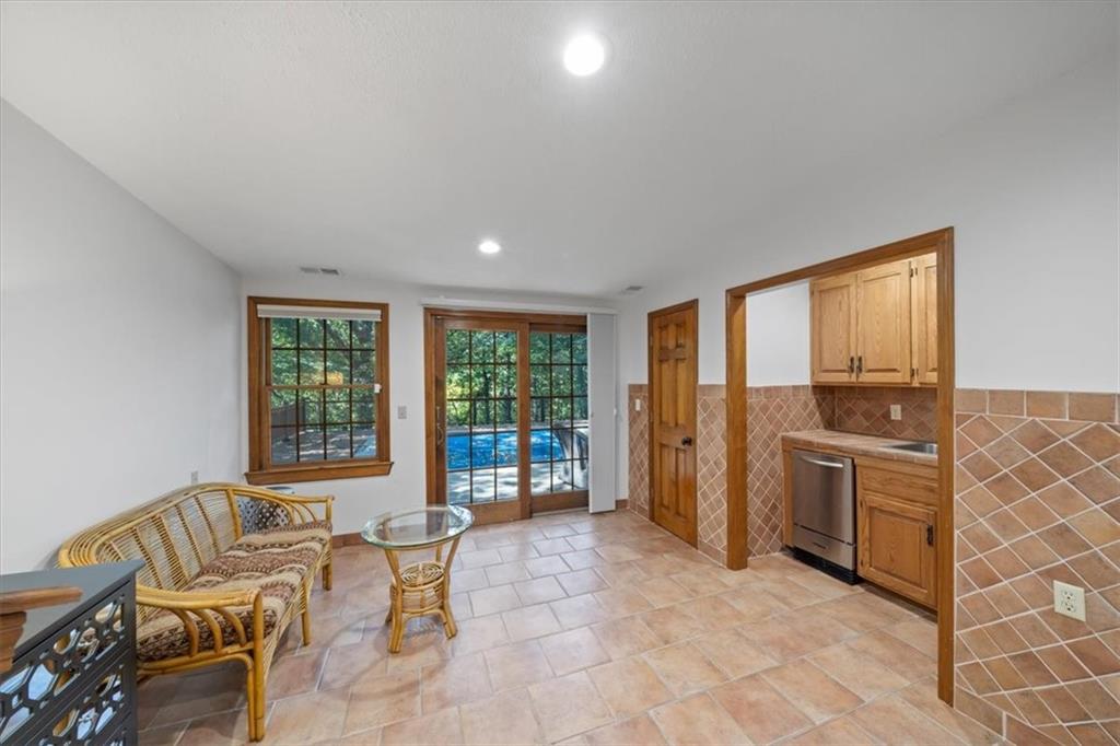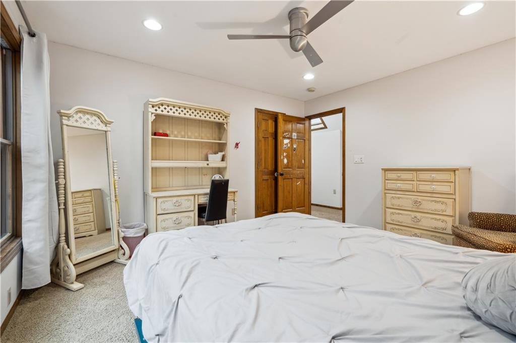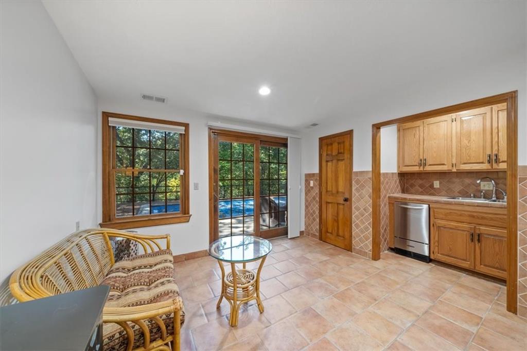 NOW INCLUDES ADJACENT LOT - NEARLY 1 ACRE IN SHAWNEE! Here’s your chance to own something truly special—nestled in nature’s beauty yet just minutes from downtown Shawnee! This custom-built 5-bedroom home sits on nearly an acre and offers beautiful curb appeal, extensive landscaping, and exceptional design throughout. The main level features a stunning great room with open-beam cathedral ceilings and a dramatic floor-to-ceiling fireplace, a main-level primary suite, and a spacious, fully equipped kitchen with a breakfast room, island, and eating bar. Additional highlights include a vaulted formal dining room, a flexible den/family room/office, and a light-filled sitting room overlooking the pool and sunsets. Wood floors and picture windows enhance much of the main level, bringing in warmth and natural light. Upstairs, you’ll find three generous bedrooms, a full bath, skylights, and abundant storage. The finished lower level is ideal for entertaining or relaxing, featuring a cozy fireplace, rec room, full bath, laundry area, workshop, and a fifth bedroom with a wet bar/kitchenette—perfect as a pool house or guest suite. Step outside from either the living room or primary suite to enjoy an al fresco meal on the low-maintenance deck, splash in the in-ground pool, sunbathe on the patio, or unwind on the tiered covered terrace. Dive into your private pool or take a refreshing swim in the lake—welcome to Black Swan, a hidden gem of a private lake community.