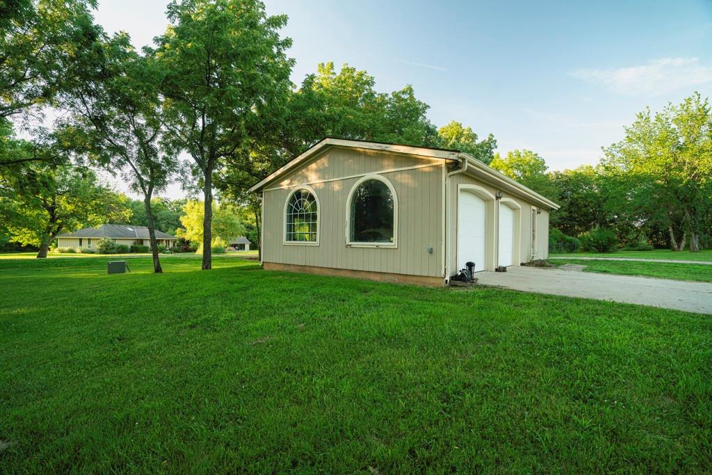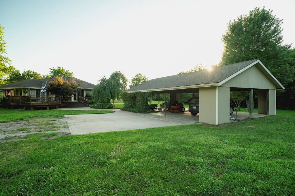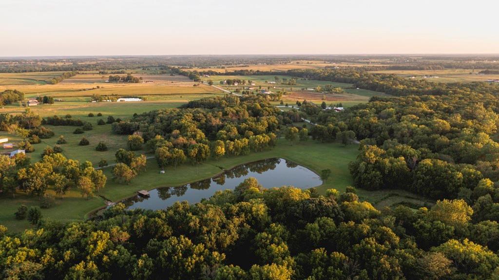 A beautiful 44 +/- acres of rural seclusion has come to the market in Franklin County, Kansas. This property has a gorgeous tree-lined driveway leading you to the home. The 44 +/- acre property comprises timberland, water features, hay pasture, and strategically positioned buildings. A substantial pond exceeding two acres provides opportunities for fishing and fun. A well-constructed wooden dock offers a space for relaxation. The pond also attracts geese and ducks. The northern boundary consists of dense woodland, featuring a variety of trees such as oak and walnut, which supports a population of whitetail deer and turkey for hunting. Walnut Creek traverses this section. The southern boundary contains scattered trees and a hay meadow, including a smaller pond.The home is made up of 4,250 square feet, including a 2,262 square foot main living area. Spacious and sun-filled living room boasting hardwood floors and oversized windows that invite an abundance of natural light, creating a warm and welcoming atmosphere. The spacious eat-in kitchen features tile flooring, abundant cabinet space, perfect for everyday cooking and entertaining. The master bedroom offers a relaxing retreat, a master bath complemented by a jacuzzi-style soaking tub. A newly renovated second bathroom showcases modern finishes. The large sunroom could be used for anything you have a vision for. The basement has 2 non-conforming rooms, concrete storage, and big closet. This home does not lack storage! The back deck, perfect for relaxing with a cup of coffee or entertaining friends, is constructed of Ipe Brazilian Walnut. This wood is known for its durability with minimal maintenance. The versatile 42x24 building offers a two-car garage and a fully equipped apartment, complete with a kitchen, comfortable living area, and full bathroom. A 36x24 three car garage is great for car enthusiasts or hobbyists. There are two 70'x30' lean-tos to store equipment and 3 loafing sheds ready for your hobby farm.