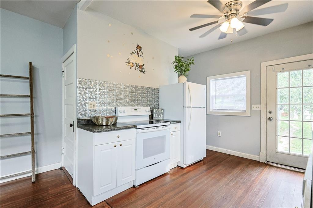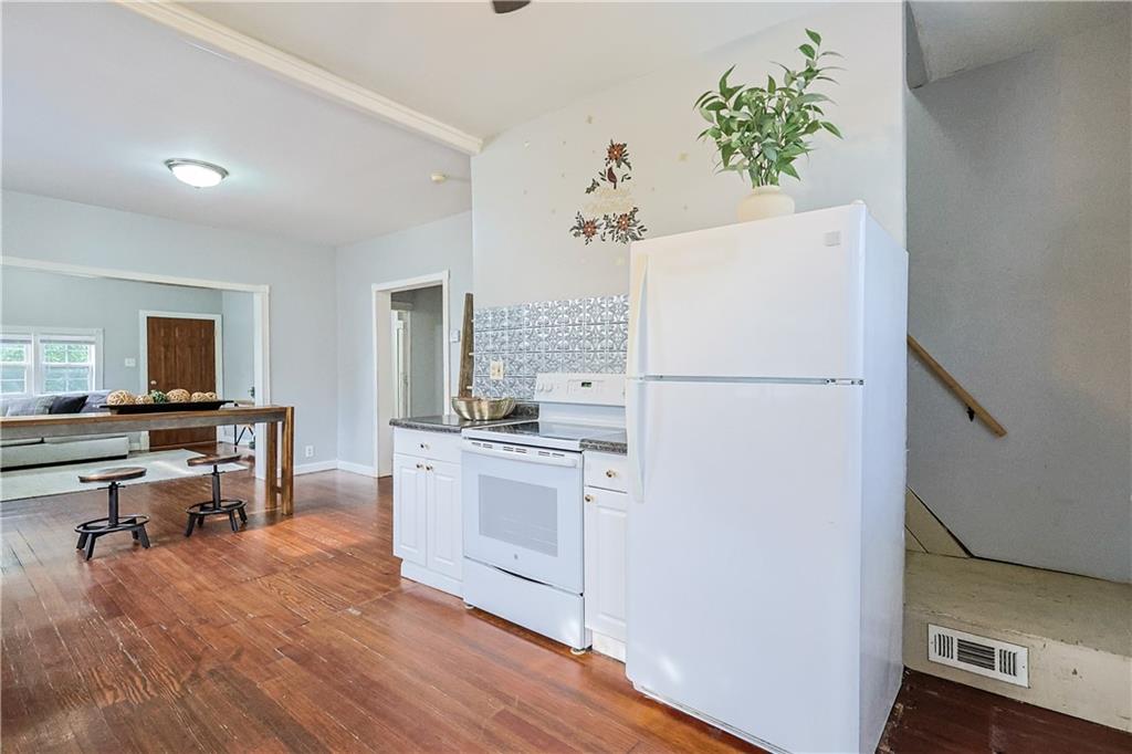 Charming bungalow nestled on a tree-lined street. This inviting home features beautifully refinished hardwood floors and a newer roof. Enjoy multiple parking spaces and a fully fenced backyard with a back deck—perfect for relaxing or entertaining. The kitchen comes complete with the stove, refrigerator, and dishwasher, making your move-in even easier. The kitchen seamlessly opens into the dining area, which leads directly into the spacious living room for an open feel. With three bedrooms, there’s plenty of space for everyone to feel right at home. Ideally located with quick highway access and just minutes from shopping, dining, and entertainment. Don’t miss your chance to see this one—schedule your showing today!