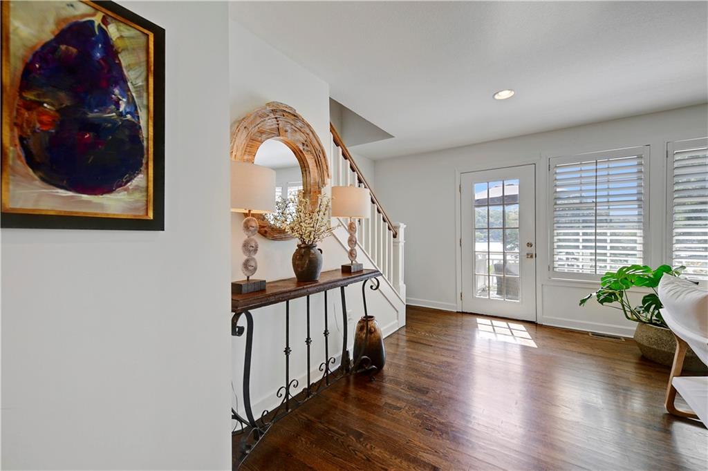 Wake up each day to the peaceful beauty of Lake Quivira in this thoughtfully renovated home on Lakeshore Drive. Ideally situated with direct access to your own private dock, this home offers an open-concept layout that blends comfort and functionality. The main floor features two bedrooms, while the upper level is dedicated to a sunny and spacious primary suite complete with skylights, luxurious bath and its own private deck and sweeping lake views. Throughout the home, gleaming hardwood floors set the stage for the beautifully updated chef's kitchen—highlighted by a striking, oversized island that's perfect for entertaining. Every space has been carefully curated with stylish finishes, creating a warm, move-in-ready environment. Step outside to a fantastic patio area, where an outdoor fireplace sets the tone for cozy evenings or lively gatherings. Or enjoy the sunrise across the lake while sipping coffee on the deck! The finished lower level adds flexibility with a family room, nonconforming fourth bedroom - ideal for guests, a home office, or a gym. Located in the secure, gated community of Lake Quivira, you’ll enjoy resort-style amenities including a private beach, clubhouse, fitness center, golf course, and tennis courts. This is more than a home—it’s a lifestyle designed for relaxation, recreation, and lakefront living.