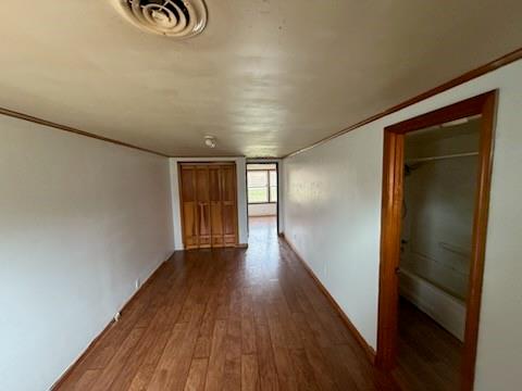 Empty room featuring hardwood / wood-style floors and ornamental molding