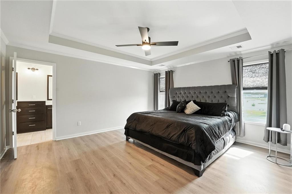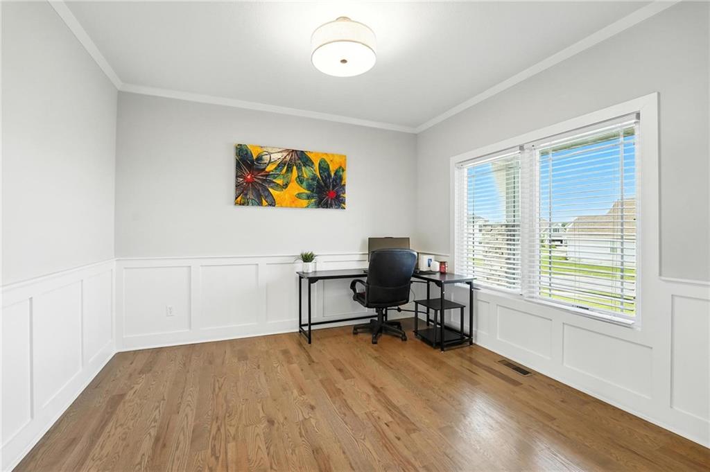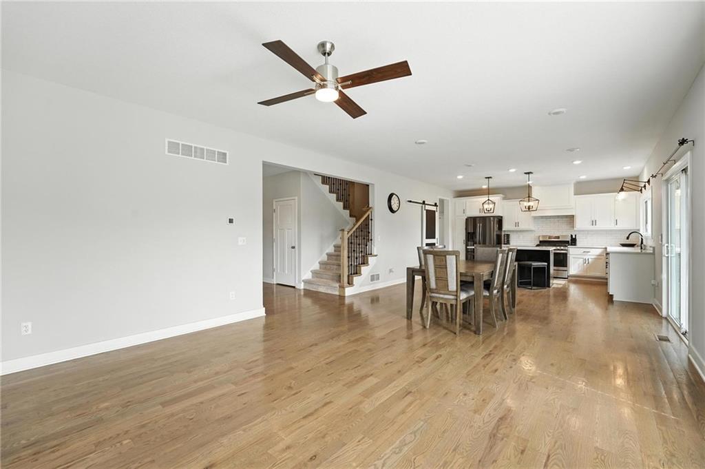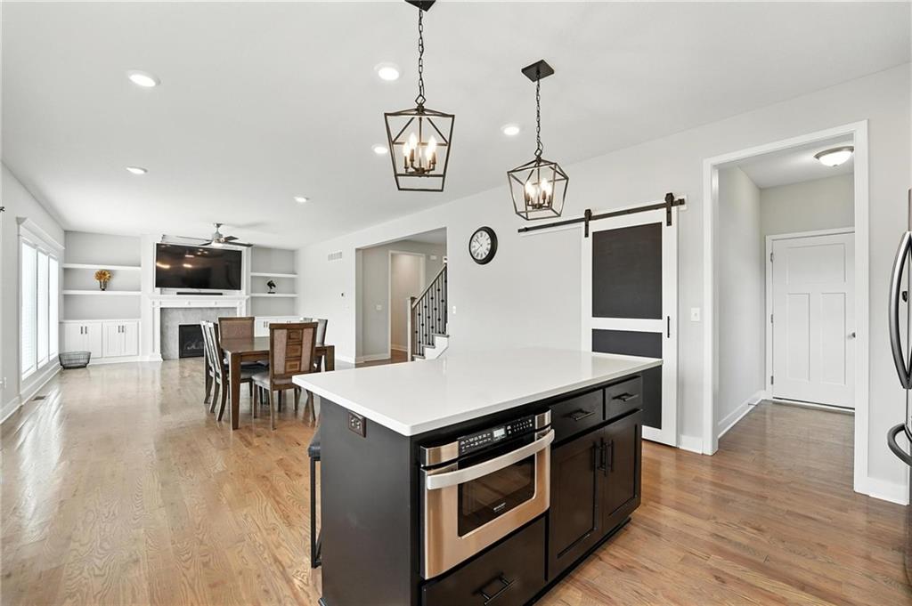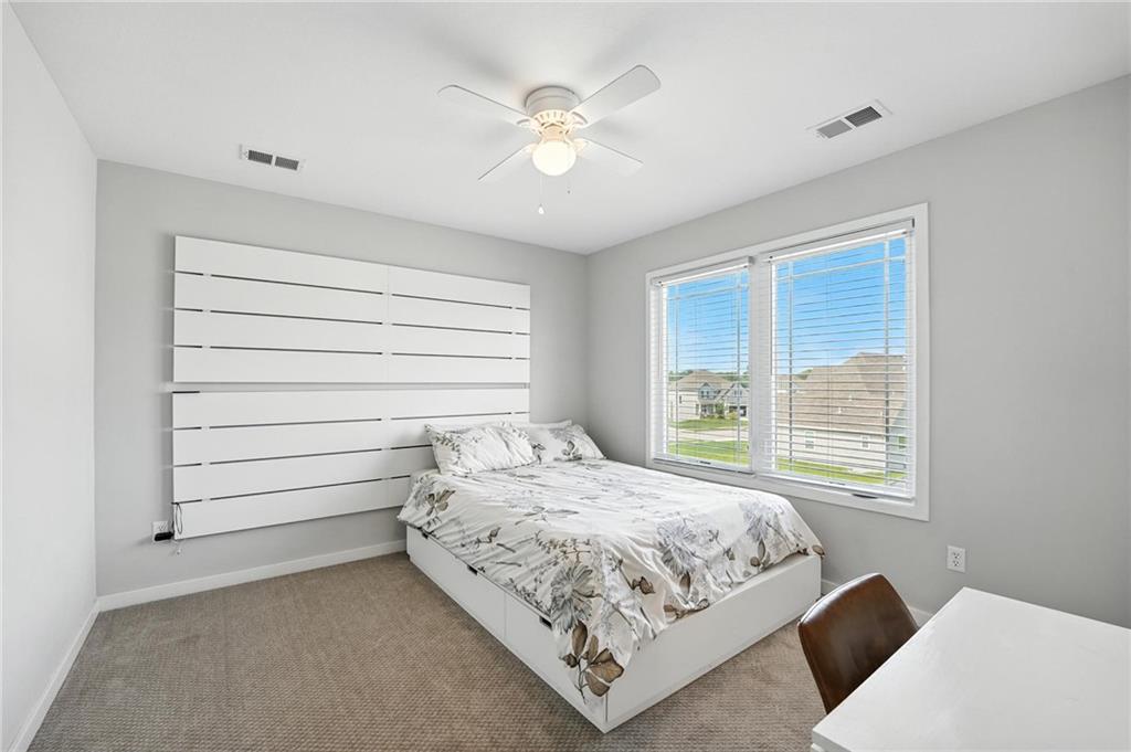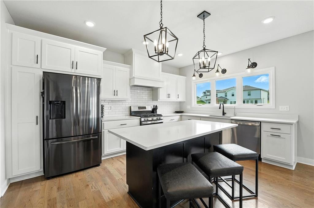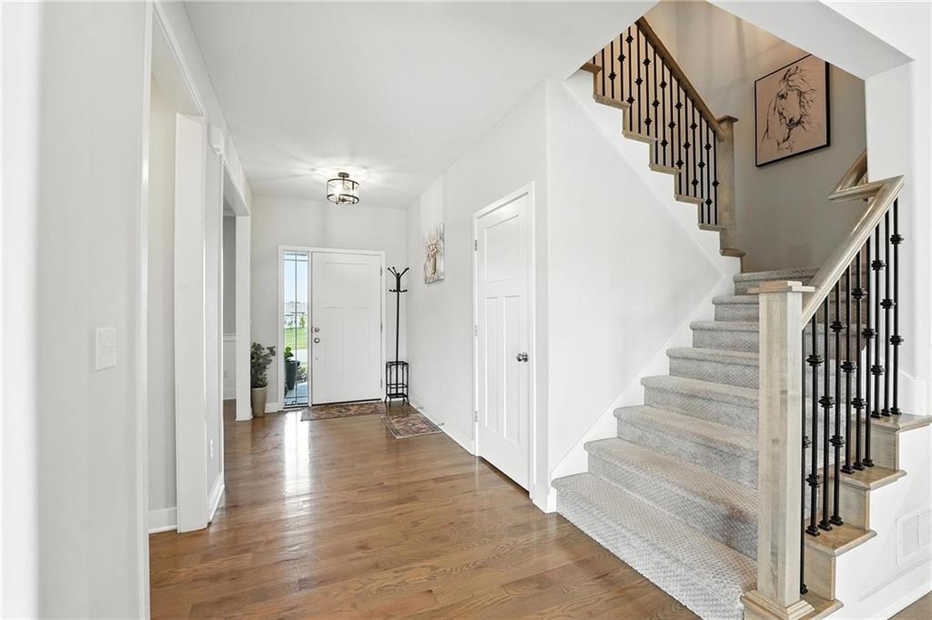 Built in 2021, this stunning 4-bedroom, 3.5-bath home blends modern design, luxury finishes, and thoughtful functionality. Step inside to find wood floors throughout the main level, an inviting great room with a gas fireplace and custom built-ins, and a dedicated office space. The chef’s kitchen boasts painted cabinets, a black granite sink, quartz countertops, a large island with built-in microwave, and a spacious walk-in pantry. The mudroom off the 3-car garage offers smart storage solutions. Upstairs, you’ll find all 4 bedrooms, including a serene primary suite with a spa-like bath featuring a soaking tub inside a glass-enclosed custom tiled shower area. Newer carpet enhances comfort and style. A large laundry room upstairs complete with ceramic tile flooring and a folding area with laminate counter. The finished lower level is made for entertaining, complete with a custom wet bar, recreation room with built-in projector, exercise room that could easily be used as a 5th bedroom, and full bath. Outdoors, enjoy an enclosed patio with ceiling fan, a large concrete patio for gatherings, and a sprinkler system for easy lawn care. HOA amenities include a neighborhood pool and walking trail. Located in the sought out Liberty School District, this home is close to shopping,dining and convenient highway access. ***New carpet being installed upstairs the week of 10/20/25***