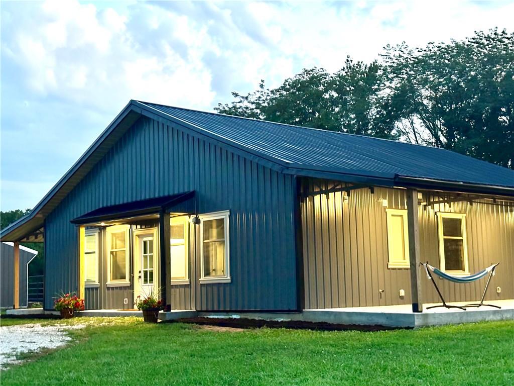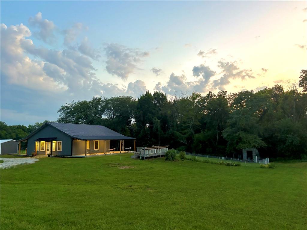 Motivated sellers--reduced $50,000 below appraisal--instant equity! Modern Minimalistic Homestead Living at its Best! Custom-built 3 bed (plus additional non-traditional areas), 2 bath home on 5.8 private acres at the end of secluded road in Higginsville, MO. This 2022 modern-country build features open-concept design, energy-efficient appliances and high-end finishes throughout. Enjoy expansive covered outdoor space perfect for entertaining or relaxing. Just 5 minutes from town with easy access to Hwy 13 and I-70. Key features • Custom 2022 build-modern homestead style • Private, end-of-road location •1,840 sq ft (1,200 main + 640 loft) • Open-concept design with spacious layout • Master en-suite with large shower • Covered outdoor living area •Energy-efficient systems & appliances • Whole-house built-in speaker system, including the outdoor patio • RV hookups with electric and septic Another 7.2 acres for sale under MLS 2568833. Taxes are estimated by 2024 rate.