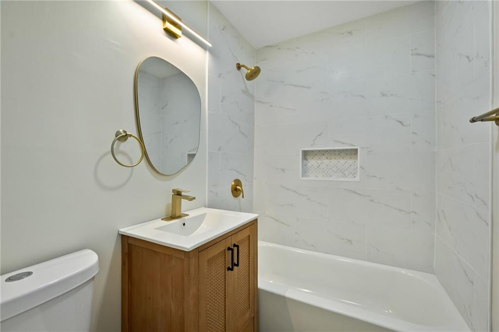 This thoughtfully updated ranch seamlessly blends classic charm with modern finishes, offering generous space for its next owner. The main level features three comfortable bedrooms and a beautifully renovated full bathroom, while the finished basement includes a spacious recreation area and a non-conforming fourth bedroom—ideal for guests, a home office, or a private retreat. Warm, refinished hardwood floors add timeless character throughout the main living areas, and the kitchen shines with brand-new quartz countertops that balance functionality and style. Outside, the expansive lot offers endless opportunities for entertaining—whether it’s kids, pets, or guests enjoying the open space.