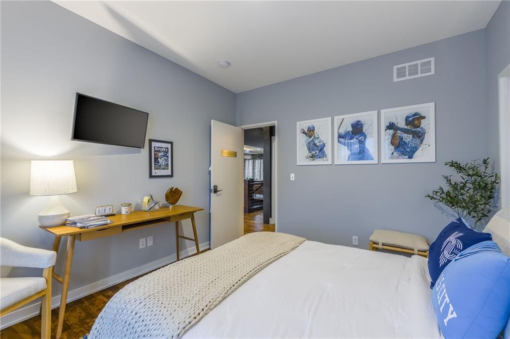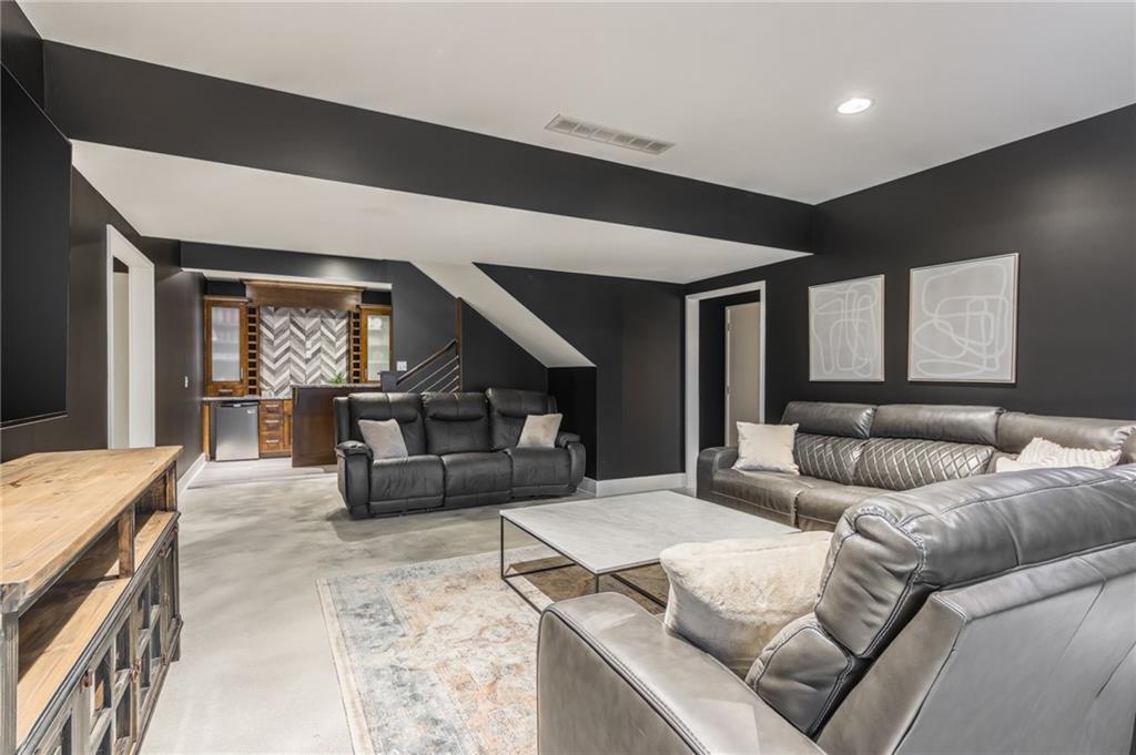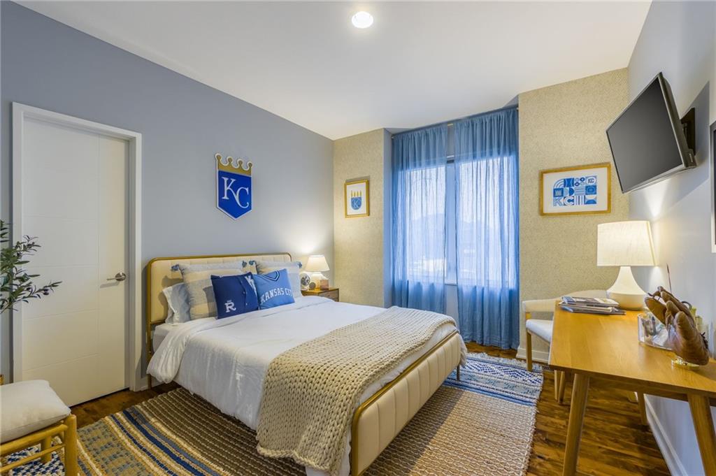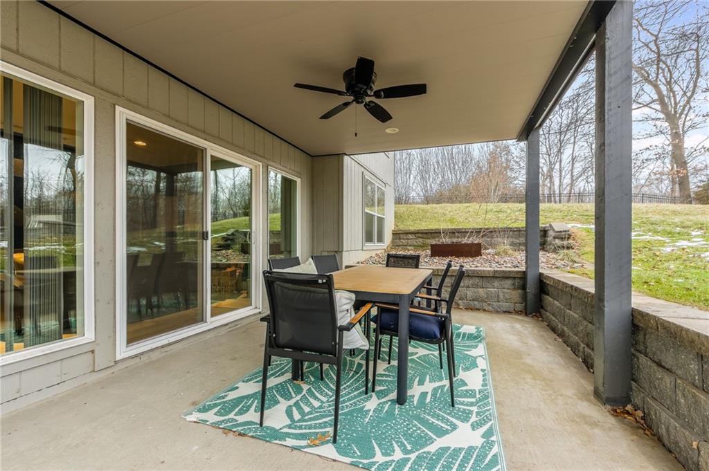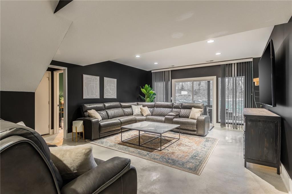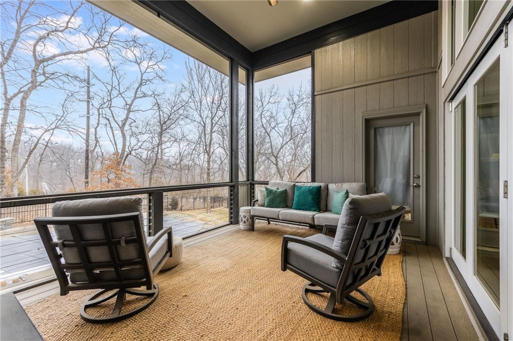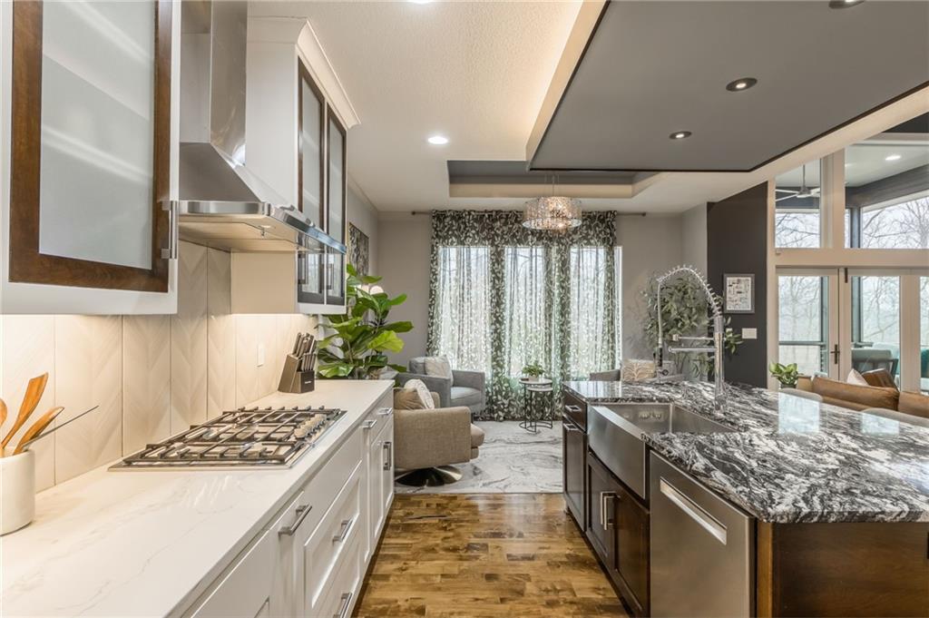 OUTSTANDING, Reverse 1.5 Story is nestled in Overland Ridge in Kansas City North. This fine home provides open living spaces with 4 bedrooms (2 on the main floor and 2 on the lower level) & 4 bathrooms, large kitchen meant to please the finest of cooks, custom cabinets, expansive granite breakfast island, deep stainless sink, Bosch range, oven, dishwasher and a walk-in pantry complete the kitchen. The dining area flows directly from the kitchen to the living room with 14 ft. ceilings, beautiful maple wood floors with a folding wall of windows opening to a screened in deck with fireplace with views of the in ground pool. The Owner's bedroom offers a large window also overlooking the private pool and backyard. The Primary bedroom has it's own access to the screened deck-- the master ensuite holds a wet room with a combined sunken jetted tub and shower, double bachelor height vanities, large walk-in closet that connects to the laundry. Designed for comfort and entertaining, the lower level has a tv area, wet-bar with tiled backsplash. You can take a break from the day by walking out to the patio. Other Amenities include recessed lighting, chandeliers, granite counters, 3-car garage, 2 gas fireplaces and large storage area. Overland Ridge neighborhood is conveniently located near interstates, shopping venues, health care facilities, restaurants, gyms, schools, parks, evening entertainment and the KCI Airport.