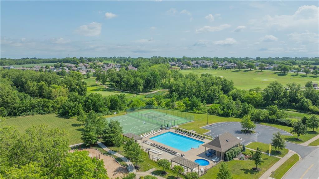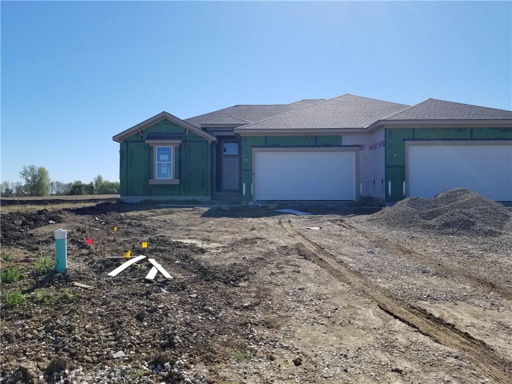 Highlands Lot 25L - The Kendyl by New Mark Homes. Enjoy GOLF COURSE LIVING and care free living in this luxury paired villa hom. HOME UNDER CONSTRUCTION. Estimated completion 1Q2026. Finished photos and tour are of a previous model. Beautiful open plan with primary suite located on the main level. Primary bath has tiled shower, dual vanities and generous 10 1/2' by 9' master closet with laundry connected! Home has 9' and 10' ceilings, an office, a covered patio, and a gas fireplace. Finished lower level includes a rec room, bedroom, and a full bath. HOA provides lawn and landscape maintenance, snow removal, and replacement of roof, gutters and paint as needed. Neighborhood pool, play area and basketball and pickleball/tennis courts included as well. Excellent schools, good highway access for easy commute to all parts of the city! 10 minutes to The Legends and 30 to the airport, downtown and Lawrence!