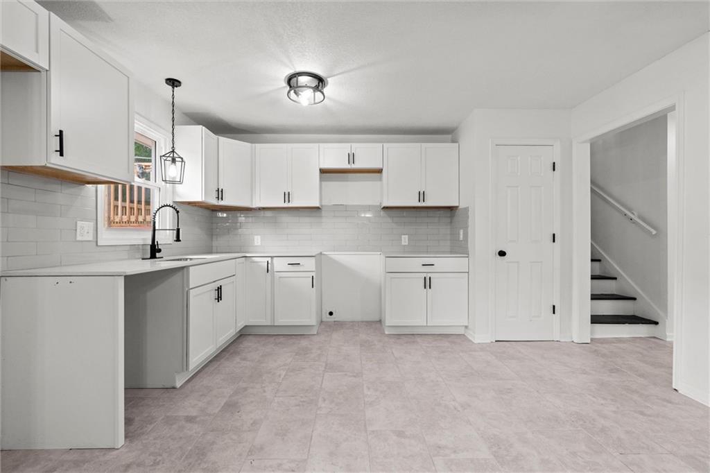 This home features a brand new kitchen with white cabinets, modern fixtures, and plenty of counter space. Fresh carpet in the finished lower level, updated bathroom with double sinks and walk-in shower, and new railing and spindles on the large deck. Spacious bedrooms, bay window in the living room, and flexible basement space with fireplace. Seller is willing to mudjack or repair the patio with an acceptable offer. Convenient to parks, schools, shopping, and highways. Move-in ready—schedule your showing today!