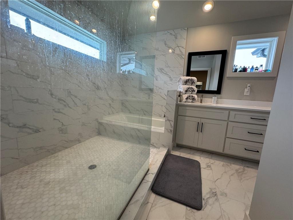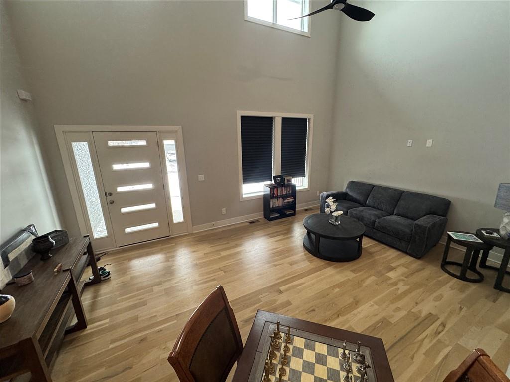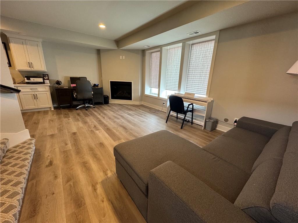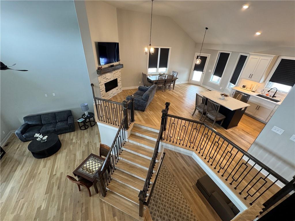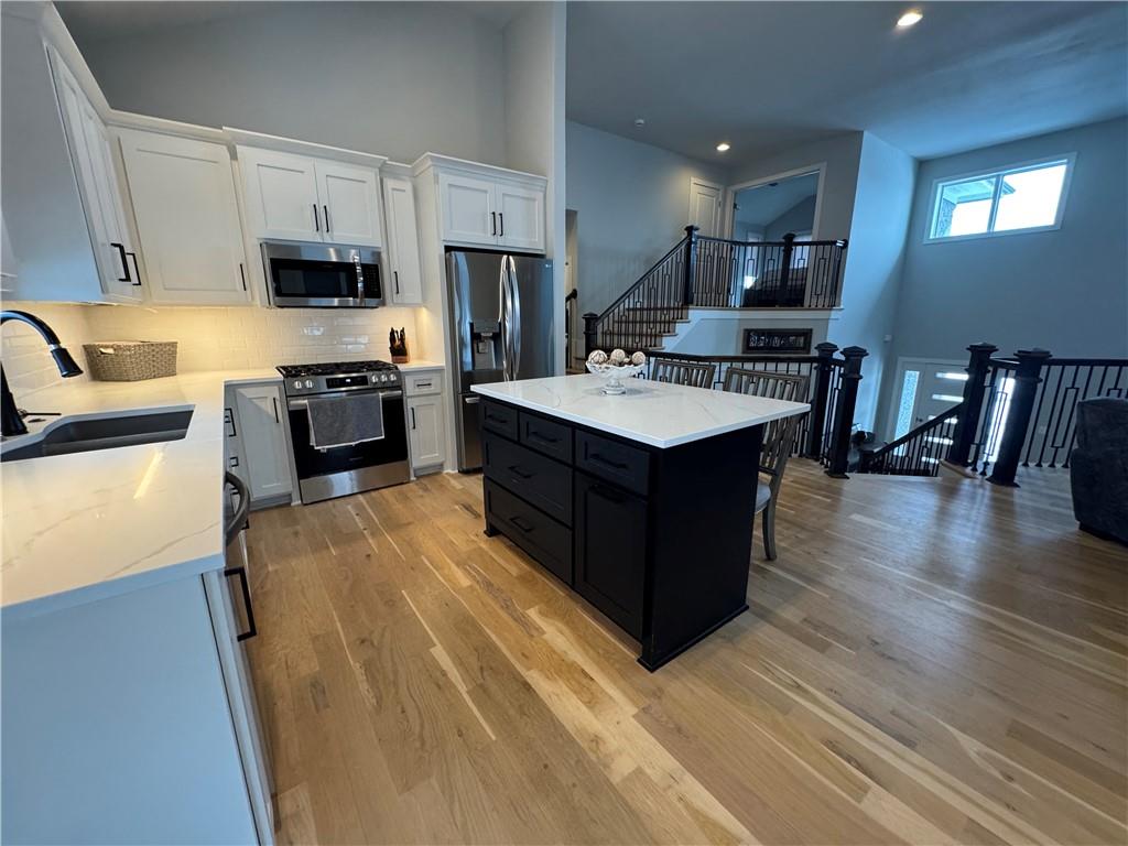 BEAUTIFUL TREED BACKYARD! VAULTED CEILINGS WITH OPEN FLOORPLAN..LIGHT AND BRIGHT WITH WALL OF WINDOWS. MODERN TWIST WITH THIS SPACIOUS FLOORPLAN. STEP UP INTO A PRIVATE PRIMARY SUITE WITH OWN FLOOR LEVEL BOASTING HUGE AMAZING CLOSET AND PRIVATE BATH WITH TILED WALK IN SHOWER, DBL VANITY. UNIQUE AND OPEN. COME CHECK IT OUT! HEARTH FIREPLACE OFF KITCHEN AND DINING AREA OVERLOOKING THE GREAT ROOM. ADDITIONAL 2ND F/P IN LOWER LEVEL WITH AMAZING WINDOWS WITH VIEW OF THE TREES! HURRY! DON'T MISS AN OPPORTUNITY TO OWN ACROSS FROM LAKE LENEXA. MOVE IN READY!