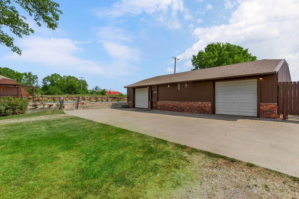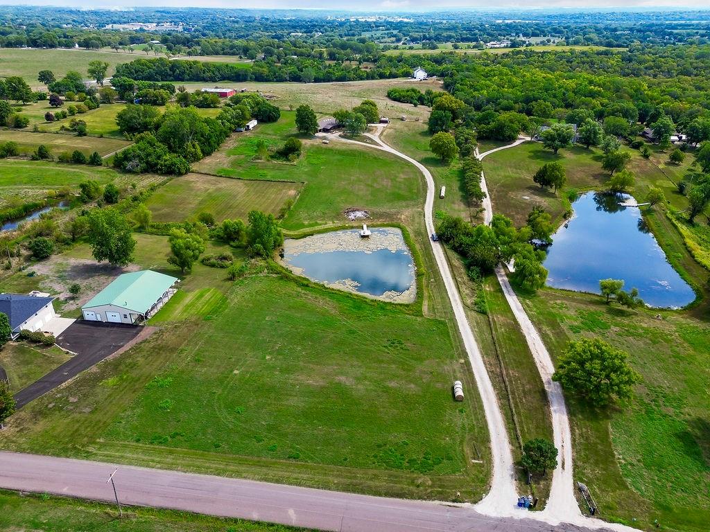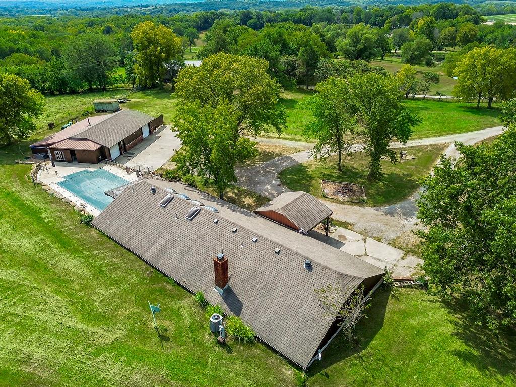 Welcome to your dream retreat—an earth-contact home on over 7 stunning acres in the award-winning Basehor-Linwood School District. Tucked at the end of a long private driveway off a paved road, this property offers the perfect blend of comfort, space, and privacy—all while being minutes from town with easy highway access for a quick commute. Enjoy the serenity of country living without sacrificing convenience. Inside, you’ll find 3 bedrooms, 2 full bathrooms, an open-concept living area, and a versatile flex room ideal for a man cave, craft space, or home office. An attached garage adds everyday ease, while the large shop is a dream space for all hobbies, offering endless potential for projects, storage, or workspace. This home is move-in ready with recent upgrades including a new roof, HVAC system, water heater, and appliances, providing peace of mind and modern comfort. Step outside to a breathtaking covered patio, perfect for relaxing, entertaining, or watching sunsets over the peaceful landscape. The in-ground pool offers a private oasis for summer fun, while a picturesque pond with a dock at the front invites fishing, kayaking, or quiet reflection. Mature trees and a greenhouse complete the outdoor space, blending natural beauty with functional charm. Whether you're entertaining guests, working on your passions, or enjoying the quiet of rural life, this one-of-a-kind property offers it all—privacy, convenience, and unforgettable views.