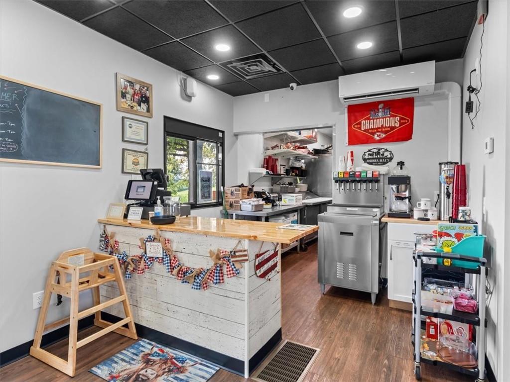 Opportunity Knocks! This nearly-new restaurant and drive-thru (just 1 year old) is perfectly positioned right off the interstate—surrounded by busy gas stations, storage facilities, and a steady stream of both locals and travelers. With constant visibility and built-in traffic, it’s the ideal spot to launch or grow your food business. Fully equipped and ready to go, the space includes all furnishings and kitchen equipment (unless otherwise requested), so you can start serving customers immediately. Designed for efficiency and charm, this location works for both seasoned restaurateurs and first-time owners. Indoor seating up to 16 and outdoor to 20. The deck is also easily ready to upgrade to a 4 seasons room for seating in the cooler months.