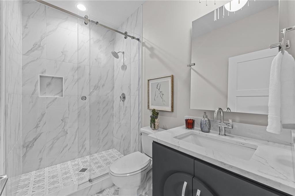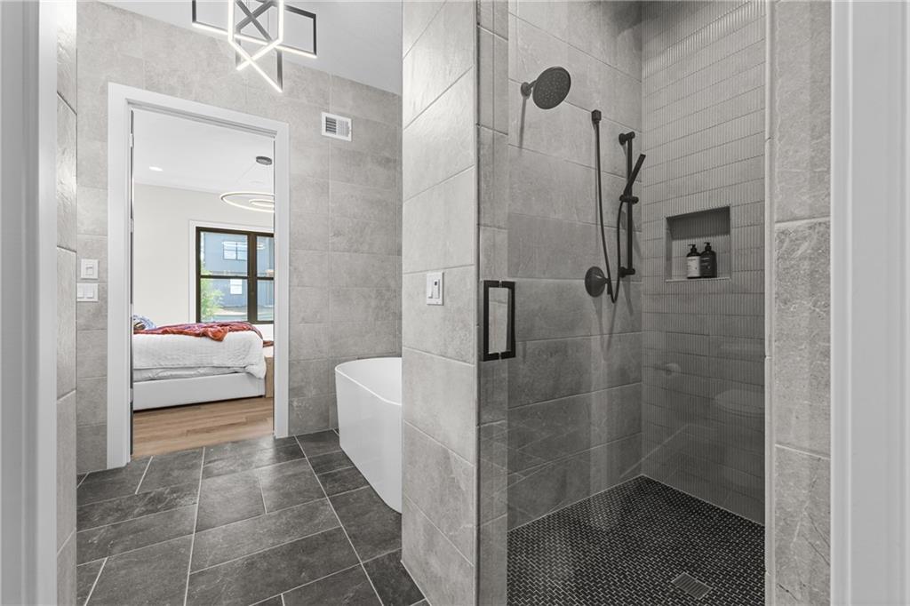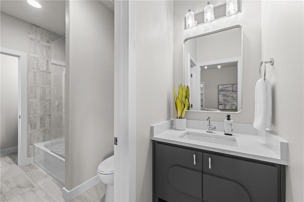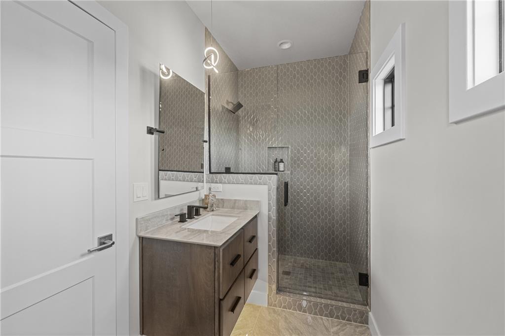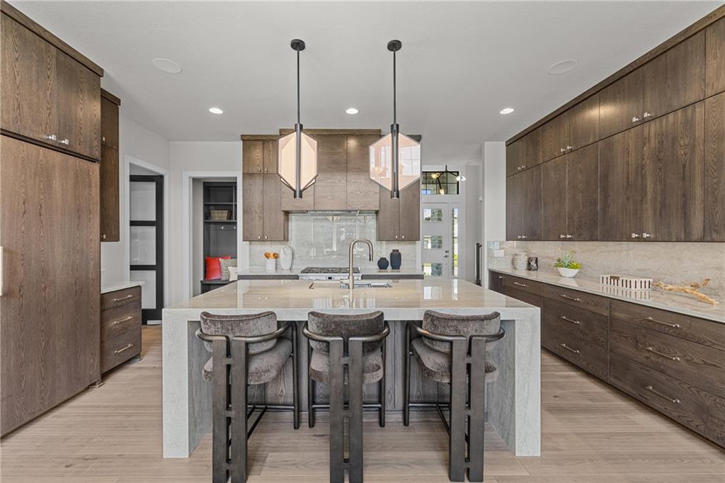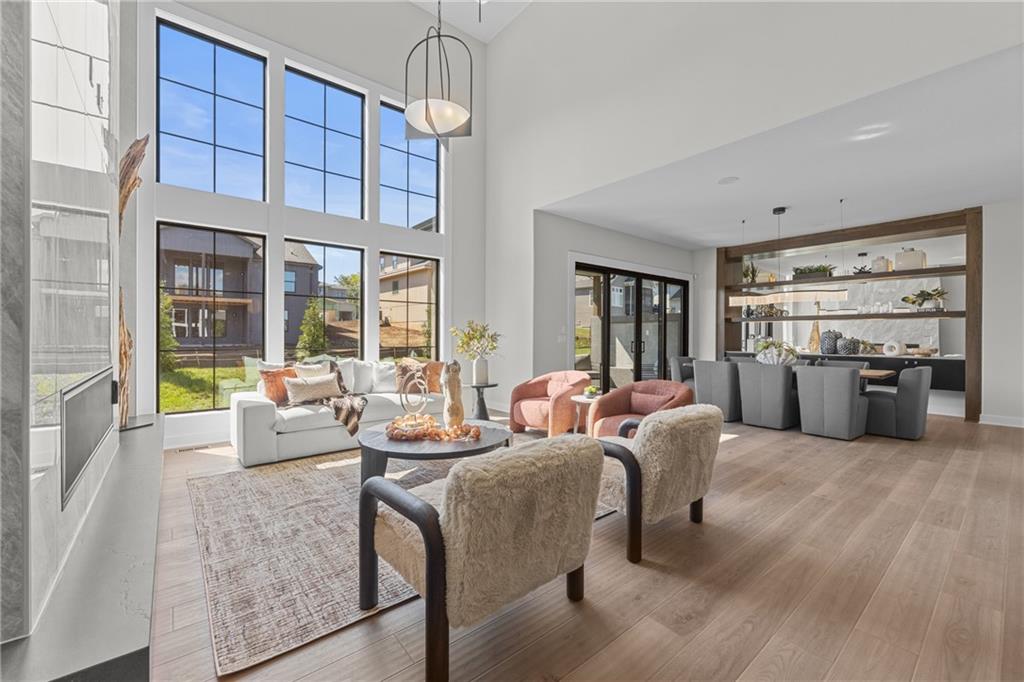 This new 1.5 Story Birmingham II plan by SAB HOMES is READY to tour!! This spectacular new MODEL HOME is an impressive mix of modern sophistication loaded with premium new upgrades. This home offers 3 levels of finished space at just over 4600 square feet. As you enter, this plan features a soaring two story ceiling, fantastic new modern lighting, two story great room with floor to ceiling tile fireplace with floating hearth and black linear fireplace. The spacious dining room showcases a sophisticated accent wall with mirrors and floating shelves and a double slider door to access the covered 17' x 10' tiled patio. The butlers pantry has an extra MOEN sink, water bottle filler and glass swing door to Chef's kitchen with premium CAFE appliances and DEKTON waterfall island and backsplash. Explore the main level primary bedroom with tile headboard accent wall with mirrored walnut side trim, spacious bath with freestanding tub and large closet. There are four bedrooms up plus a loft space at the landing ideal for upstairs game room or craft room. There is a space for everyone in this home with three floors and 5 bedrooms. The lower level offers 1339 sf of additional finished space ideal for entertaining or exercising with a whiskey wall bar with mirrored tiles and floating shelves, fitness room with double glass doors and Finnleo Sauna, full bath, and theater room. Don't miss the extra features including a guest bath backlit rock wall, extended 3rd car bump out for extra storage, split 3 car garage, real stone trim, large front porch, tiled front porch and patio TV wall. Come join the fun in Century Farms, a unique one of a kind upscale new home community in Overland Park. Century Farms has a spectacular clubhouse with a fitness center, resort style swimming pool, two pickle-ball courts, kids play area and community garden. It's located near the new Bluhawk shopping center, Heritage Park and the OP Arboretum. BLUE VALLEY SCHOOLS