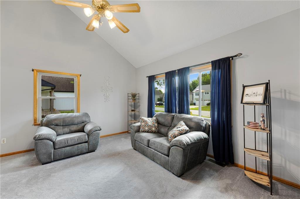 Come check out this wonderful home with many updates including new carpet, new radon system installed, newer water heater, double pane tilt-out windows & roof with transferable warranty. Walk right into the Great Room with soaring ceilings, a fireplace, new carpet & large windows for tons of light. The kitchen features new stove (never used), new garbage disposal, island, refrigerator staying & pantry with the dining room off the kitchen. The laundry room & half bath round out the main floor. Throughout the house there is new carpet & paint. Master bedroom with ensuite bath, ceiling fan & walk-in closet. Outside is a large deck off the dining area fantastic for grilling or gathering with friends & family. Also in the yard is a shed for additional storage and fenced in backyard. Fantastic location & neighborhood within walking distance to the schools, park & walking trails. Motivated seller so come check it out!