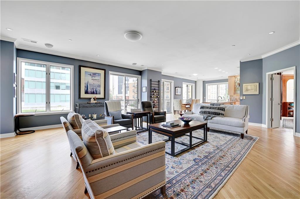 SOPHISTACATED AND STYLISH TOWNSENDS PLACE CONDO WITH PANAORAMIC VIEWS OF THE PLAZA & DRAMATIC 9"4" CEILINGS. Walk into this gorgeous, spacious light and bright condo that has been lovingly re-designed with timeless details & quality finishes thru-out! This Masterpiece is equipped w/recesses Lutron lighting, electronic shades and gleaming white oak flooring. Breathtaking floor to ceiling glass sliding doors lead to the expansive deck ideal for al fresco dining or just relaxing (custom water wall /feature included) The Chefs Gourmet Kitchen is cheerful and comes equipped with a large granite island, custom maple cabinetry with soft close drawers, Sub Zero fridge, high end 5 burner gas cooktop, Euro vent a hood + corner pantry with custom shelving. The relaxing owners suite has French doors leading to a private balcony. The SPA like primary bath has heated tile floors a large frameless enclosure to the walk in shower, double vanities, large soaker tub and walk in closet with organizing system. The gracious great room can be found off the inviting dual door entry and is big enough for large gatherings or you can cozy up to the handsome fireplace. Laundry and bath can be found flanking the 2nd bedroom/study. This library / 2nd bed has rich wood paneling, a handsome fireplace and useful Murphy bed for guests. The pocket office faces the entry and allows space efficiency and functionality with a pocket door for privacy and ample shelves and storage for great space utilization. A truly amazing opportunity to live in the heart of The Country Club Plaza just steps from exquisite shopping and dining! Amenities include bellman, workout room, sauna, and banquet room with kitchen! Unit includes 2 parking spaces and storage locker in the private underground garage.