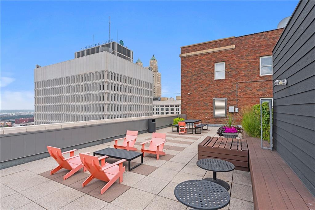 If you've ever dreamed of living downtown this your chance. This is a rare opportunity to own a beautiful condo in the Library District. Originally the New England National Bank Building, this 53-unit boutique residential building is conveniently located a block from the streetcar. This spacious 1 bed 1.5 bath has exceptional north views, with windows bringing in an abundance of natural light. Polished concrete floors, fresh interior paint, and 10' ceilings set the stage for your urban oasis and ensure quiet, peaceful living. The kitchen boasts modern wood cabinets, granite counters, a huge island and new stainless-steel appliances. It opens to the spacious and flexible living space with infinite configurations for entertaining and even a home office. This unit also has full sized washer and dryer in the pantry. The 360-degree rooftop terrace has unbelievable views from the downtown airport to Liberty Memorial. One parking space is included in the HOA dues in the secure library parking garage. Additional spaces can be leased. Perfect for a primary residence or a wonderful pied-a-terre. This condo is within walking distance to some of the city's amazing restaurants and attractions, including the Kauffman Center for the Performing Arts, the T-Mobile Center, the Midland Theater, the River Market, Crossroads, and Westside neighborhoods. Easily walk, or bike, to visit grocery stores, coffee shops and world class restaurants. With the streetcar expansion later this year, you will then have public transit available to everything from the River Market, south to the Country Club Plaza. There has never been a better time to live in Kansas City.