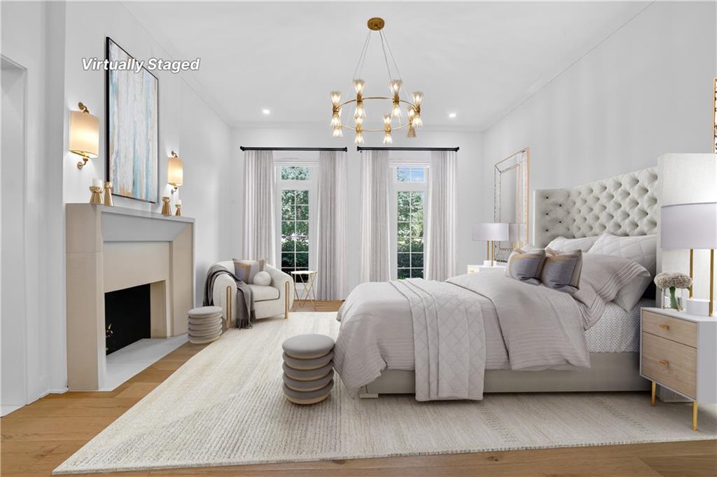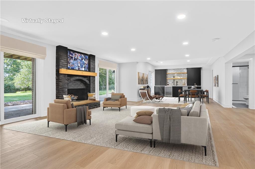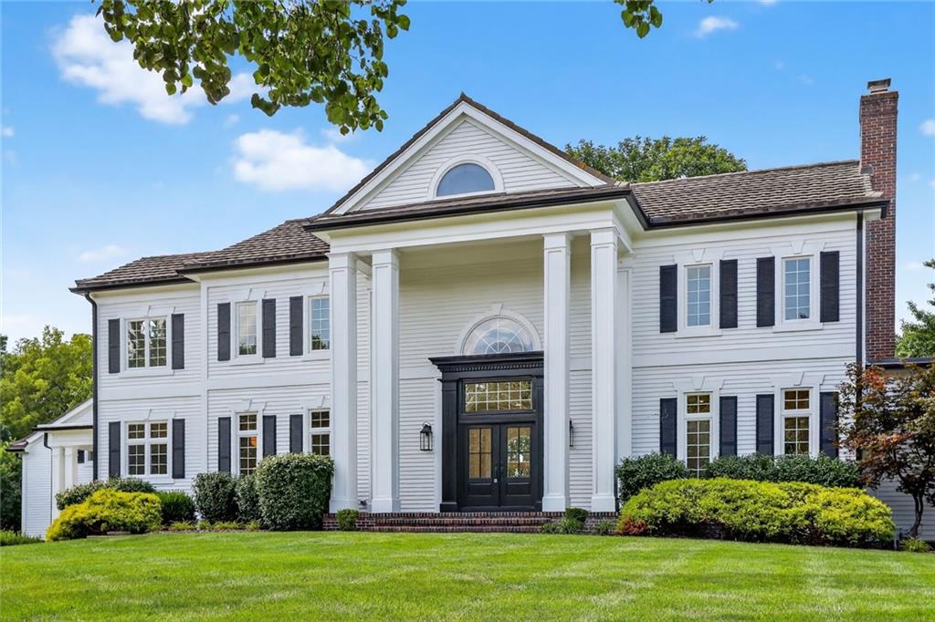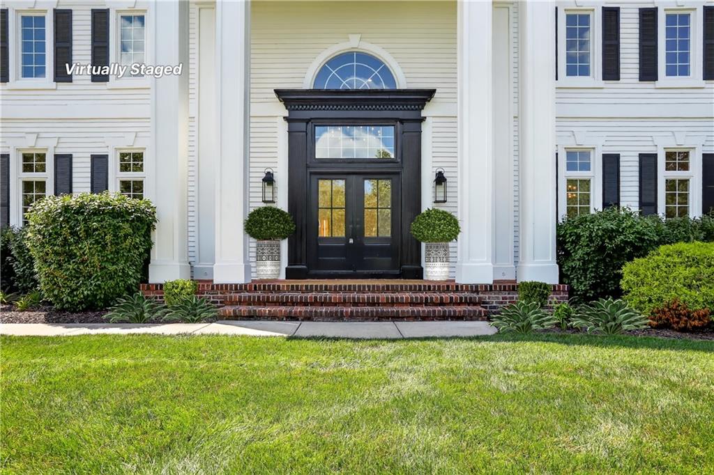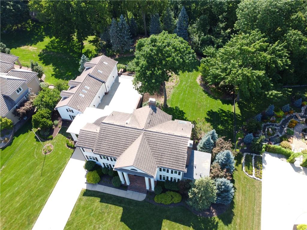 Commanding attention with its classic façade and lavishly updated interiors, this 1.5-story Colonial redefines modern elegance & is perfectly positioned on just under an acre of lush, tree-lined grounds. This beautifully updated home blends classic architectural charm with a fresh, open floor plan designed for today’s lifestyle. Step into a bright, inviting interior where the gourmet kitchen seamlessly connects to expansive living and dining spaces—ideal for both everyday living and grand entertaining. The main-level primary suite is a private retreat, featuring a warm fireplace, an oversized walk-in closet with custom built-ins, and a washer/dryer hookup for added convenience. Indulge in the spa-inspired bath with its soaker tub, large walk-in shower, and elegant finishes. Upstairs, you’ll find a second primary suite, three additional bedrooms, a loft area, and a second laundry space—perfect for busy households or guests. The walk-out lower level was built for entertainment, offering a spacious rec room with wet bar, a dedicated theater room, wine room, and abundant storage. Car lovers will appreciate the six garage spaces, while the charming carriage house above provides a complete living space with its own living room, kitchenette, bedroom, and full bath—ideal for in-laws or guests. Extensive updates include new paint, flooring, light fixtures, windows, HVAC, Trex deck, and more, making this home truly move-in ready. Located just minutes from Tiffany Greens Golf Club, the airport, shopping, and dining, this property offers both convenience and privacy. Don’t miss the chance to make this extraordinary home your own!